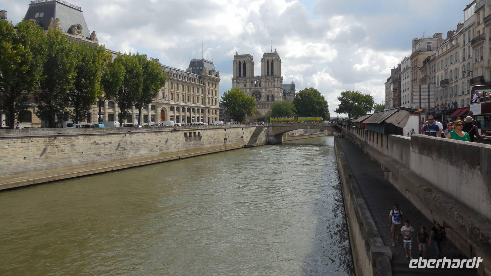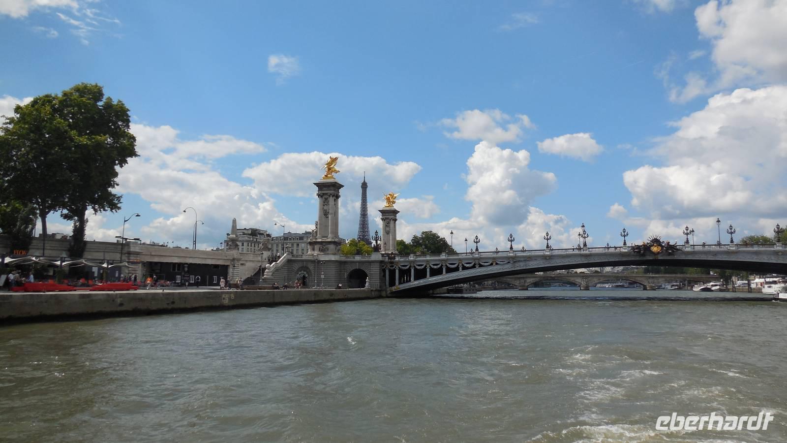 Fast alle Gäste nehmen am fakultativen Rundgang im Maraisviertel teil. Der Bus bringt uns zum Treffpunkt mit Anna an die Bastille. Gemeinsam entdecken wir das Marais-Viertel. Sie zeigt uns die Plätze und Paläste, das Centre Georges Pompidou und erzählt viel Interessantes in und über den alten Stadtbezirk. Vom Rathaus bringt uns Petra dann zu Notre Dame. Wir haben Zeit, die berühmte Kirche zu erkunden und eine Kleinigkeit zu essen. Unser Bus fährt uns dann zur Bootsanlegestelle an der Seine, unterhalb vom Eiffelturm. Es herrscht reges Gedränge, aber mit unserer Gruppenreservierung kommen wir doch recht schnell auf das Schiff und genießen Paris nochmals von einem anderen Blickwinkel. Wieder an Land erwartet uns Anna erneut, und gemeinsam starten wir zu einer zweiten Stadtrundfahrt in das moderne Hochhausviertel La Defense, Europas größte Bürostadt. Nahtlos mit Paris verbunden, aber doch außerhalb der Stadtgrenze gelegen, eine ganz andere aber beeindruckende Welt.