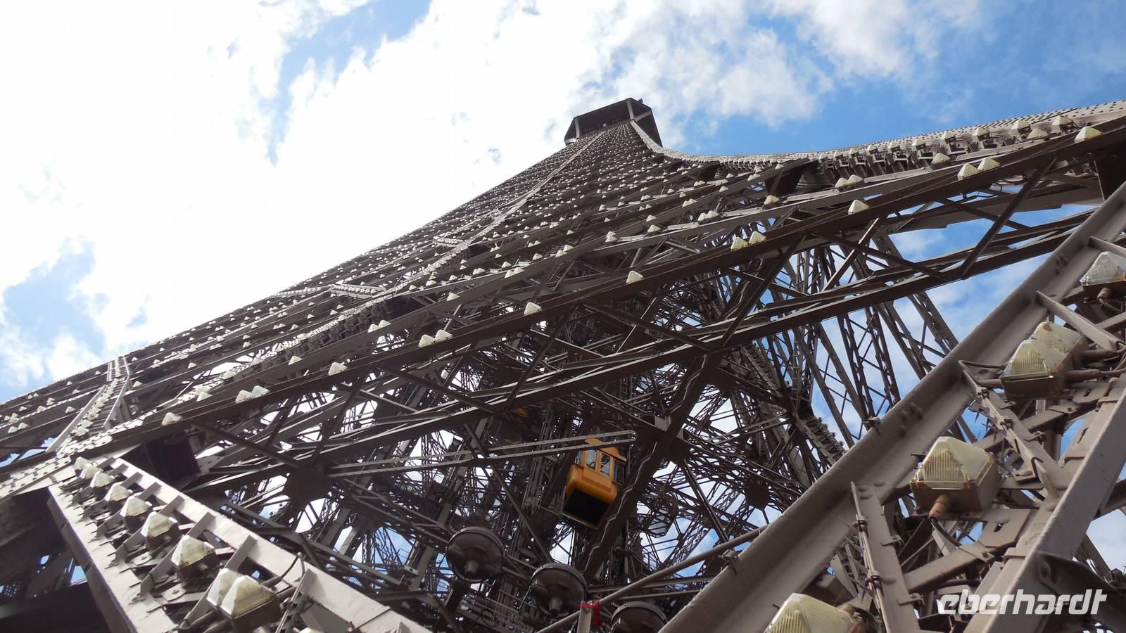 Wer möchte, bekommt im Bus noch Würstchen und Getränke, und dann fahren wir nach Paris zurück, denn wir haben Tickets für den Eiffelturm. Heute am Sonntag sind wir schnell vor Ort.
