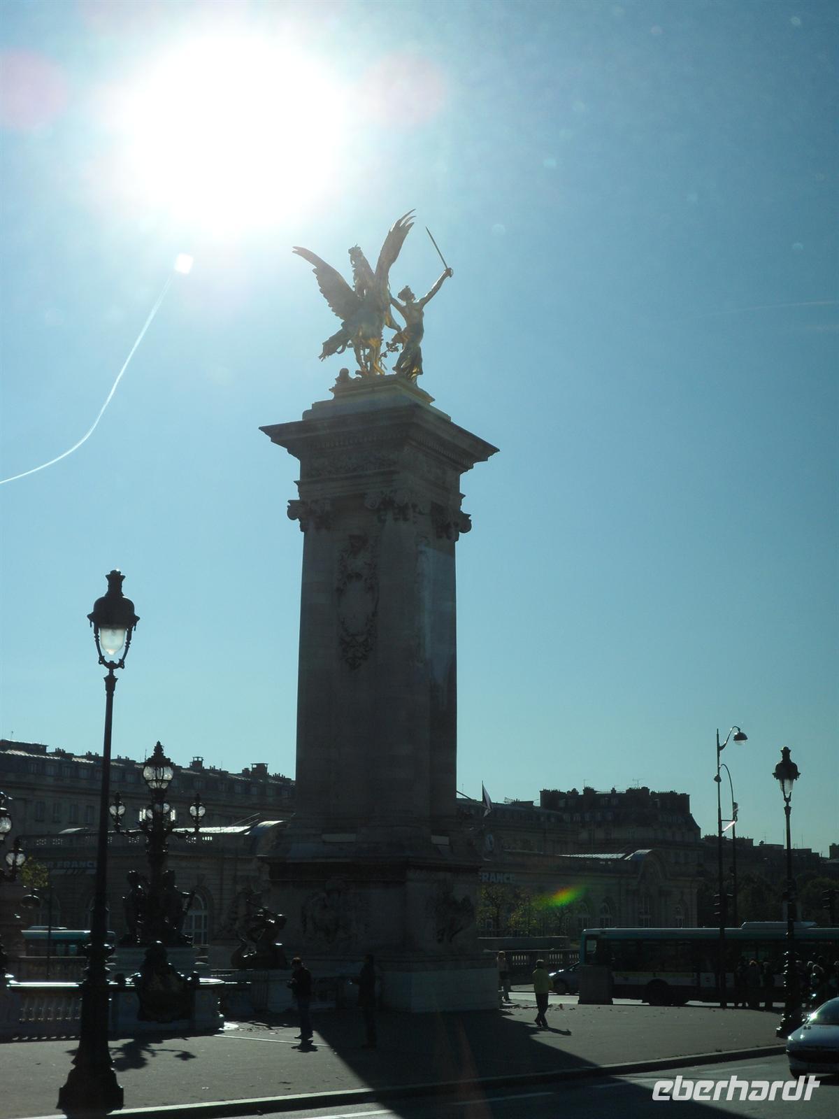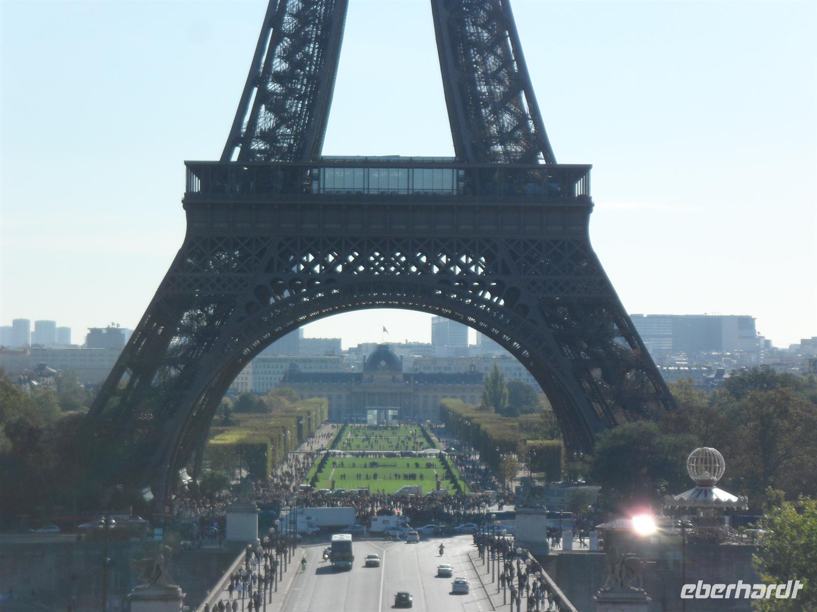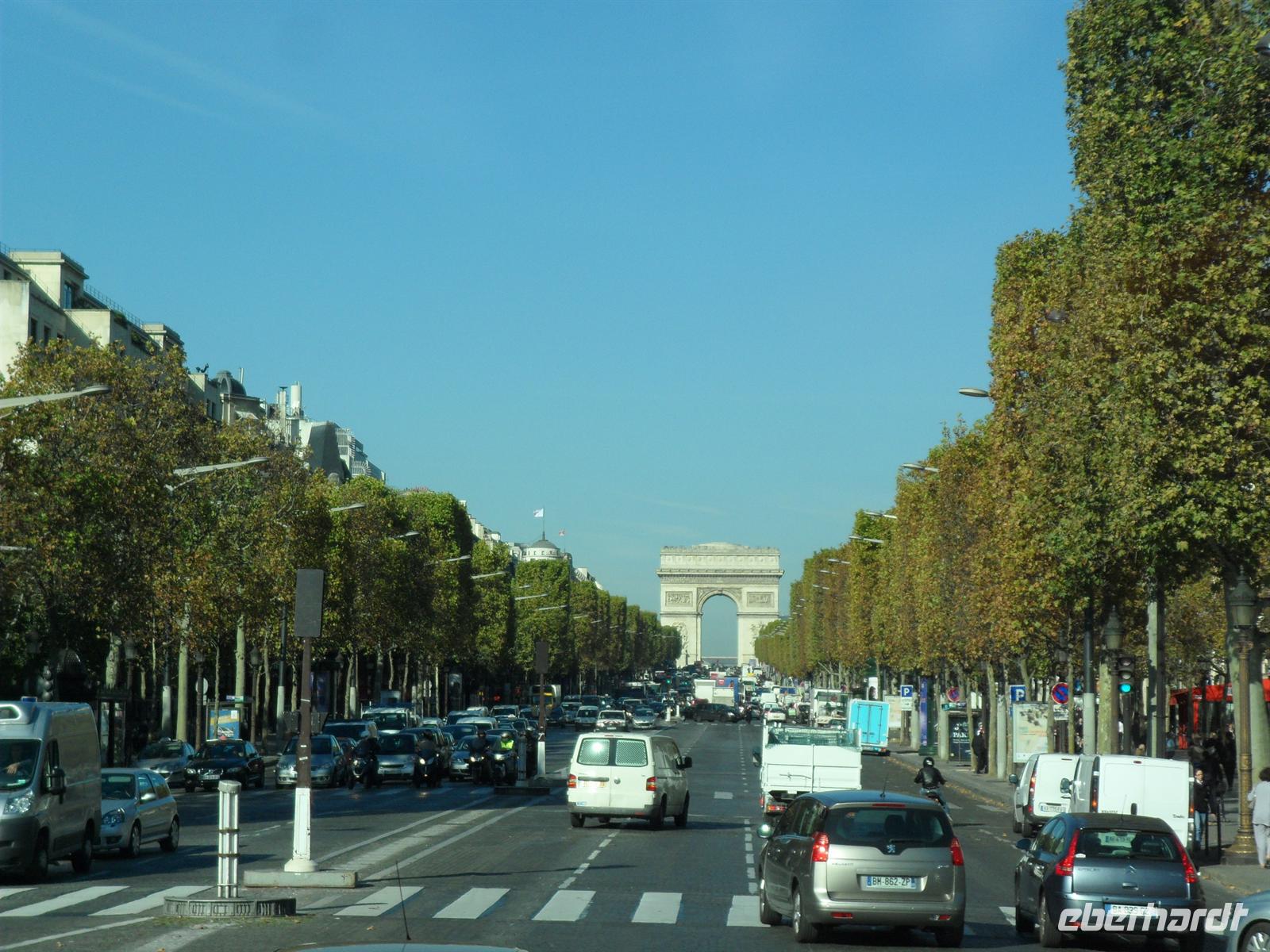 Gut gestärkt und ausgeschlafen begrüßten wir um 9 Uhr unseren örtlichen Reiseleiter Michael Schramm. Nun ging es auf zur ersten Stadtrundfahrt! Zunächst einmal erlebten wir den morgendlichen Verkehr im Montparnasse-Viertel, überquerten schließlich die Seine und erreichten so den Place de la Bastille. Nun ging es weiter am Marais-Viertel entlang, am Hôtel de Ville vorbei, über die Ile de la Cité und zum Panthéon, der Grablegungsstätte berühmter französischer Männer und Frauen. Von hier war es nun nur noch ein Katzensprung zum Jardin du Luxembourg, wo wir einen kleinen Spaziergang einlegten und andächtig den Erzählungen über Maria von Medici lauschten. Danach fuhren wir zurück zur Seine, überquerten diese ein weiteres Mal um endlich, endlich die berühmte Champs-Elysées entlang zu fahren. So kamen wir dann auch zum Triumphbogen. Nun erwartete uns noch das letzte Highlight ? der Eiffelturm! Vom Trocadero-Platz hatte man wirkliche einen tollen Blick zum ?rostigen Nagel?, wie die Einheimischen auch mal von der am meist fotografierten Sehenswürdigkeit sprechen.