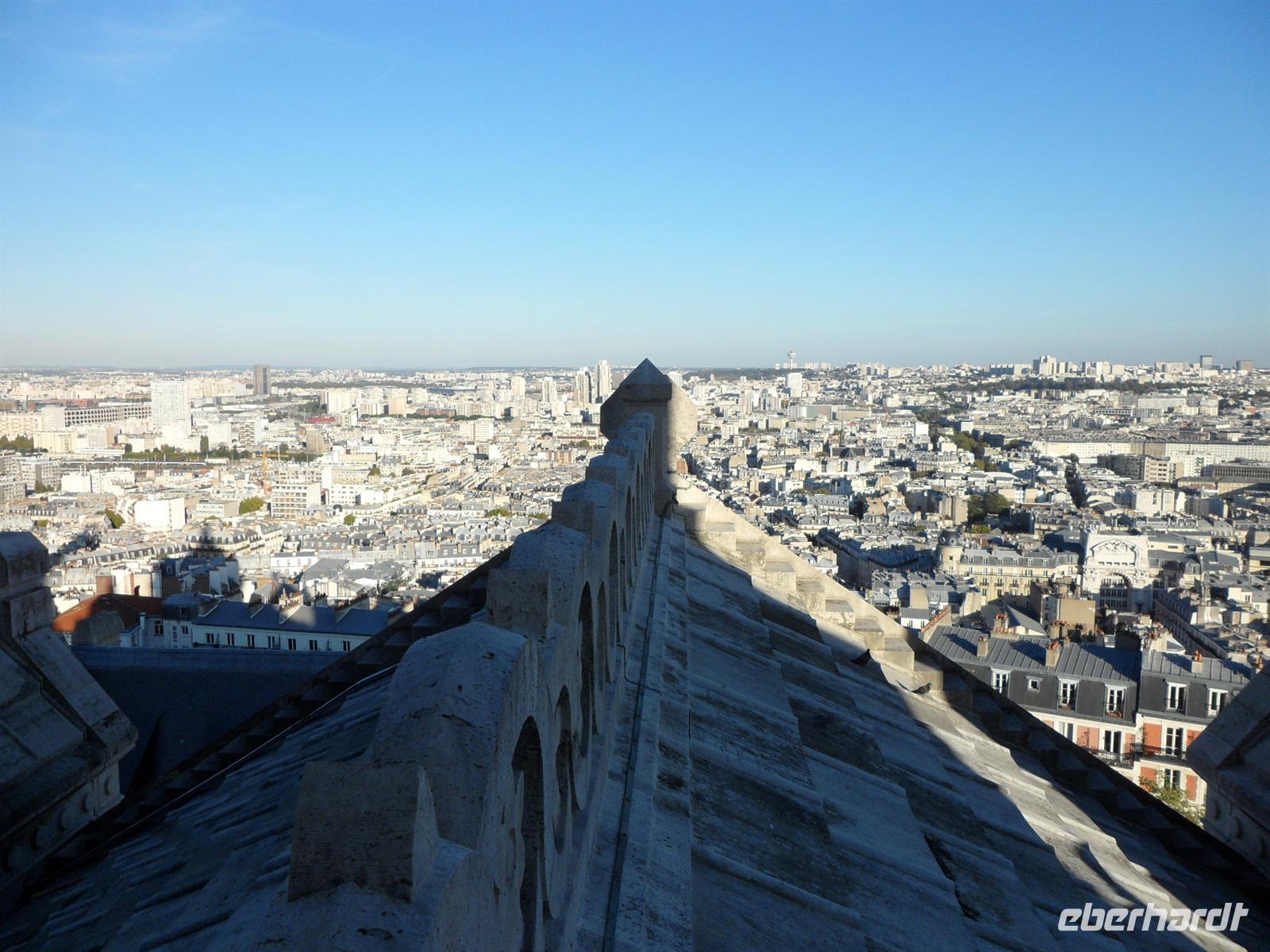 Nach einem ereignisreichen Vormittag trafen wir uns für eine gemeinsame Metrofahrt und visierten nun die Ile de la Cité für einen letzten Erkundungsrundgang mit unserem Michael an. Der beschrieb uns auch sogleich die Kathedrale Notre Dame mit all ihren Facetten. Natürlich war eine Innenbesichtigung ebenso mit von der Partie. Anschließend zeigte uns Michael noch ein paar weitere interessante Ecken und Plätze auf der Ile de la Cité und der Ile St. Louis, die ja als Ursprung der Stadt Paris gelten. Einst soll hier der keltische Stamm der Parisii gesiedelt haben. Irgendwann waren wir dann aber doch alle etwas fußlahm und so erwarteten wir mit Freuden unseren Bus, nachdem wir uns von unserem sehr kompetenten örtlichen Stadtführer verabschiedet hatten. Zum Abschluss des heutigen Tages fuhren wir nun zum 210 m hohen Turm Montparnasse, von dem wir nochmals einen gigantischen Blick über die Weltmetropole Paris hatten. Das Kalkweiß und die schwarzen Schieferdächer umrahmt von ein wenig Grün der verschiedenen Parkanlagen ergaben ein wirklich schönes Bild!