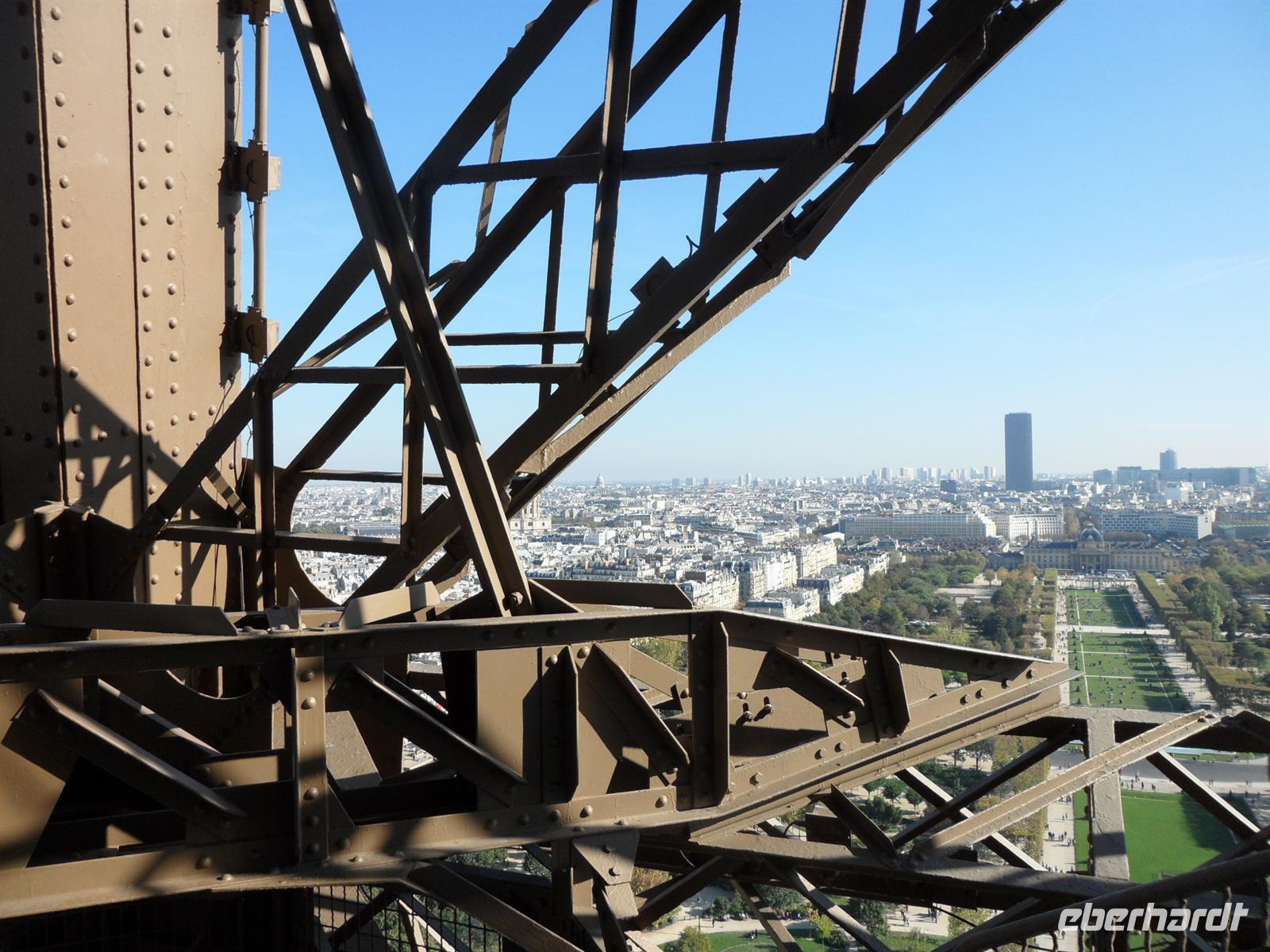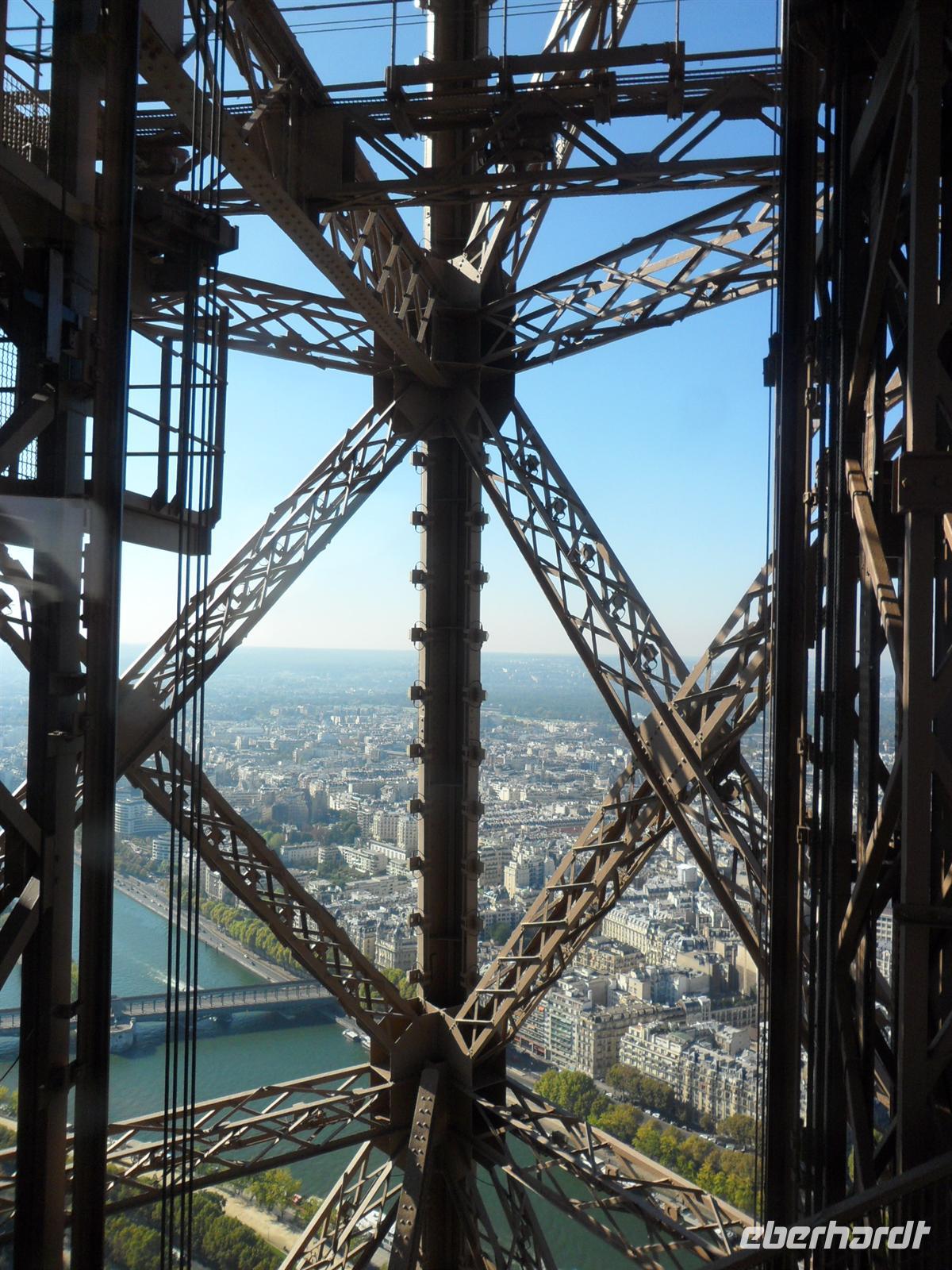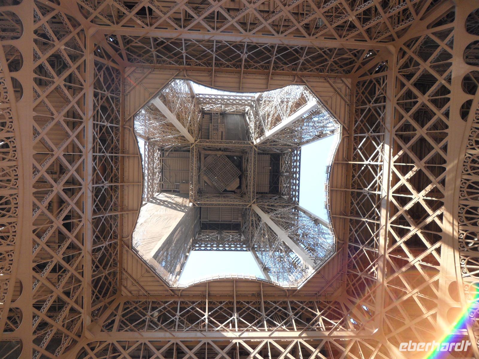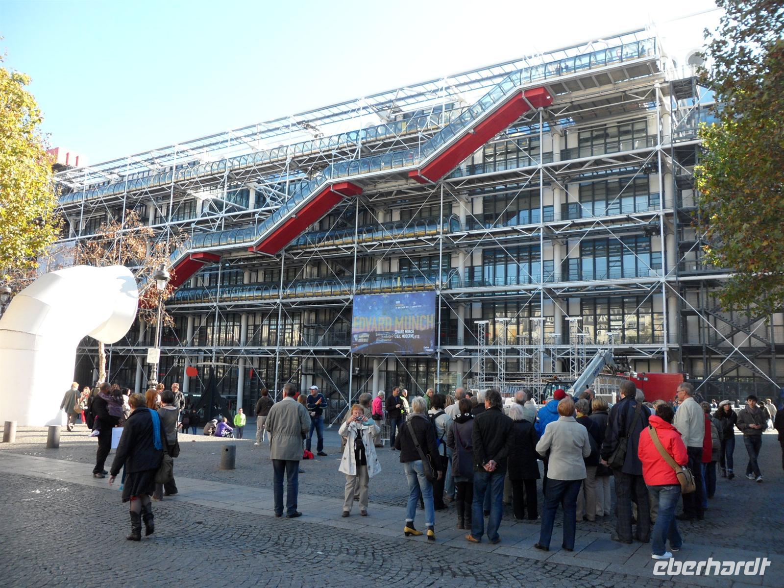 Centre Pompidou. Dieser moderne (Fabrik-)Bau, als Museum der modernen Kunst konzipiert, bot uns nun einen krassen Gegensatz zu den sonstigen Renaissance-Bauten, die wir zuvor gesehen hatten. Doch war auch das irgendwie interessant ? Da solch ein Rundgang bekanntlich hungrig und durstig macht, hatte nun ein jeder ein bißchen Freizeit. Auch die benachbarten einstigen Markthallen Les Halles galt es zu entdecken! Pünktlich um 13 Uhr visierten wir dann den Eiffelturm an. Hier hatten wir für 14 Uhr eine Auffahrt reserviert. Schnell waren wir auf der zweiten Etage des Turms. Nun mussten wir aber wie alle anderen Gäste ein wenig warten ? bei dem herrlichen Wetter war natürlich gehöriger Andrang,