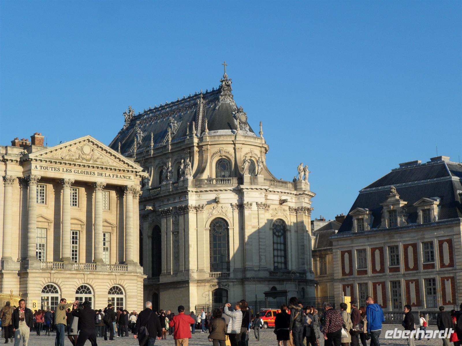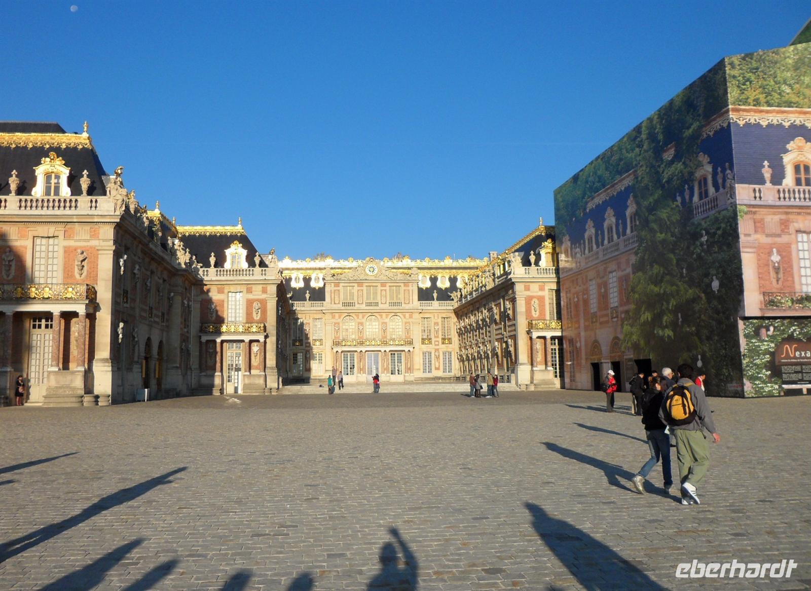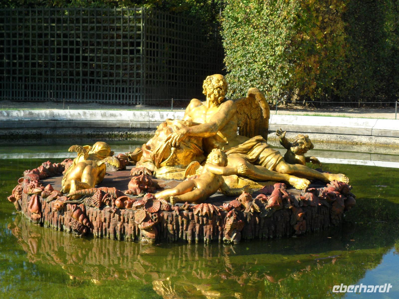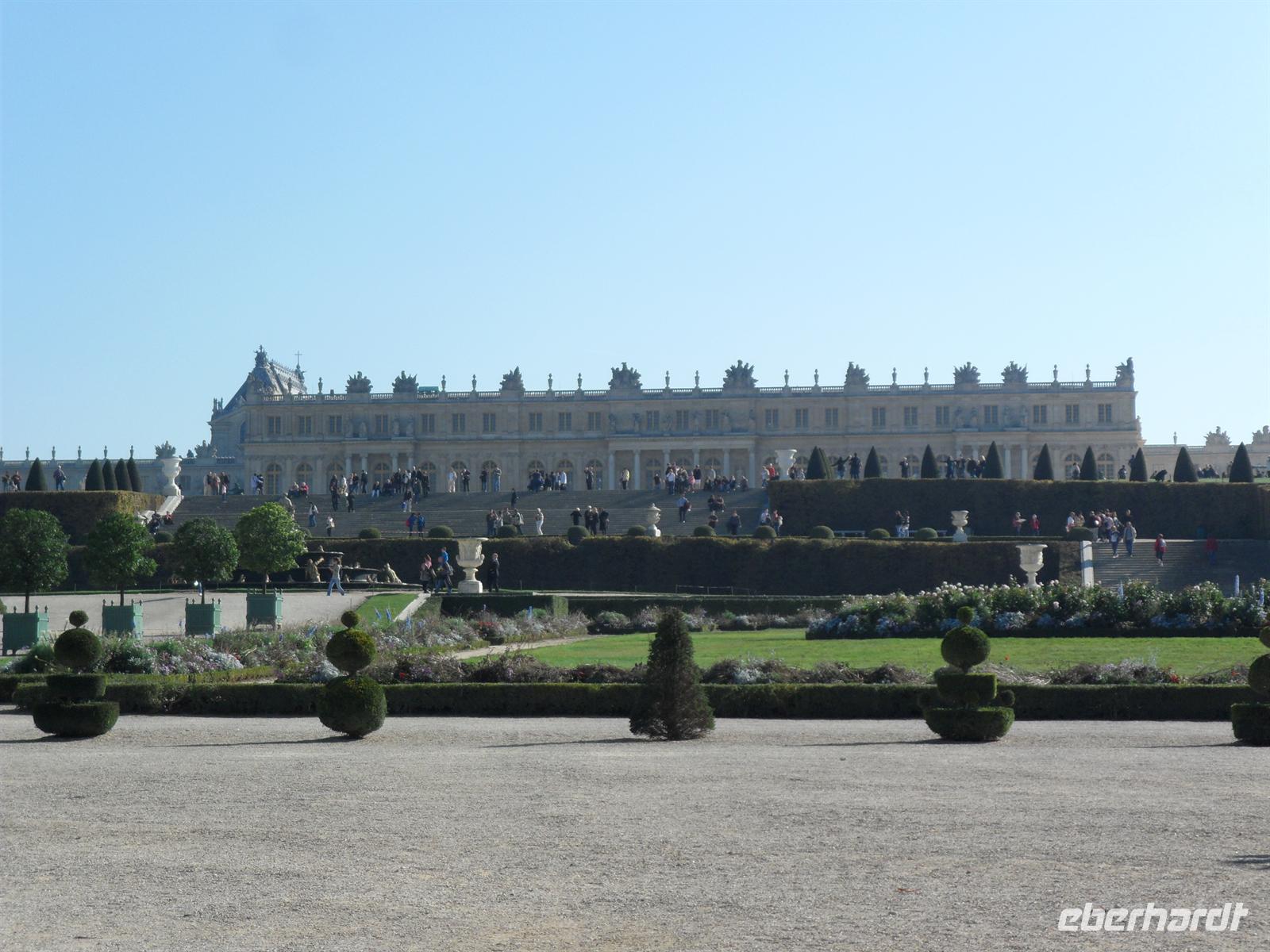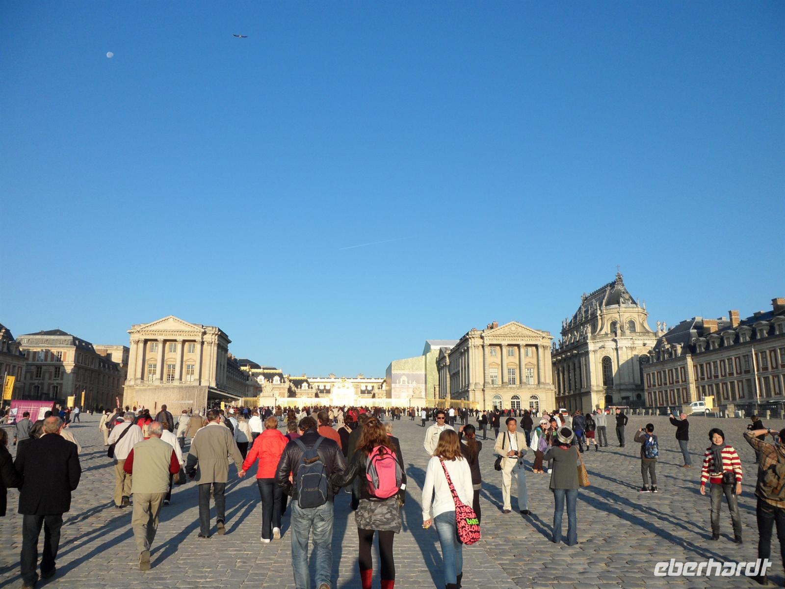 Am heutigen Sonntag starteten wir schon einmal ein wenig zeitiger, um möglichst zu den ersten Besuchern im Schloss von Versailles zu gehören. So war es dann tatsächlich auch! Ohne langes Warten standen wir dann sehr schnell in der Vorhalle des berühmten Schlosses von Versailles. Nun tauchten wir ein ins ausgehende 17. Jahrhundert ? Trotz vieler anderer Besucher bummelten wir durch die einzelnen Gänge und Säle und standen schließlich im sagenumwobenen Spiegelsaal, in dem ja 1871 der deutsche Kaiser das Kaiserreich proklamiert hatte und 1919 der Versailler Friedensvertrag unterzeichnet worden war ? beides Umstände, die die deutsch-französischen Beziehungen auf lange Sicht erkühlen hatten lassen! Um dem dichten Menschengedränge im Schloss zu entfliehen, trafen wir uns nach etwa einer anderthalben Stunde wieder und gingen in die weitläufigen Gärten (800 ha). Pünktlich zum Einsetzen der Wasserspiele flanierten wir über die verschiedenen Terrassen