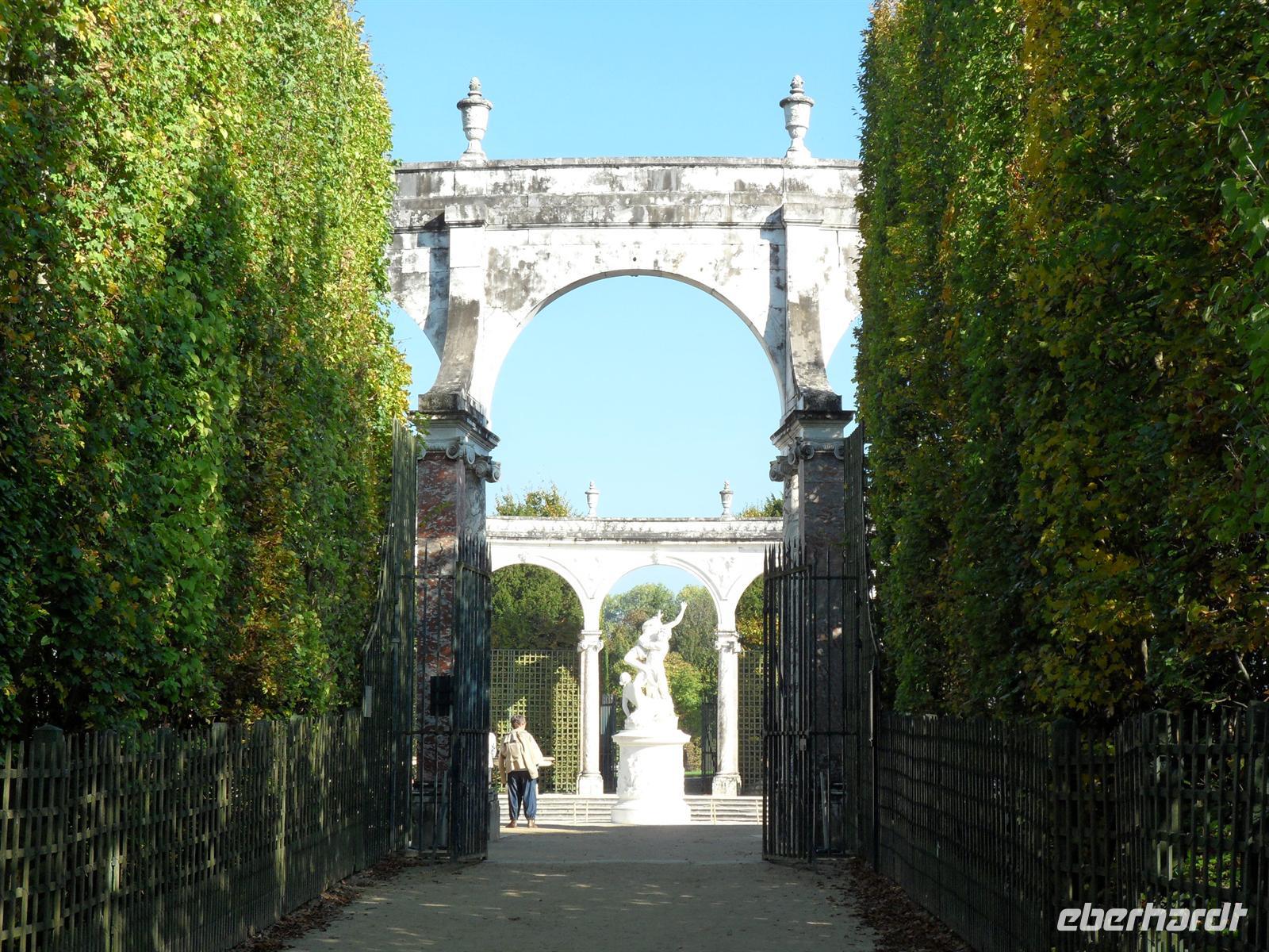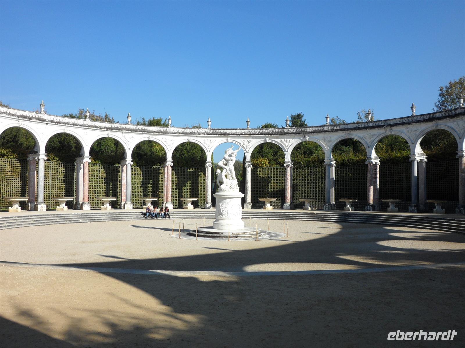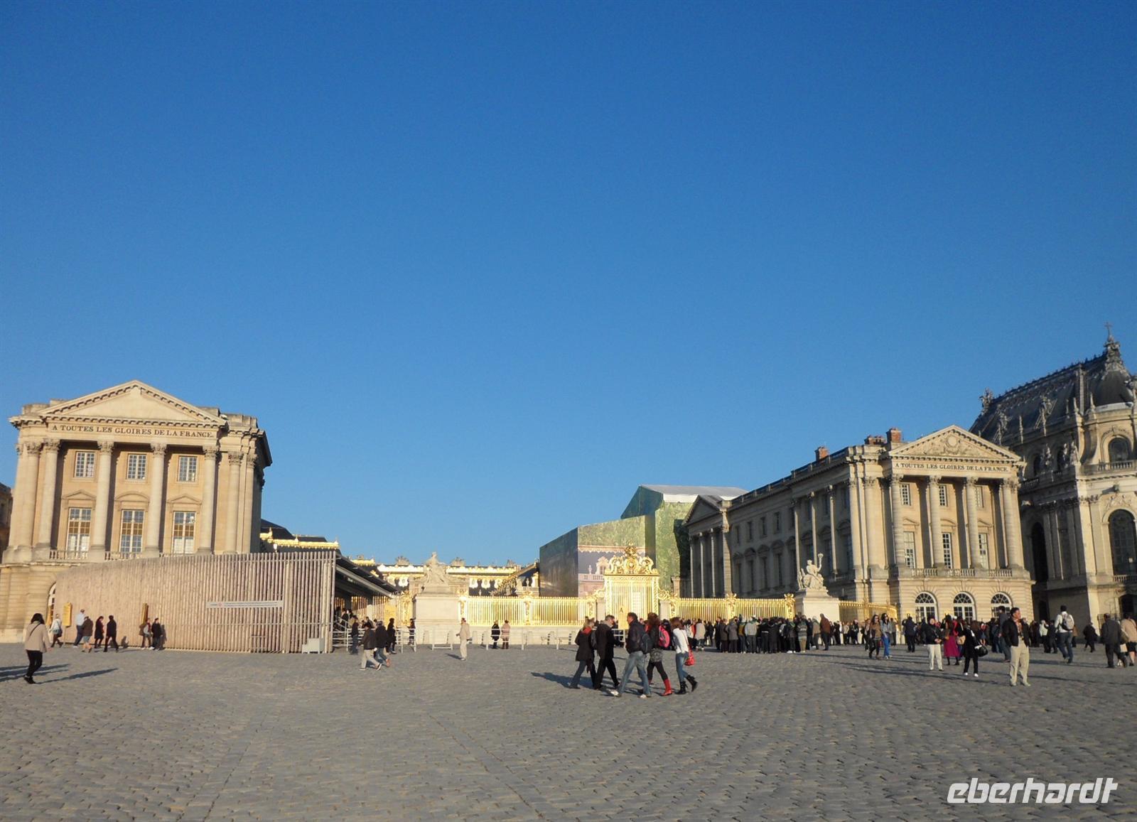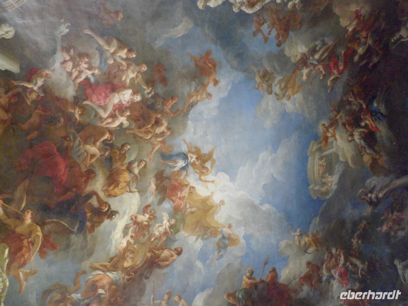 Am heutigen Sonntag starteten wir schon einmal ein wenig zeitiger, um möglichst zu den ersten Besuchern im Schloss von Versailles zu gehören. So war es dann tatsächlich auch! Ohne langes Warten standen wir dann sehr schnell in der Vorhalle des berühmten Schlosses von Versailles. Nun tauchten wir ein ins ausgehende 17. Jahrhundert ? Trotz vieler anderer Besucher bummelten wir durch die einzelnen Gänge und Säle und standen schließlich im sagenumwobenen Spiegelsaal, in dem ja 1871 der deutsche Kaiser das Kaiserreich proklamiert hatte und 1919 der Versailler Friedensvertrag unterzeichnet worden war ? beides Umstände, die die deutsch-französischen Beziehungen auf lange Sicht erkühlen hatten lassen! Um dem dichten Menschengedränge im Schloss zu entfliehen, trafen wir uns nach etwa einer anderthalben Stunde wieder und gingen in die weitläufigen Gärten (800 ha). Pünktlich zum Einsetzen der Wasserspiele flanierten wir über die verschiedenen Terrassen