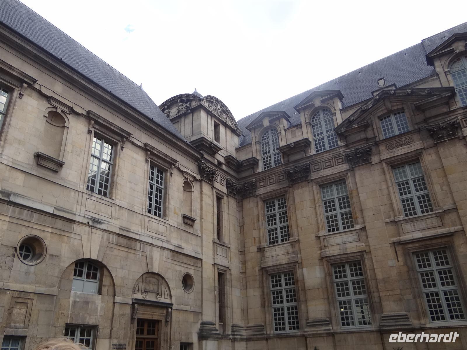 Der Flächennutzungsplan des 19. Jahrhunderts hat den Bezirk nicht so sehr verändert und obwohl manche schönen Gebäude eingerissen sind ist der damalige Flair erhalten geblieben. Heutzutage hat Le Marais ein bisschen von diesem Adlerbrief zurückgefunden. Wir laufen durch die engen Gassen, entlang des Archives nationales und des Musée Carnavalet bis zum Place des Vosges.