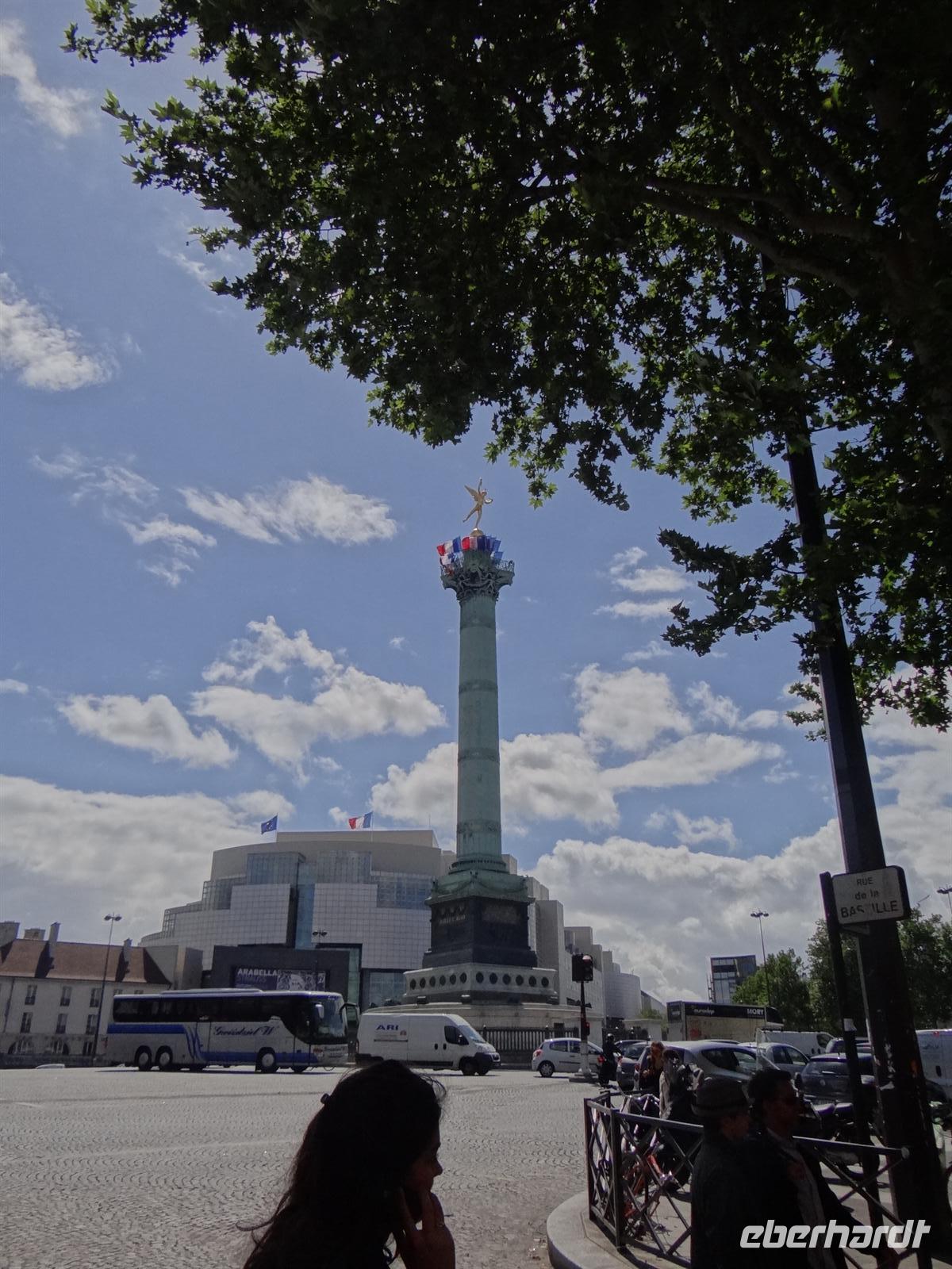 Von Place des Vosges erreichen wir Place de la Bastille, der ein Symbol der Revolution abbildet. Vor der Erstürmung der Bastille stand das Gefängnis stattdessen auf dem Platz. Wir treffen Frank dort und fahren gemeinsam zum Eiffelturm, wo wir unsere Mittagspause machen. Nach Besprechung mit den Gästen entscheiden wir uns nicht für lange Warteschlange als vielmehr für Le Louvre. Wir werden unser Glück am Sonntagvormittag nochmal versuchen.