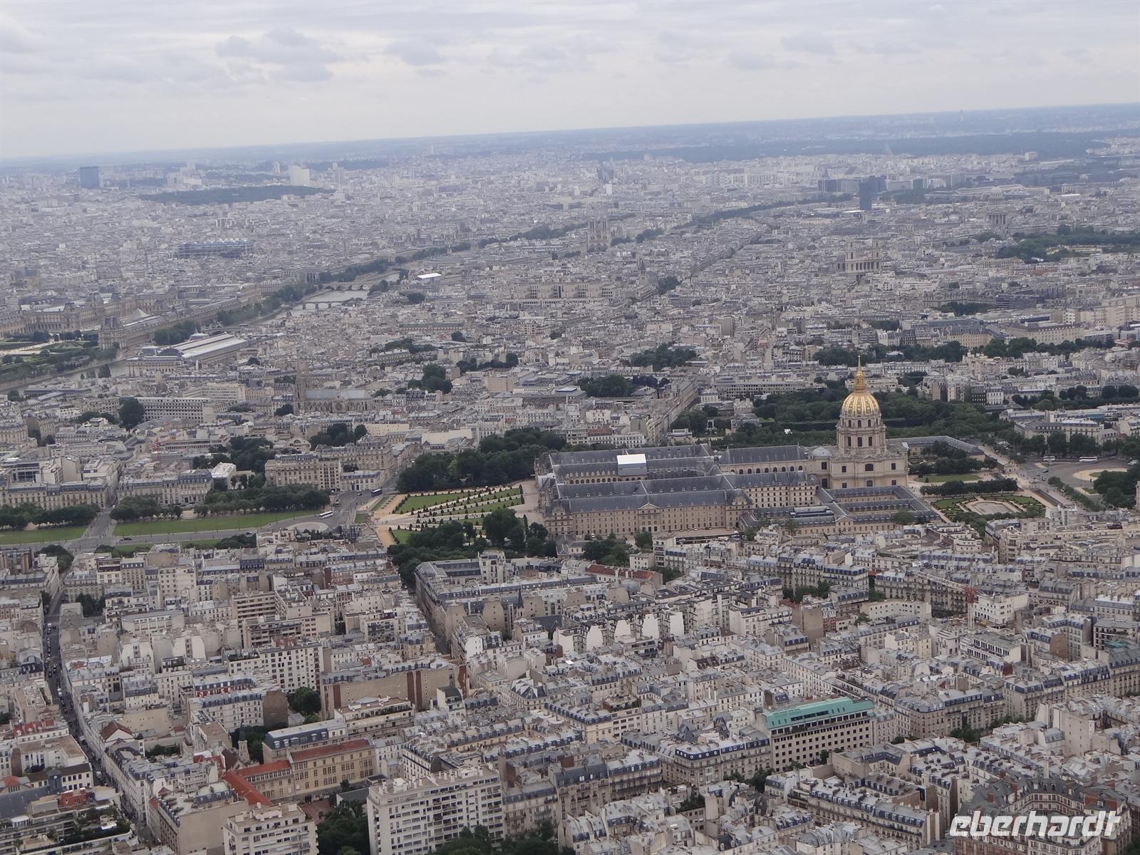Ganz oben, auf 276,1 Metern, befindet sich das Büro von Gustave Eiffel, welches originalgetreu restauriert wurde. Wir genießen ein fast wolkenfreien Himmel und man muss wirklich keine Höhenangst haben. Da die Konstruktion des Eiffelturms sehr luftig ist, kann man prinzipiell fast immer den Boden zwischen dem Metall einsehen.