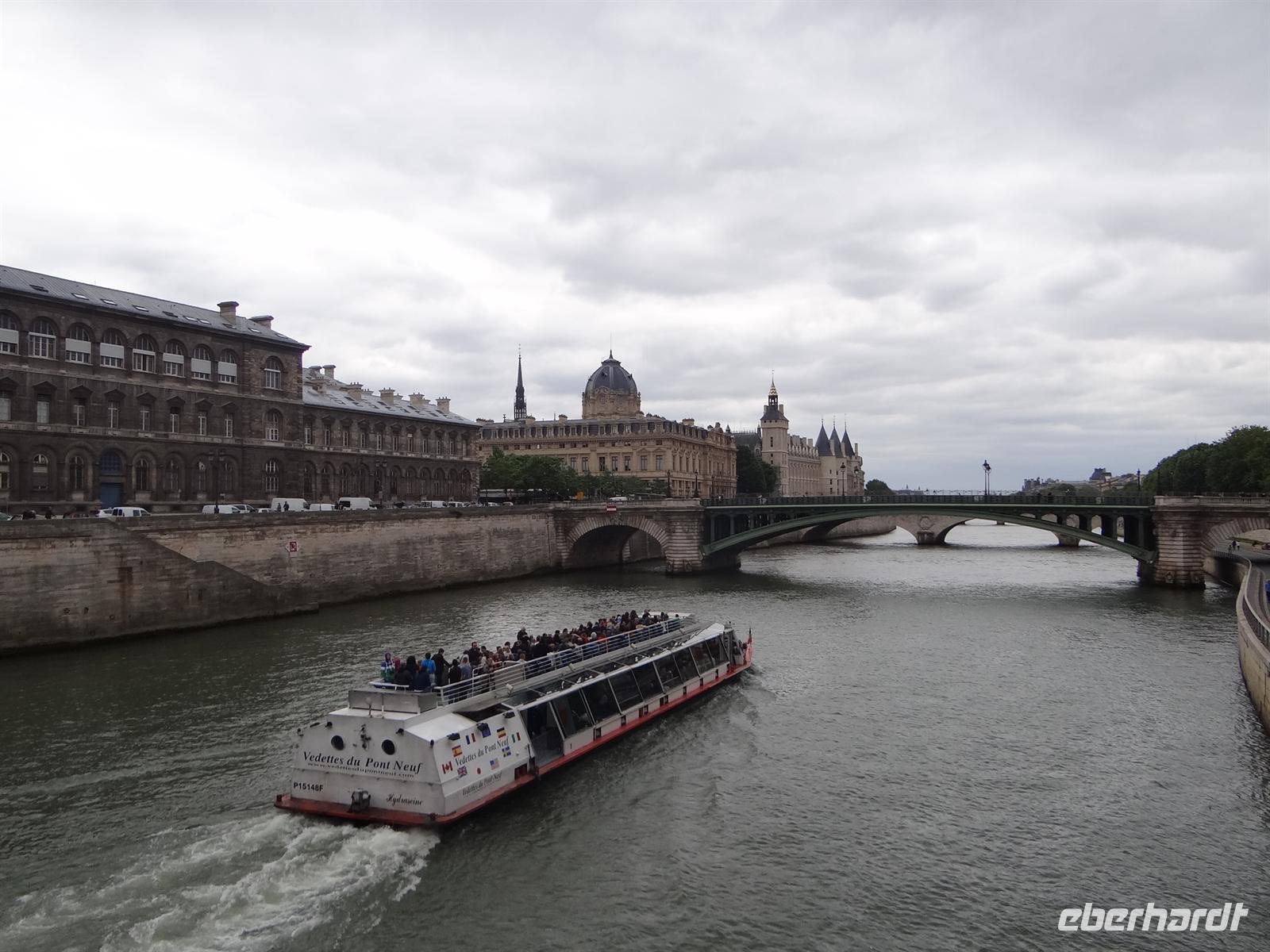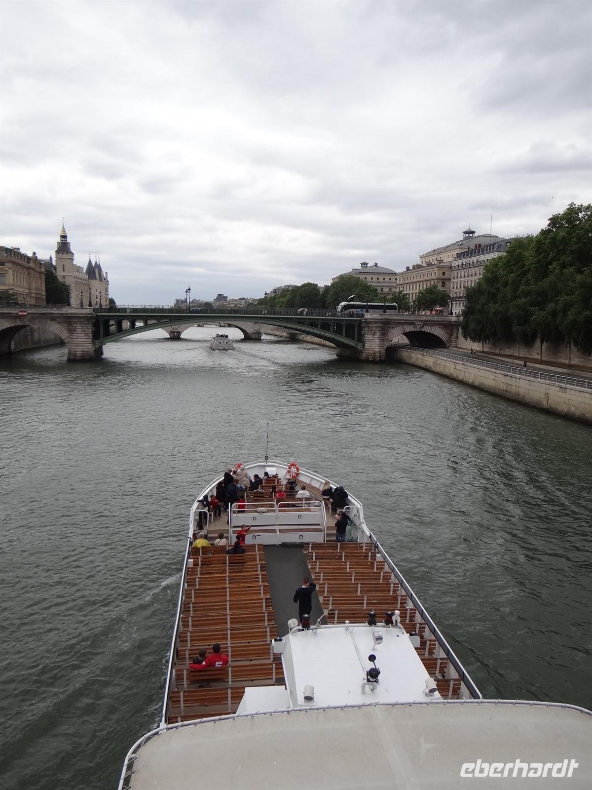 Danach steigen wir für eine angenehme Fahrt auf der Seine ins Boot, um Paris vom Fluss zu sehen. Francois wartet auf uns am Bootssteg für eine Lichterfahrt (im Juni ist es um 21:00 Uhr nicht total dunkel) durch das luxuriöse Viertel von Paris, wo die Geschäfte sich nicht mehr trauen, die Preise der Kleidung zu zeigen.