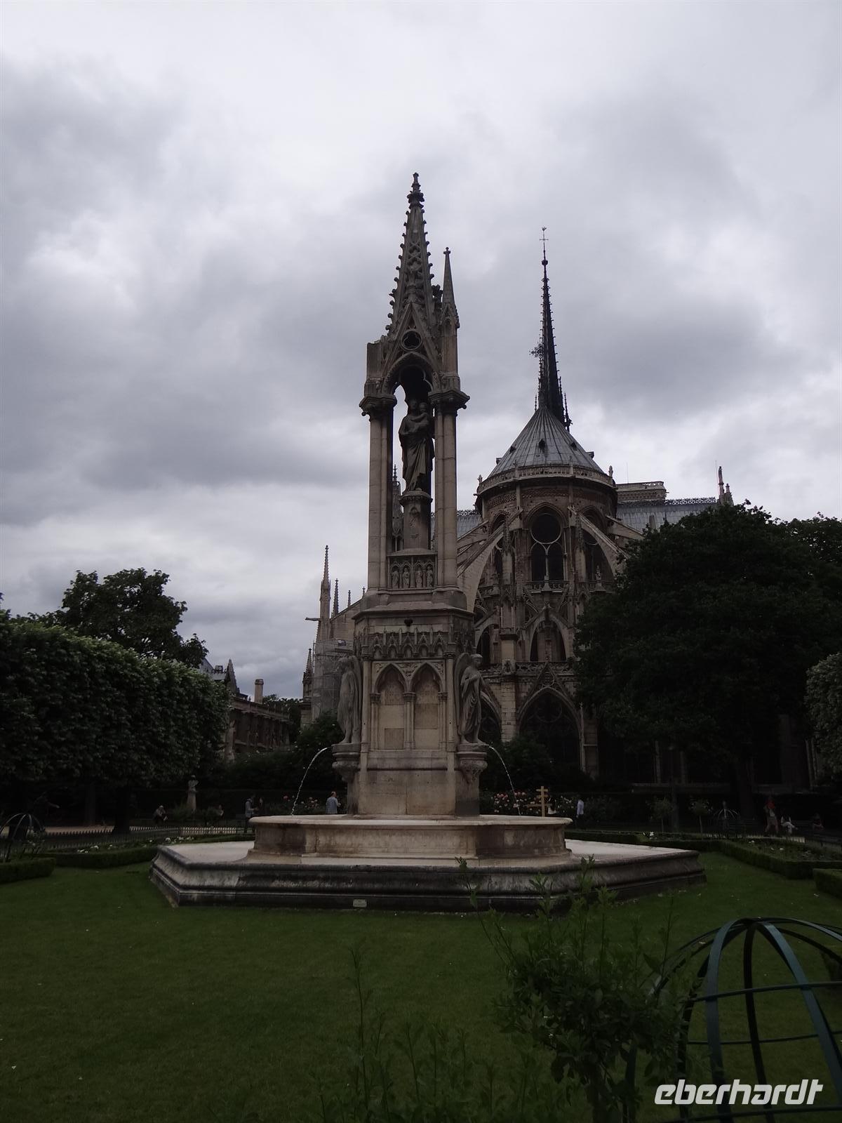 Nach dem Eiffelturm treffen wir uns wieder mit Francois und Michael am Hotel de Ville für einen gemütlichen Rundgang auf der Ile de la Cité. Diese Insel ist dier älteste Teil von Paris und besitzt neun Brücken für eine Fläche von 225 m². Auf der Ile de la Cité findet man verschiedene berühmte Gebäude. Unter anderem: den Justizpalast, die Conciergerie und natürlich die Kathedrale Notre-Dame de Paris... Die Kathedrale wurde zwischen den Jahren 1163 und 1345 erbaut und steht als ein super Beispiel des Barocks. Vor dem Hauptgang der Kahedrale kann man den Fondamentpunkt von Frankreich finden.