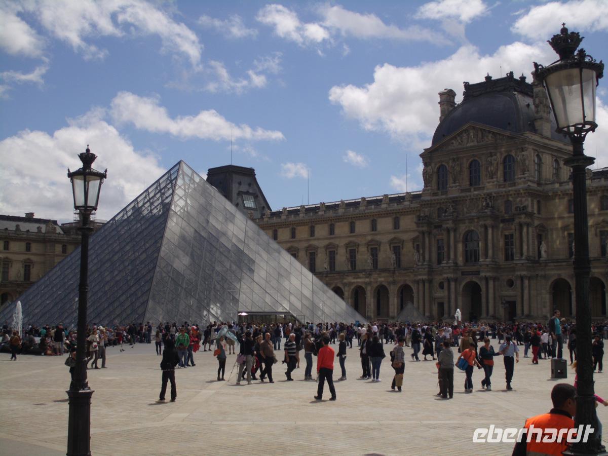 Zeitig muss aufgestanden werden, denn wir haben eine lange Reise von ca. 1100 km ab Dresden vor uns. 6 Uhr morgens reisen wir vom Dresdener Flughafen in Richtung Westen ab. Auf der Reise sind die unterschiedlichsten Landschaften und Gebäude zu sehen, sodass, gepaart mit ausreichend Pausen die Anreise doch erträglich ist und wir gegen acht Uhr abends auf die Stadt mitten in der Ile de France zusteuern. Nun öffnet der Himmel seine Schleusen und ich denke: Das kann ja heiter werden. Doch am Hotel angekommen hat sich der Regen verzogen und wir beziehen unsere recht geräumigen Zimmer. Das Hotel liegt zentral, d. h. noch innerhalb der Peripherique, der Stadtautobahn, die das eigentliche Paris mit 2,2 Millionen Menschen umschließt, alles was außerhalb liegt ist verwaltungstechnisch nicht mehr Paris, sondern die Banlieu; die selbstständigen Vororte außerhalb der eigentlichen Stadt. Mit ihnen wächst die Bewohnerzahl des Ballungsraums auf 13 Millionen Menschen. Es ist der erste Mai und dementsprechend wenig Verkehr. Heute sind alle Franzosen draußen, um die Glück bringenden Maiglöckchen zu pflücken. Der einzige Tag im Jahr, wo viele Franzosen überhaupt einen Wald betreten, weil sie diese Blumen selber pflücken wollen. Nachdem alle Gäste zufrieden sind lasse auch ich mich auf mein Bett fallen und denke: Nun bist Du also wieder da. Paris, Du hast mich wieder. Gegen Null Uhr schlafe ich ein.