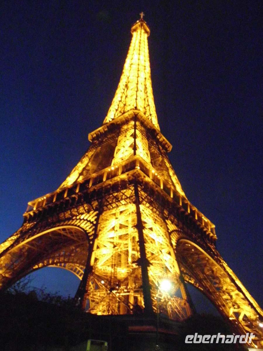 Hiernach begeben wir uns gleich zur Lichterfahrt, die wegen der noch recht hellen Witterung eine zweite Stadftrundfahrt ist. Gelegenheit, sich Dinge anzuschauen, die bisher noch nicht gesehen wurden. So machen u. a. einen Stop am Invalidendom in dem Napoleon Bonapparte liegt, bzw. das, was heute noch von ihm übrig ist. Er brauchte ja wie immer eine Extrawurst und liegt nicht, wie alle anderen französischen Könige in der Kathedrale von St. Denis begraben. Klasse, wie die goldene Kuppel in der Abendsonne strahlt. Unterwegs ist auch noch die Gelegenheit eine kleine Stärkung zu sich zu nehmen, sodass wir uns gegen 22.00 Uhr auf den Weg zum Eiffelturm machen. Das berühmteste Wahrzeichen der Stadt wartet auf uns. Zumindest dringen wir bis zum Fahrstuhl vor. Dann kommt eine Hundertschaft Polizei und räumt das Gebäude, den Platz und das Marsfeld komplett. Ich erfahre, dass es Sicherheitsvorkehrungen für morgige Demonstrationen von rechten und linken Gruppen sind, und es vorher Drohanrufe bei der Polizei gegeben hat. Da kann man nichts machen und unsere Karten verfallen. Mal schauen, wie ich das wieder hinbekomme. Dafür fahren wir nun alle mit der Metro zuück. Das beste Verkehrsmittel in Paris überhaupt. Nach zwei mal Umsteigen sind alle Profis und haben das recht einfache Sysrtem durchschaut. Gegen 1.00 Uhr sind wir wieder am Hotel.