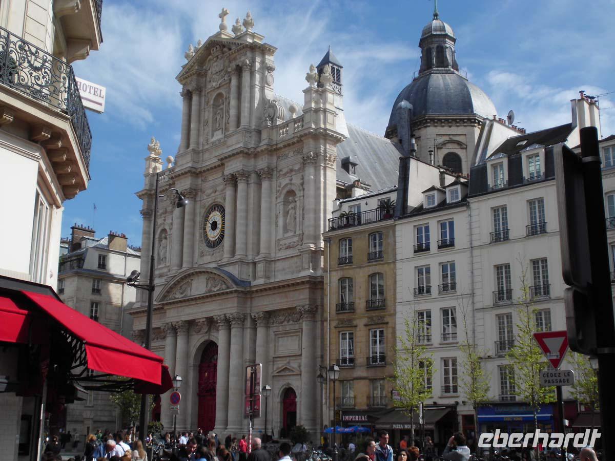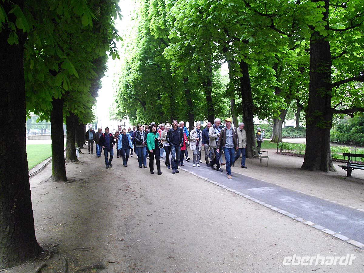 Den Vormittag nutzen wir freizeitlich zu einem Besuch der Oper und der Galerie La Fayette. Fast die Hälfte der Gruppe ko0mmt in der freien Zeit mit mir. Wir teilen uns und alle, die mit mir in die Opera Garnier gehen sind überwältigt von der Pracht des Historismus, die hier entfaltet wird. Das steht Versailles in nichts nach. Ist nur eben nicht so groß und etwas jünger. Ich habe sogar noch etwas Zeit in die Parfümerie Fragonard gleich neben der Metrostation zu gehen, wo ich mir immer mein Eau de Toilette besorge. Nachmittags begeben wir uns nach dem Frühstück in eines der ursprünglichsten Gegenden der Stadt, das Maraisviertel. Marais heißt Matsch/Sumpf und zeigt, dass es sich um ein ehemals morastiges Gebiet handelte, das im 16. Jh. trocken gelegt wurde. Am Rande der sich ausdehnenden Stadt siedelten sich viele Stadtadlige in wunderschönen Palästen an. Von den ehemals über 200 sind noch 32 erhalten. U. a. das Hotel de Sully, wo wir unseren Rundgang beginnen. Dieser führt uns auch über den Platz des Vosges, der mit seinem geschlossenen frühbarocken Ensemble eine der schönsten Plätze der Stadt ist. Unter den Bäumen durch die Blätter spielen Licht und Schatten wie auf den Gemälden von Renoir oder Monet. Ach, ich liebe das. Den Abschluß bildet ein Besuch des Stedtl, das jüdische Viertel, welches sich auch hier befindet. Es duftet verlockend lecker nach Falaffel. Wenn nur die Schlangen an den Imbisständen nicht so lang wären. Ein Highligth steh am Abend auf dem Programm. Wir besuchen das Cabarret Paradis Latin mit seiner über 100jährigen Geschichte. Es befindet sich im Quartier Latin, dem ehemaligen Standort der römischen Stadt Lutetia ab 52. v. Chr. Eine Mischung aus Frivolität, Erotik und Akrobatik wird geboten, nachdem wir es uns bei Kalbsragout in Blätterteig haben gut gehen lassen. Wein Champagner und Wasser stehen ausreichend während der gesamten fast 2-stündigen Show bereit. Pünktlich ist der Bus mit einer französischen Fahrerin vor dem Theater zur Stelle und wir sind gegen 1 Uhr wieder am Hotel.
