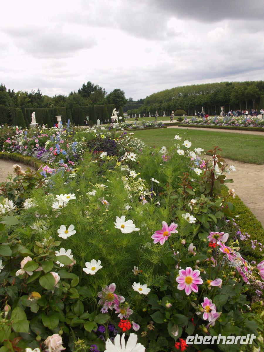 Heute begeben wir uns zu einem der größten Schlösser der Welt. Barock der Superlative und Vorbild für viele Schlösser Europas. Allein die Gartenfassade von Versailles ist über 550 m lang. Darin befindet sich auch der berühmte Spiegelsaal, in dem Weltgeschichte geschrieben worden ist. Zwar ist wie immer viel Gedränge, doch in der Rekordzeit von einer halben Stunde sind alle im Schloß und überwältigt von der Pracht und Ausstattung von Sonnenkönigs Willen. Die gesamte Anlage spieglt die absolutistische Staatsform Ludwig IV wieder, dessen Schlafzimmer und Bett mitten im Zentrum des Schlosses angesiedelt sind. Das gilt auch für die unermesslich großen Gärten, in denen wir uns nach dem Rundgang durch das Schloss verteilen.