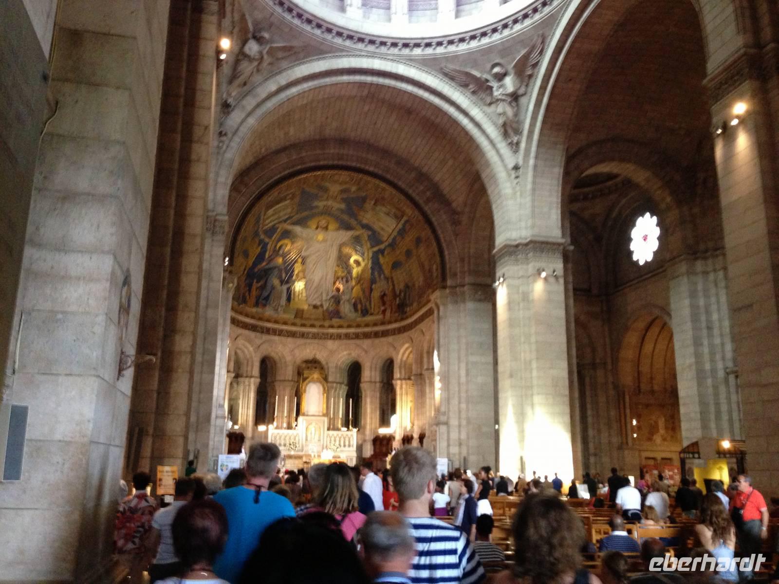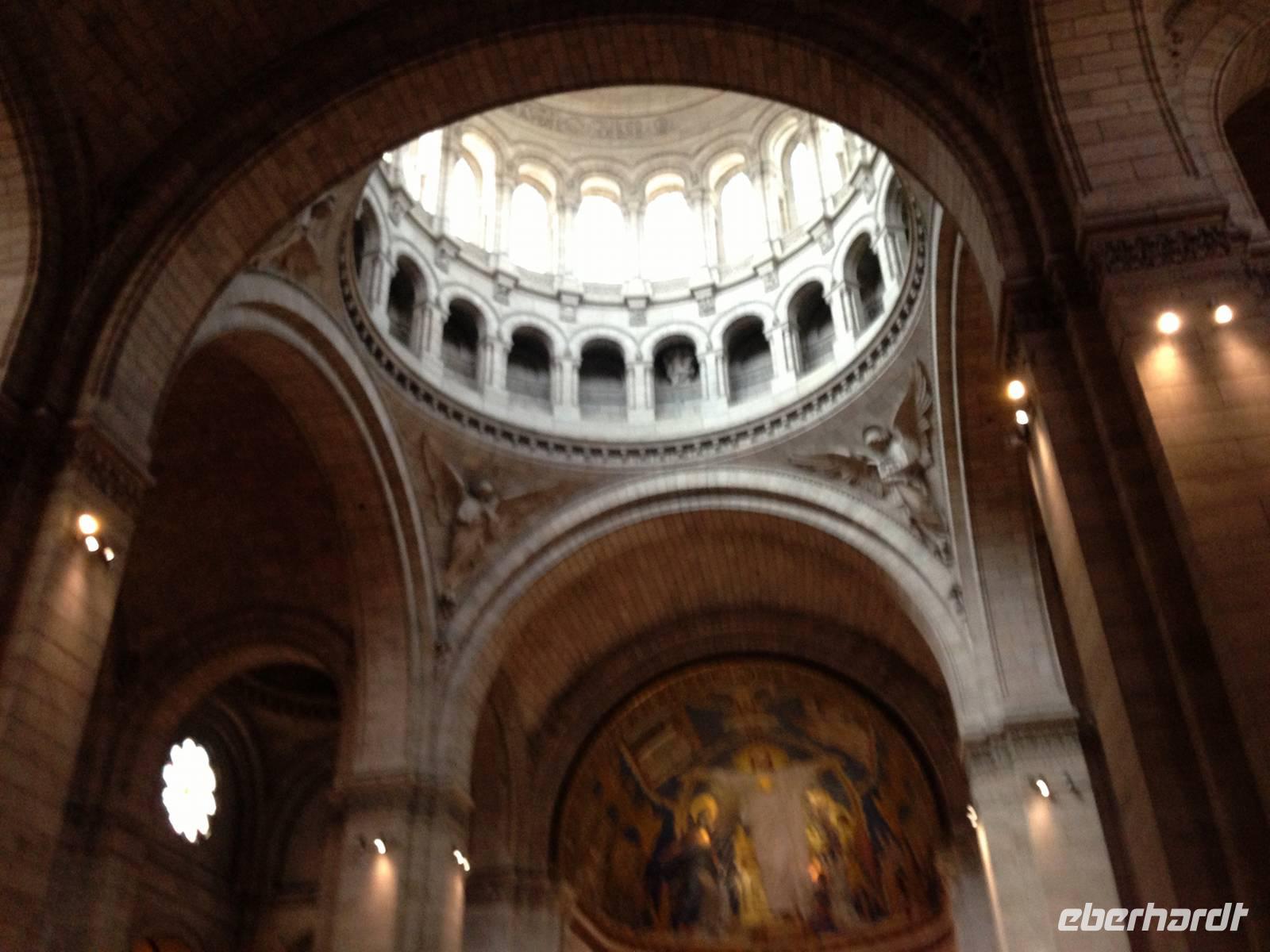 Die Mittagspause verbringen wir am Eiffelturm, in den Straßen nordöstlich des Marsfeldes, wo es mehrere Cafés und kleine Restaurants gibt. Anschließend bringt uns Tilo mit seinem „Forchheimer" an den Fuß des Montmartre, wo wir zusammen mit der örtlichen Reiseleiterin die Straßen des ehemaligen Künstlerviertels erkunden. Den Abschluss bildet ein Besuch in der hoch oben auf dem Berg thronenden Sacré Coeur, welche mit ihren neobyzantinischen Kuppeln und Türmchen an eine Moschee erinnert.