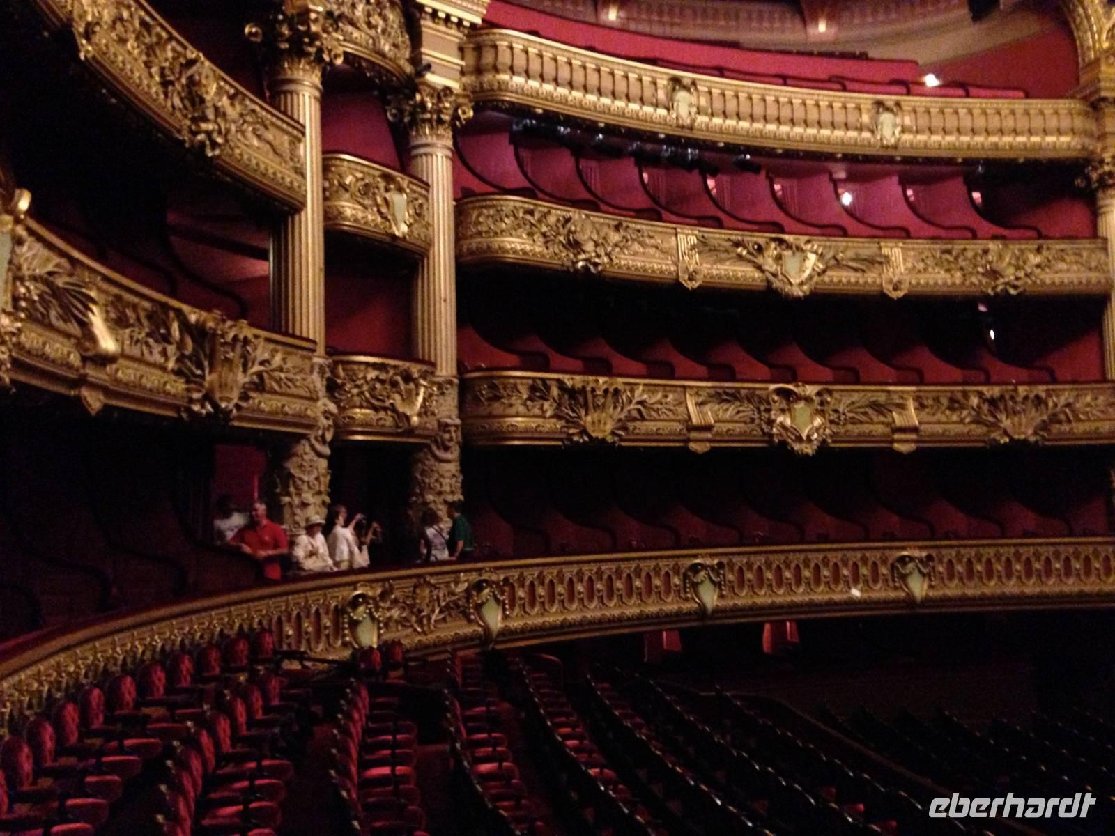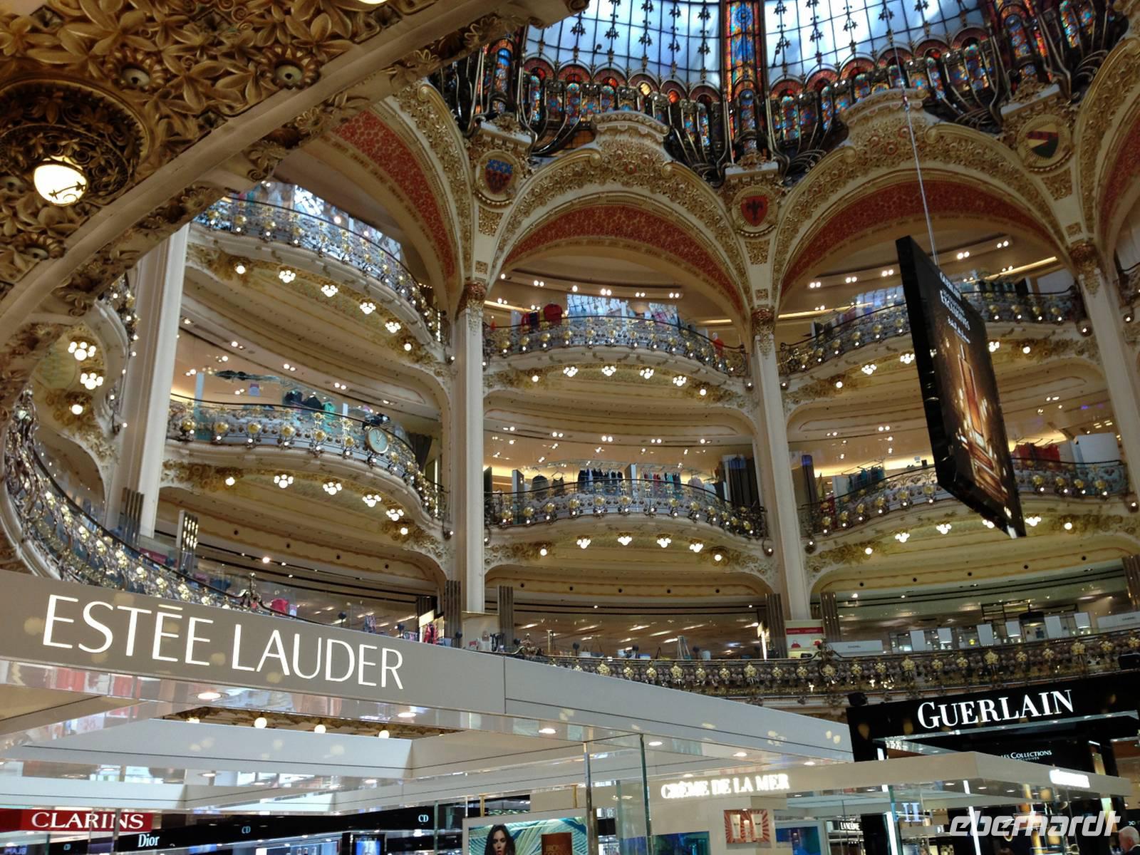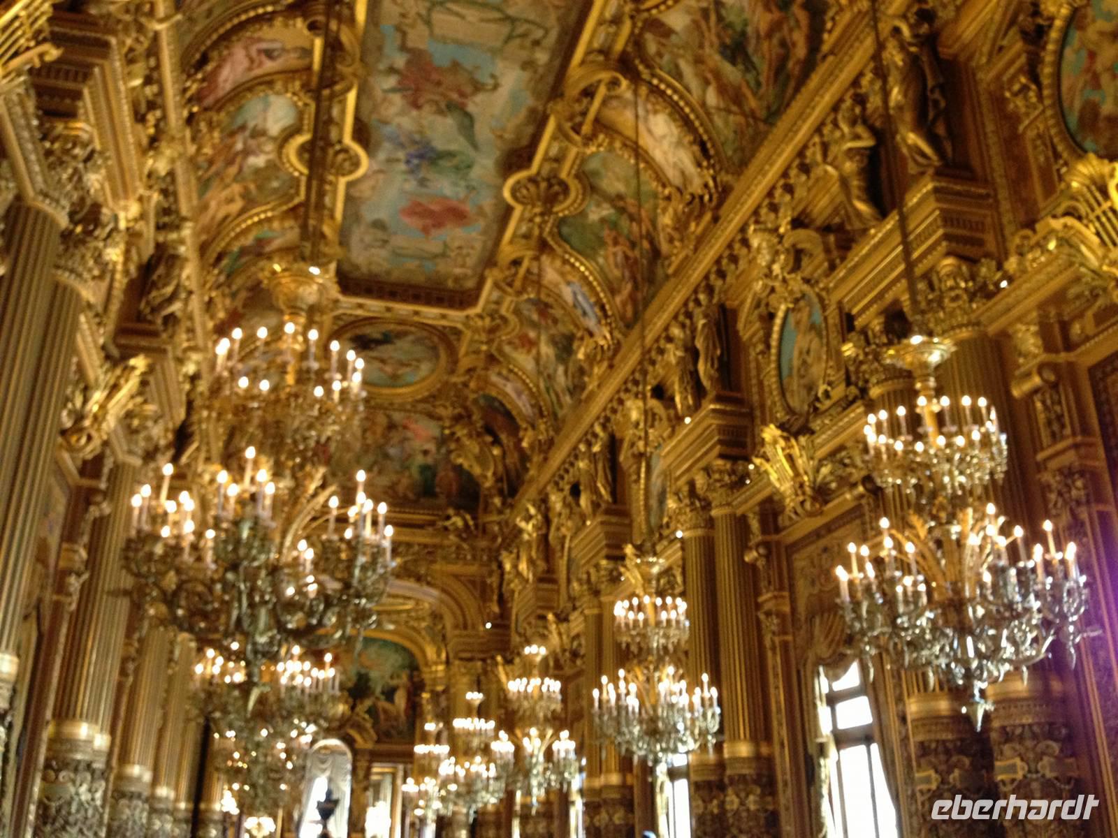 Wir besichtigen die Oper und staunen über die prächtige Foyer mit der großzügigen Treppe und bewundern das Deckengemälde von Marc Chagall im Zuschauerraum. Anschließend geht's in die beiden am quirligen und vornehmen Boulevard Haussmann gelegenen Kaufhäuser „Galleries Lafayettes" und „Printemps".
