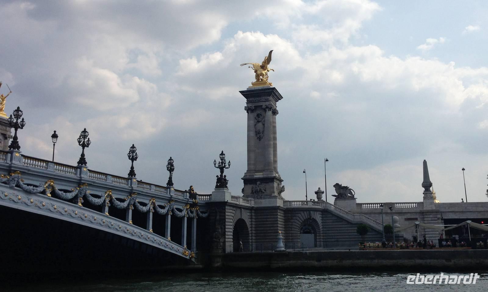 Mit dem Bus geht's nach einem kleinen Dessert -von Eberhartd-Travel spendierte Éclairs im Park am Jakobsturm- zur Anlegestelle der Bâteaux Parisiens. Dort beginnt unsere Fahrt auf der Seine, entlang der schönsten Sehenswürdigkeiten.