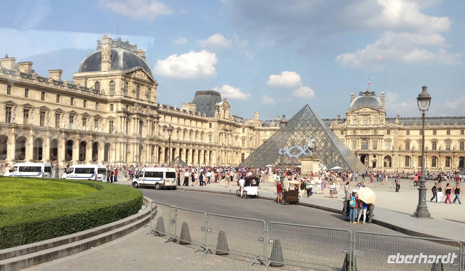 Einige Gäste nutzen den Vormittag für einen Besuch im Louvre, die andern machen gemeinsam mit der Reiseleiterin einen Spaziergang im vornehmen ersten Bezirk. Im Hof des Palais Royal flitzen die Skater um die Stelen des israelischen Künstlers Dani Karavan, der Garten des Palais ist eine wahre Oase der Stille inmitten der Großstadt!