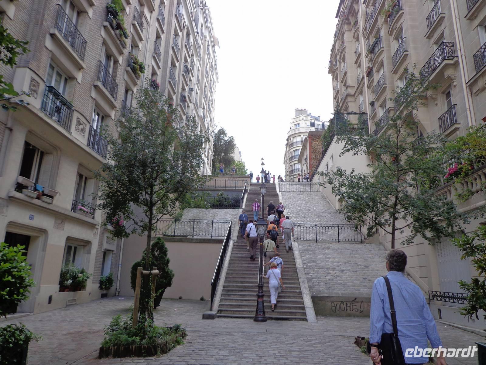 Am Nachmittag stand ein Besuch auf dem Montmartre an. In zwei Gruppen erfolgte die Führung. Dabei erstiegen wir den Hügel allmählich und lernten dabei weitere sehenswerte Dinge kennen. So u.a. das Wohnhaus der Sängerin und Schauspielerin Dalida, das Cabaret „Lapin Agile", den letzten Weinberg, das Maison Rose', wo Maurice Utrillo viel Zeit verbracht hat, den Malerplatz und die Basilika Sacre Coeur.