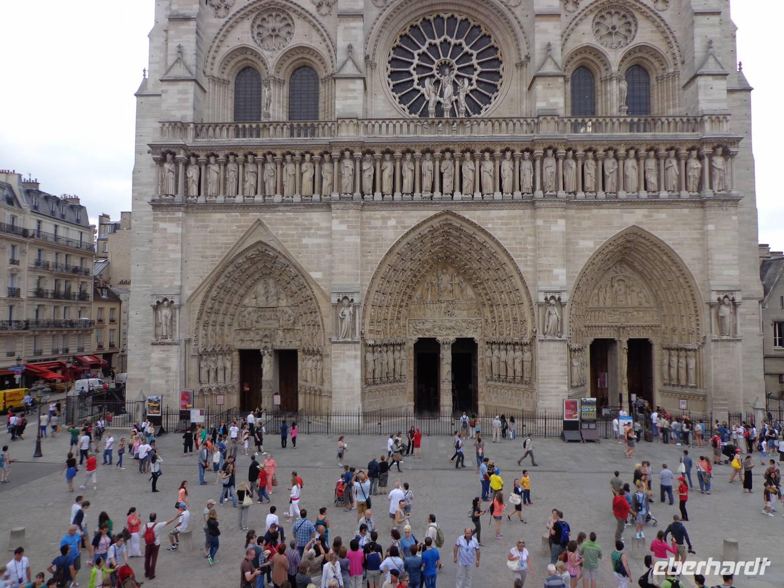 Der nächste Tag sollte viele weitere Erlebnisse bringen. So gingen wir wieder in zwei Gruppen, ausgerüstet mit Funk, über die beiden Seine-Inseln Ile de la Cite' und Ile St. Louis. Auf der Ile de la Cite' sahen wir die Kathedrale Notre Dame von innen und außen, den Justizpalast, die älteste Uhr und das älteste Krankenhaus von Paris, die Polizeipräfektur und erfuhren etwas zur Kirche La Chapelle, die zwei Etagen hat. Natürlich ist diese Insel von Touristen aus aller Welt bevölkert.Ruhiger geht es auf der Ile St. Louis zu. Hier reihen sich Wohnhäuser, kleine Restaurants und Cafe's aneinander. Das ehemalige Wohnhaus der Familie Rothschild wird gegenwärtig renoviert. Auf dieser Insel gibt es auch das berühmteste Eis von Paris, das Eis von Berthillon.