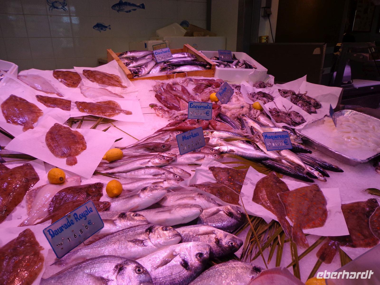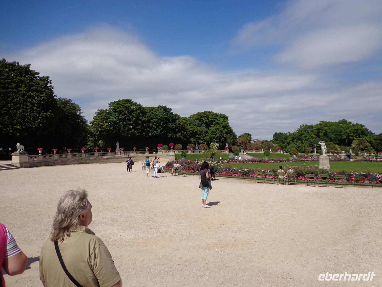 Die weitläufigen Gärten vom Schloß kann man auch besuchen. Dafür muß man aber extra Eintritt bezahlen. So nutzten einige Gäste die zur Verfügung stehende Zeit um sich in der Stadt Versailles umzusehen. Besonders interessant ist der Markt, der täglich stattfindet. Dort kann man sich von der Frische der angebotenen Waren überzeugen. Obst, Gemüse, Fisch, Krustentiere, Fleisch und Wurst, Käse und Wein werden in ganzer Breite präsentiert.