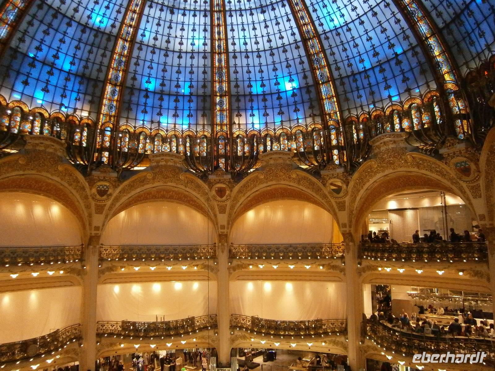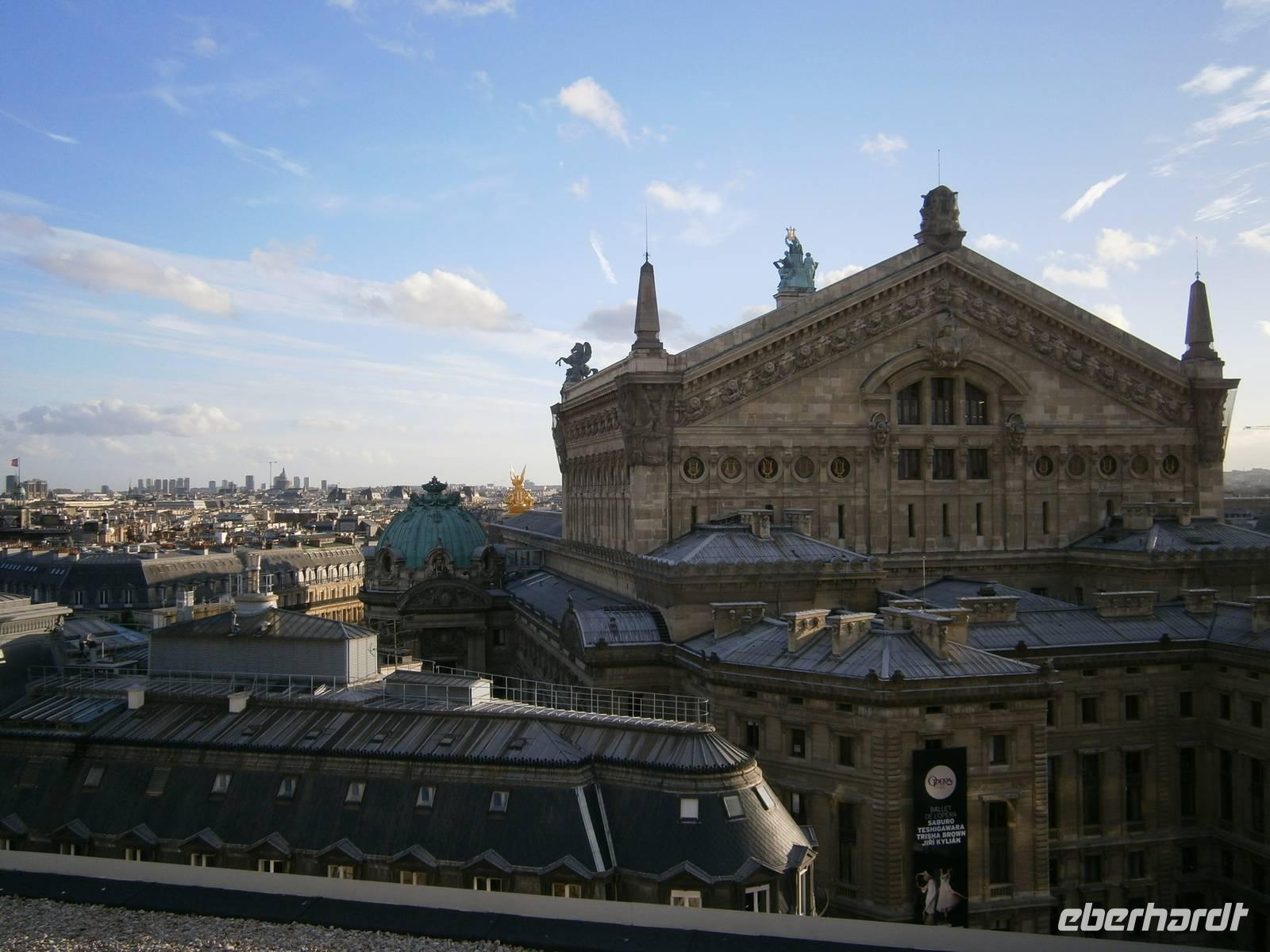Es regnet wieder. Eigentlich hätten wir heute einige Besichtigungen, aber unser Team hat die Touren vorgezogen, so dass wir bis auf das Abendessen einen freien Tag haben und unseren eigenen Interessen in Ruhe nachgehen können. Da fast alle in den Louvre möchten, bringt uns der Bus am Morgen in die Parkgarage, und wir können uns im Trockenen anstellen. Wir haben die Tickets zwar schon, aber um dadurch eine zeitliche Vergünstigung zu erhalten, muss man sich neuerdings oben an der Pyramide im Freien anstellen. Das wollen wir bei dem Wetter nicht! Nach einer halben Stunde sind wir durch die Sicherheitskontrollen und Petra bringt uns gleich zum Saal Denon, denn wir wollen natürlich unbedingt die Mona Lisa sehen. Jeder entdeckt dann das Museum auf eigene Faust. Am Nachmittag erwartet uns der Bus am Place Concorde und bringt uns zur Opera Garnier. Leider ist eine Besichtigung zeitlich nicht mehr lohnenswert, da die Oper bald schließt. Petra fährt mit uns auf die Terrasse vom Kaufhaus Galeries Lafayette, und dort haben wir nochmals einen wunderbaren Blick über die Dächer von Paris bis zum Eiffelturm und Sacre Coeur. Wir nehmen gemeinsam ein letztes Abendessen im Traditionsrestaurant "Les Noces des Jeannette" ein. Unser Bus bringt uns zurück ins Hotel. Wir nehmen Abschied von unserem Fluggast, der morgen Nachmittag von Paris über Frankfurt zurück nach Dresden fliegt. Da sind wir schon in Deutschland!