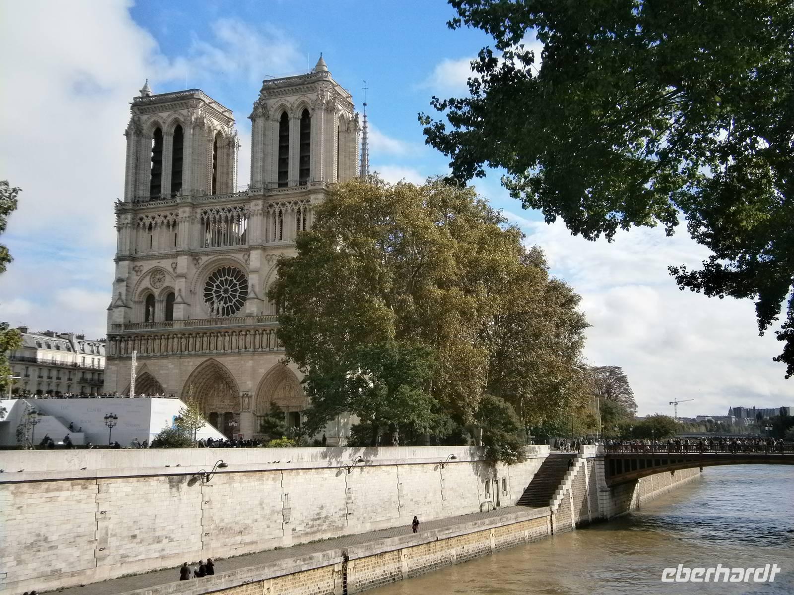 Heute haben wir eigentlich Freizeit, aber alle Gäste nehmen am fakultativen Rundgang im Maraisviertel teil. Der Bus bringt uns zum Treffpunkt mit Michael am Hotel de Sully, denn wir möchten uns gemeinsam das Marais-Viertel anschauen. Er zeigt uns viel Interessantes in dem alten Stadtbezirk. Vorbei am Centre Georges Pompidou und dem Rathaus bringt Michael uns zu Notre Dame. Wir haben Zeit zum Essen, Notre Dame oder die Sainte-Chapelle zu erkunden, ehe wir zu unserem nächsten Rundgang über die Ile de la Citè starten. Auch jetzt bleibt uns Zeit für eigene Erkundungen, ehe uns der Bus ins Hotel bringt. Einige Gäste haben heute Abend einen Besuch im Paradis Latin, dem ältesten traditionellen französischen Cabaret der Welt, gebucht. Der Saal entstand nach Plänen von Gustave Eiffel. Wir erleben eine glitzernde Pariser Revue mit leckerem Abendessen und Champagner und Wein. Bezaubernde Tänzerinnen und Tänzer in ihren raffinierten Kostümen begeistern uns und zeigen natürlich den berühmten Pariser Cancan. Alle sind begeistert, das ist noch ein Hauch vom alten Paris. Keine Show in amerikanischen Stil! Ein französischer Bus erwartet uns schon und bringt uns bequem zurück zum Hotel. Vom Hotelfenster bewundern wir um Mitternacht noch das Blinkern des Eiffelturms!