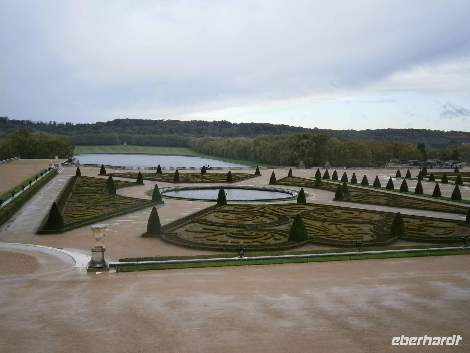 Da wir mit die ersten Gäste sind, können wir mit unseren Audioguides die ganze Anlage noch recht entspannt bewundern. Anschließend möchten wir natürlich die Gärten anschauen. Heute ist Sonntag und in Versailles sind zum letzten Mal in diesem Jahr die Wasserspiele in Betrieb, was uns natürlich freut. Leider hat man schon die Bepflanzung entfernt. Ob das dem Sonnenkönig gefallen würde!? Eine Enttäuschung ist auch der erste Blick über die große Achse, denn das Latona-Becken, sicher der schönste Brunnen im Garten, ist außer Betrieb. Er wird restauriert, die Figuren sind alle abgebaut. Aber es gibt natürlich noch andere schöne Becken, wo das Wasser nur an den Wochenenden für eine Stunde sprudelt!