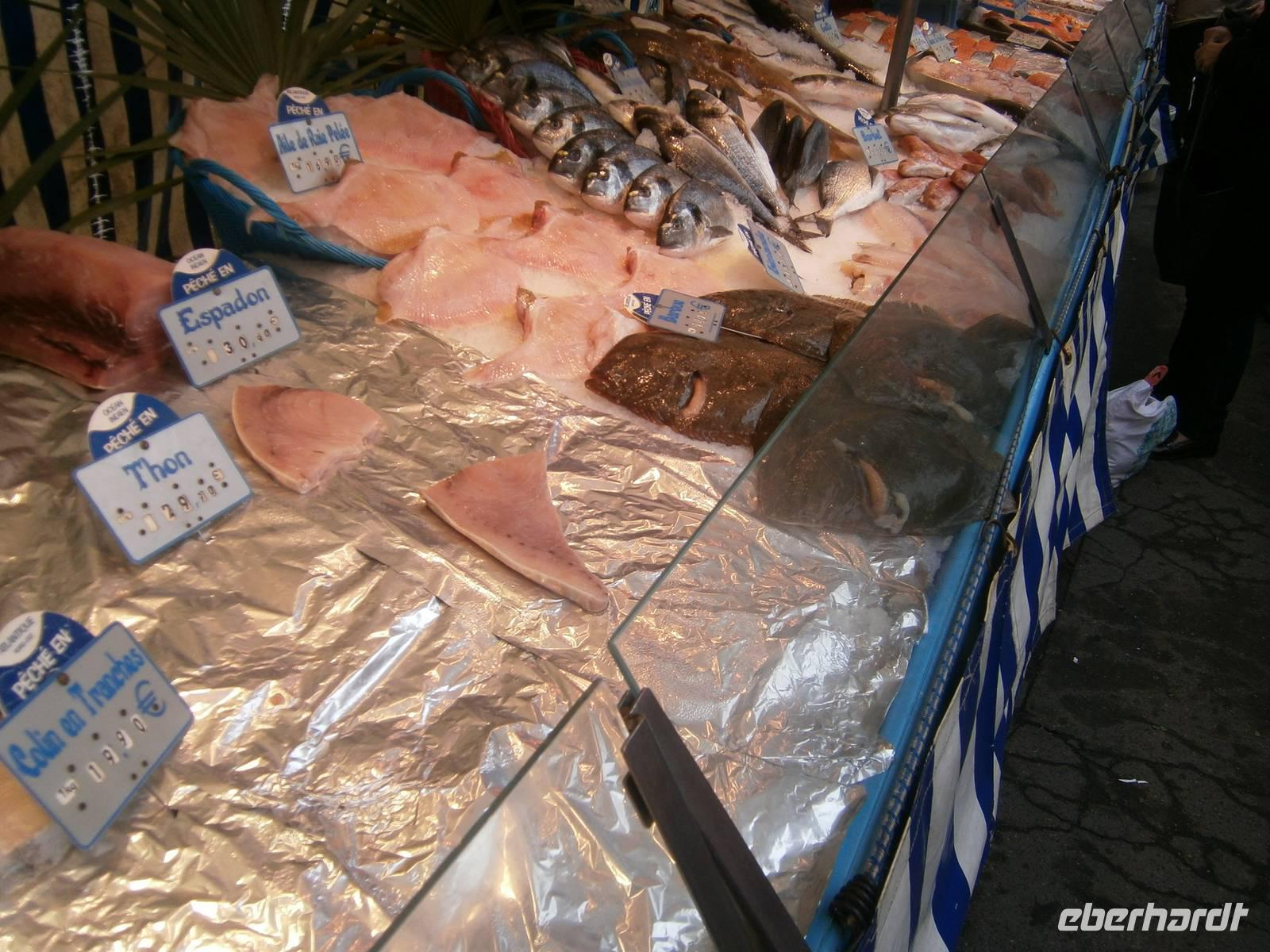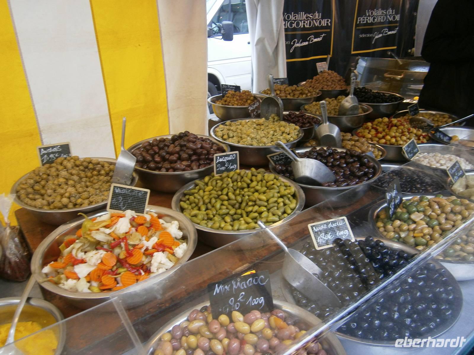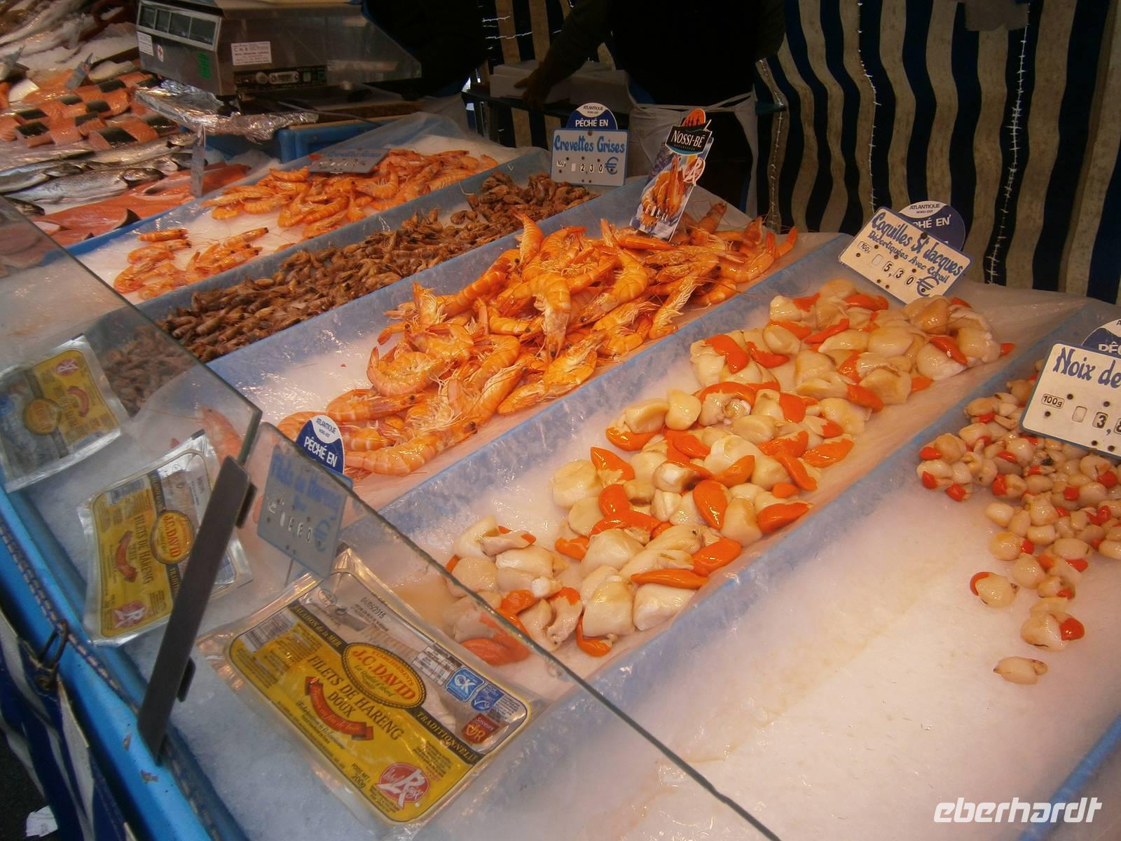 Die weitläufigen Gärten vom Schloß kann man auch besuchen. Dafür muß man aber extra Eintritt bezahlen. Die normalerweise zur Verfügung stehende Zeit wird auch gern genutzt, um sich in der Stadt Versailles umzusehen. Besonders interessant ist der Markt, der täglich stattfindet. Dort kann man sich von der Frische der angebotenen Waren überzeugen. Obst, Gemüse, Fisch, Krustentiere, Fleisch und Wurst, Käse und Wein werden in ganzer Breite präsentiert. Liebhaber von Antiquitäten werden in Marktnähe ebenfalls fündig. Aufgrund des starken Regens, hatte aber niemand das Bedürfnis, sich dort umzusehen.