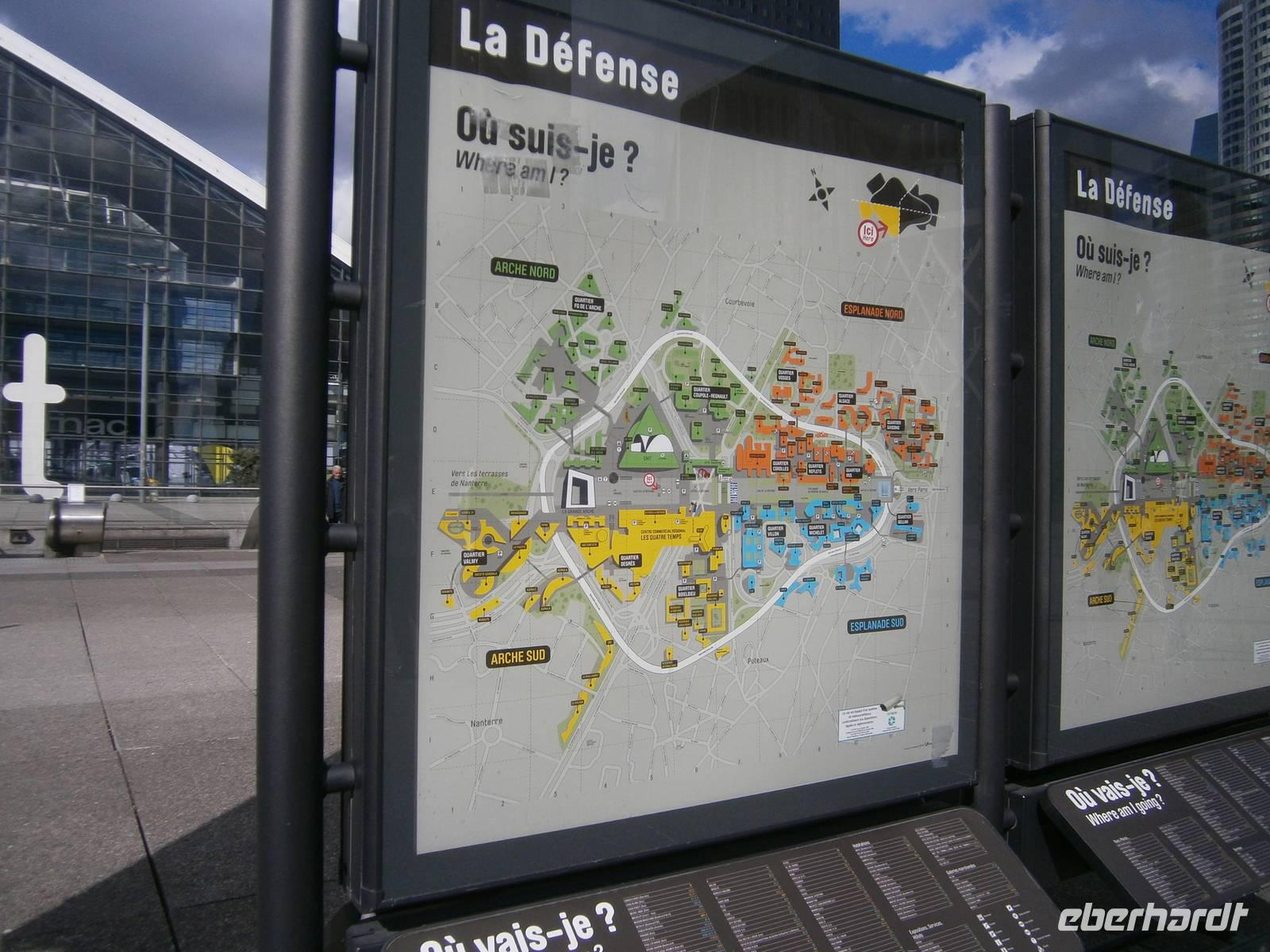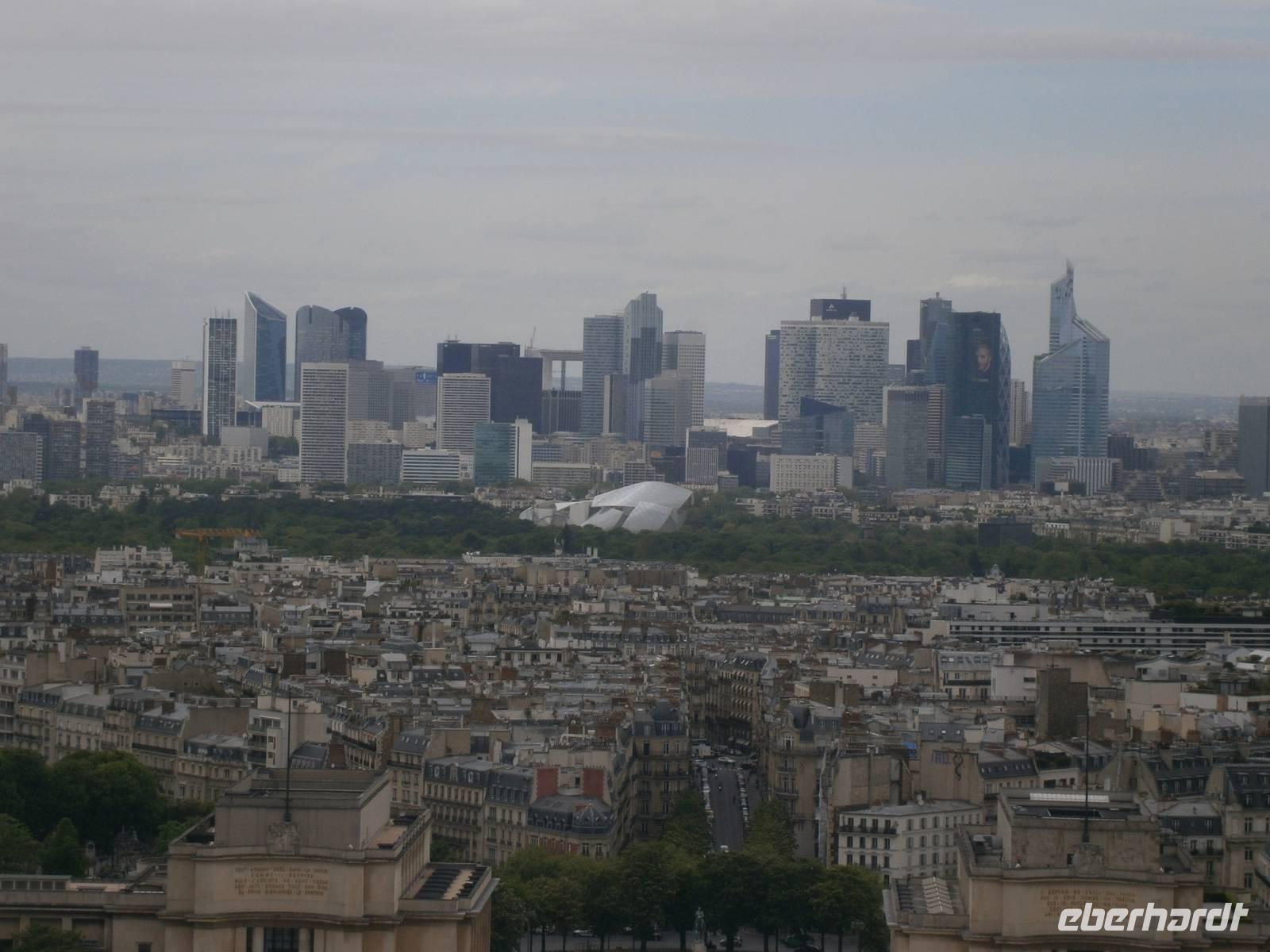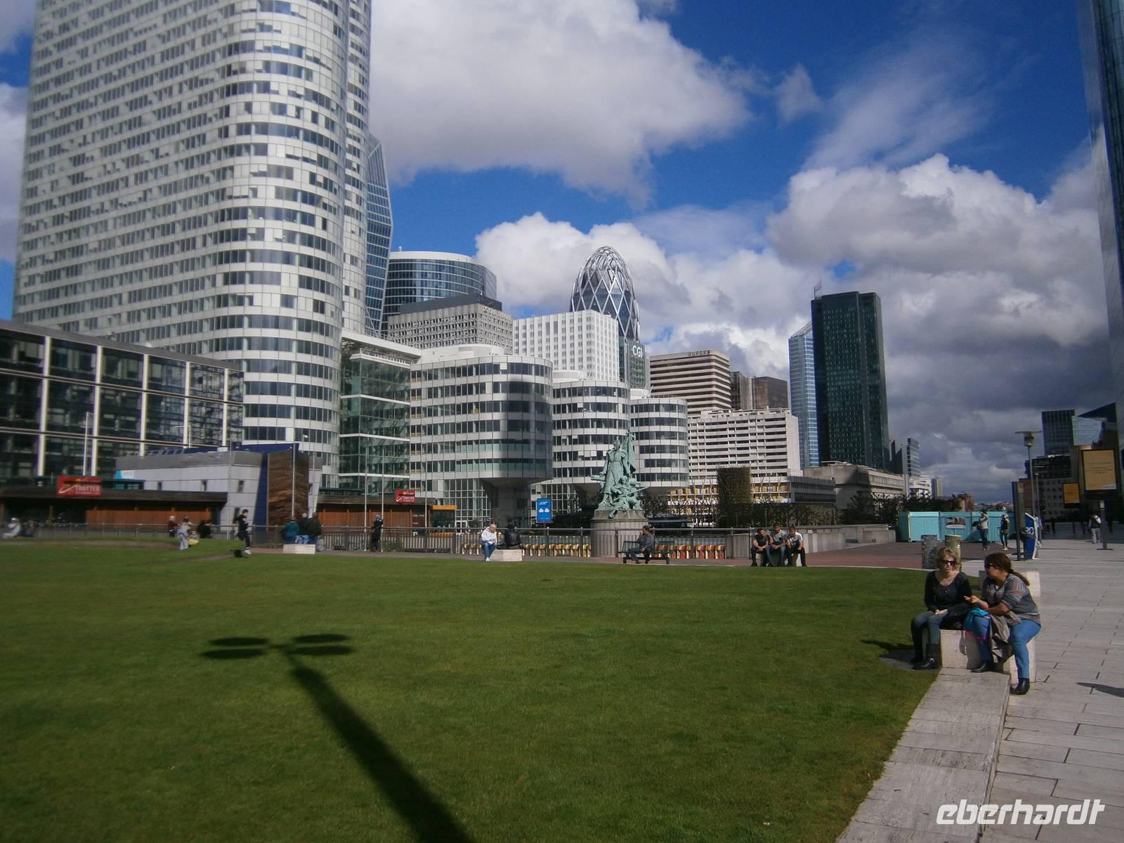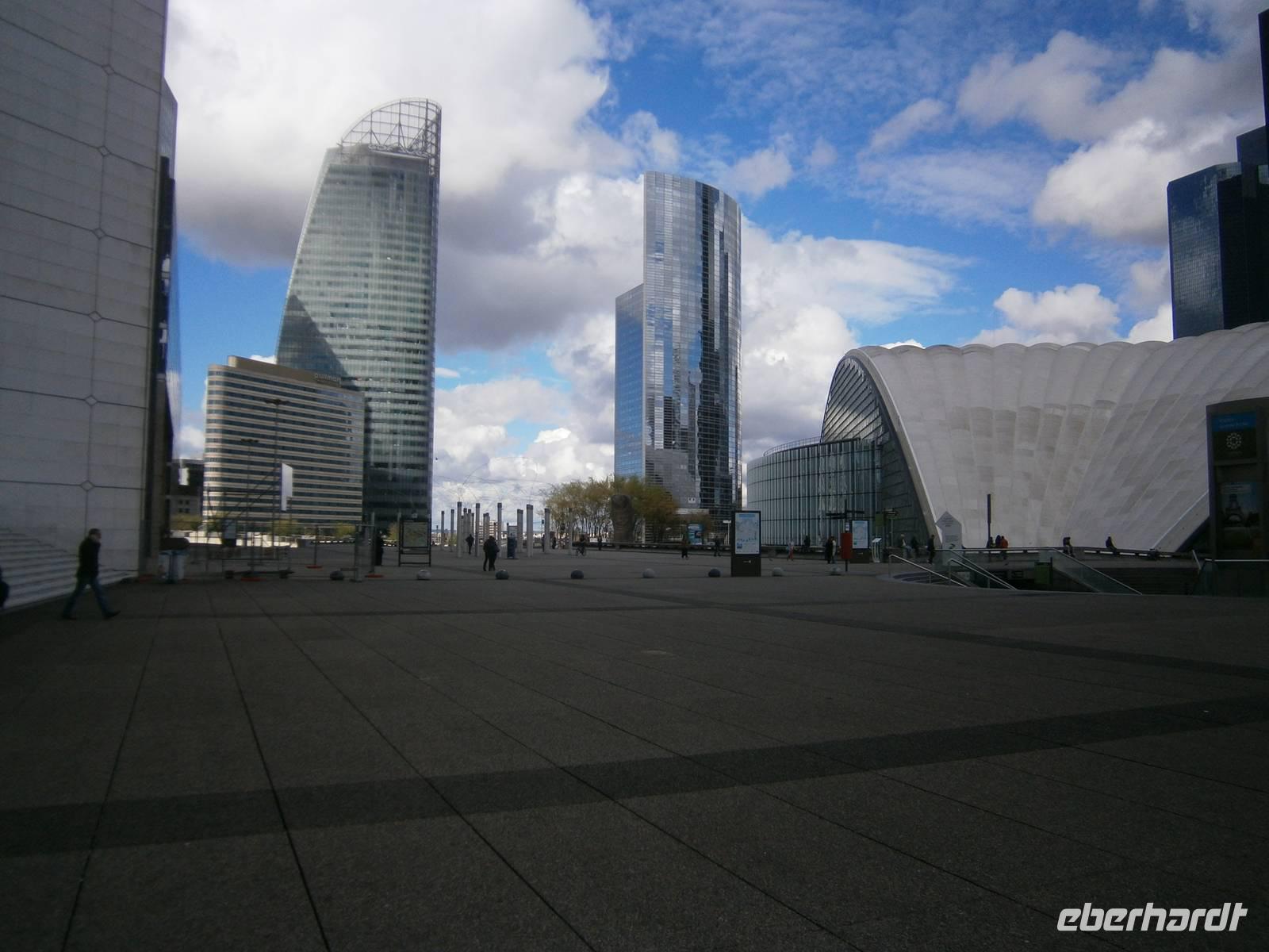 Im Anschluß unternahmen wir eine zweite Stadtrundfahrt, die uns in das moderne Paris, dem Viertel La Defense, brachte. Futuristisch gestaltete Bürohochhäuser aus Glas und Beton bestimmen hier das Bild, ebenso auch viele Baukräne. Ein großes Einkaufszentrum, Kinos, Restaurants und Wohnhäuser stehen hier. Das Gebiet ist angeschlossen an das Netz der Metro, der S-Bahn und des Stadtbusverkehrs. Insgesamt stehen 25.000 Parkplätze zur Verfügung. Das Herz dieses Viertels bildet die „Grande Arche" des dänischen Architekten Johann Spreckelsen. In dieses riesige Quadrat würde die Kathedrale Notre Dame spielend hinein passen.Die Mitglieder unserer Reisegruppe nutzten die Möglichkeit und filmten und fotografierten die vielen Motive, die sich ihnen hier boten.