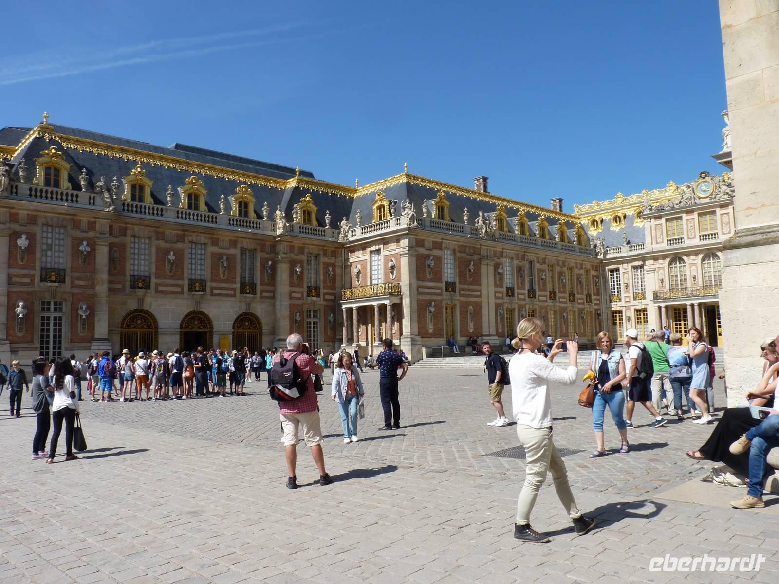 Im Anschluss tun wir es dem Sonnenkönig gleich und verlassen Paris: Versailles steht heute auf dem Programm. Obwohl wir vor der offiziellen Öffnungszeit da sind, ist es wie so oft in Paris wie bei dem Hasen und dem Igel: Hunderte von „Igeln" aus aller Welt sind bereits da und wir müssen uns ans Ende der Schlange stellen.