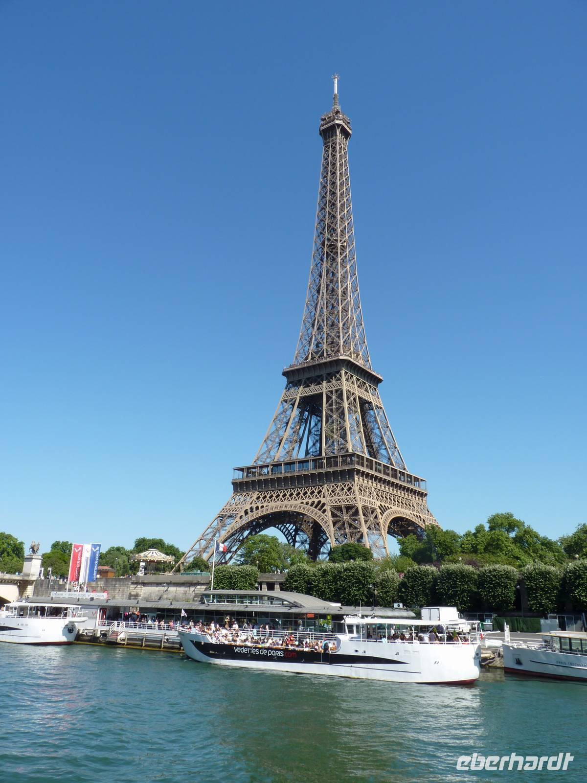 Mit dem Bus ging es zurück auf die andere Seite der Seine zum Bootsanleger, direkt zu Füßen des Eiffelturms.