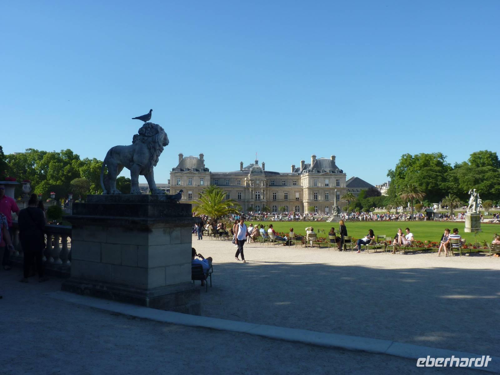 Am großen Wasserbecken vor dem Palais der Maria von Medici, welches heute den Senat beherbergt, ist es dann beschaulicher: Kinder lassen Mini-Segelboote kreuzen (Leihboote gibt es am Stand) und zahlreiche Besucher genießen in den typischen Gartenstühlen des Jardin die Abendsonne. Hier entstand unser Gruppenfoto.