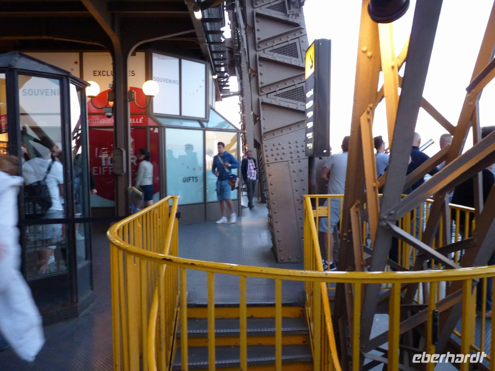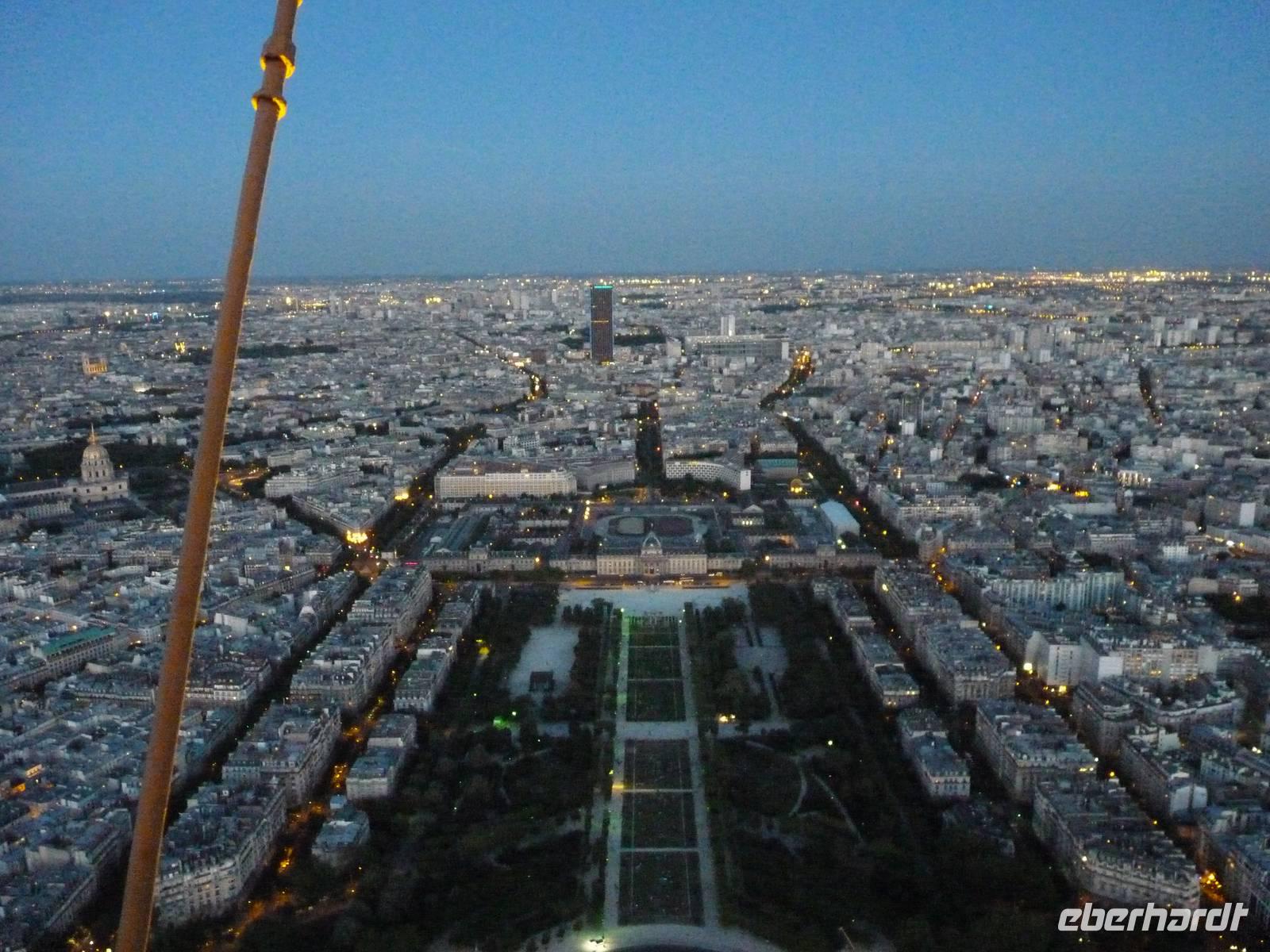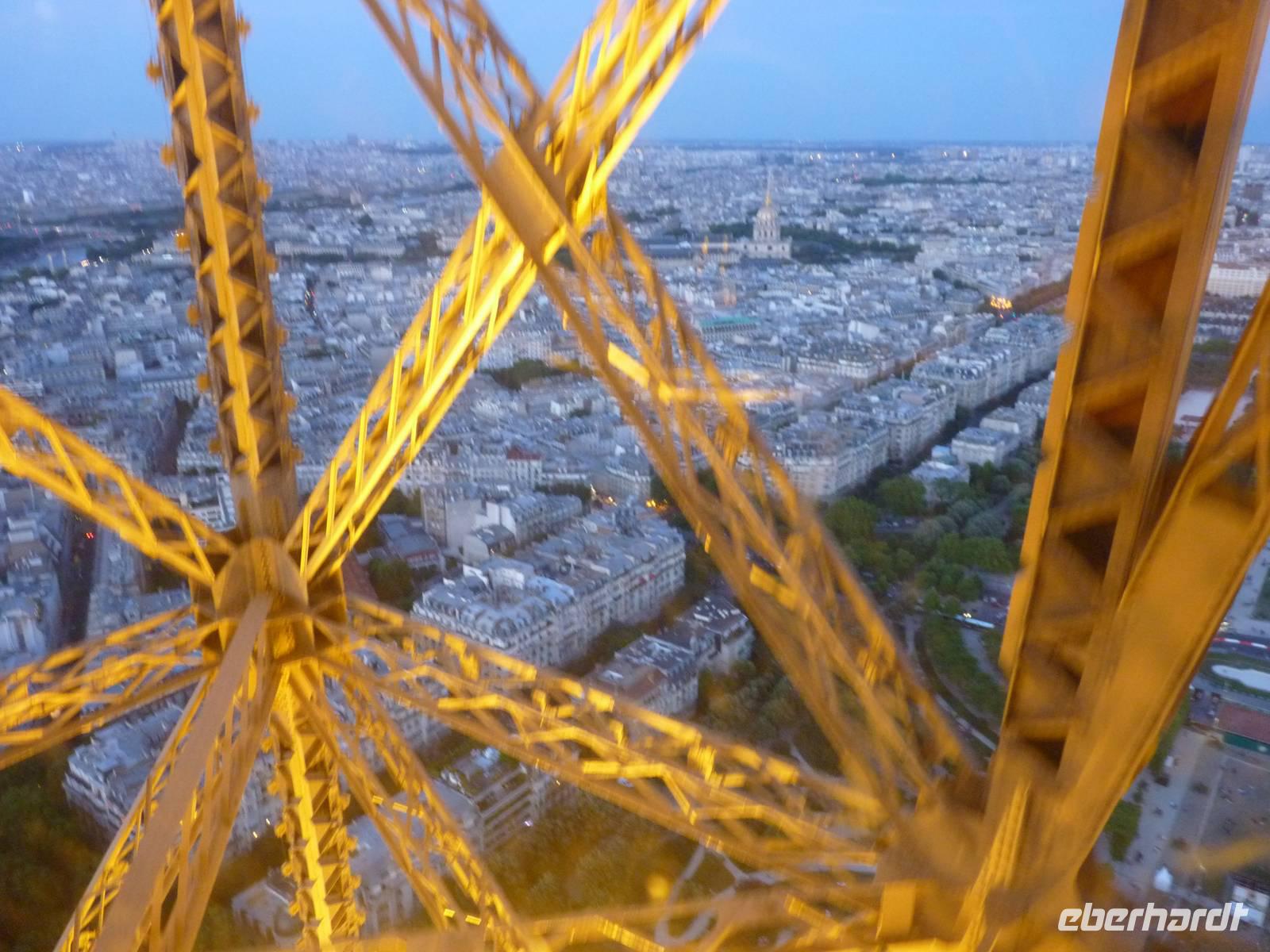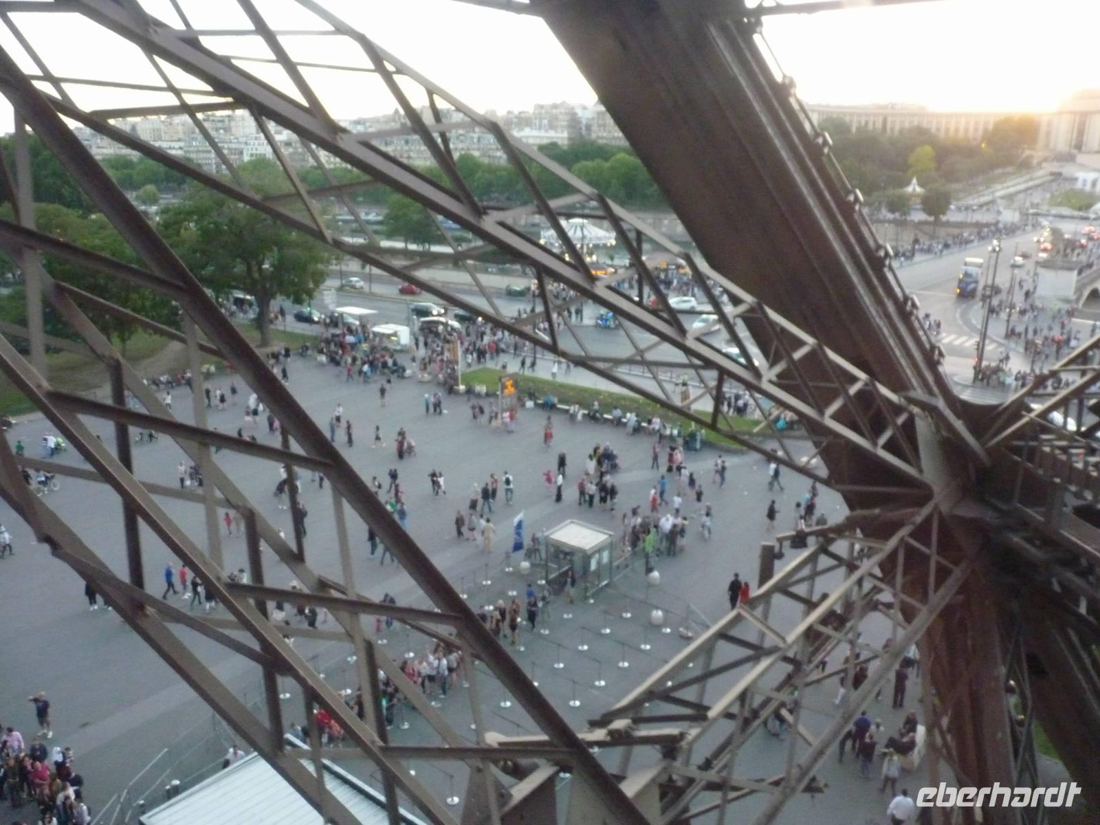 21.30 hatten wir freie Fahrt auf das Highlight von Paris. Die erste Plattform auf dem Eiffelturm befindet sich in 57 Metern Höhe. Von hier aus sieht man bereits bis über die Stadtgrenzen hinaus - denn in Paris durfte lange nicht höher als ca. 40 Meter hoch gebaut werden.