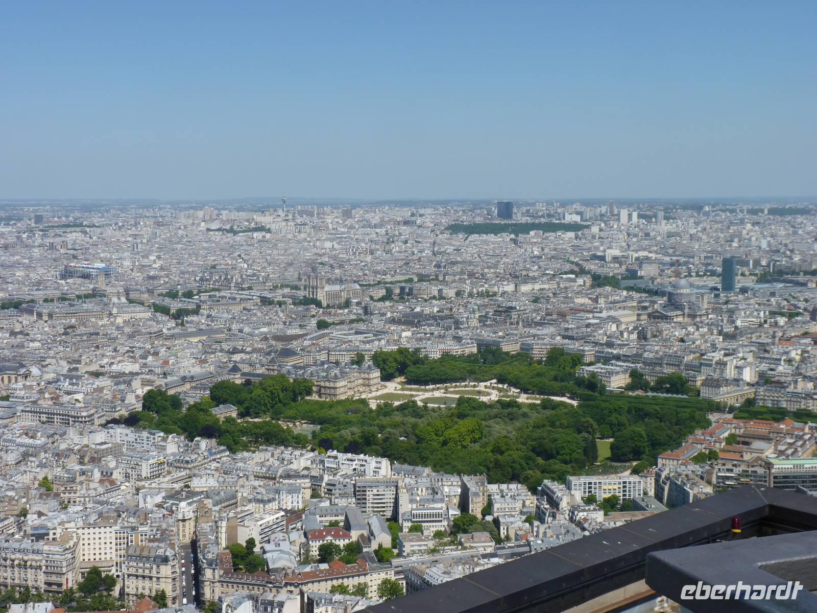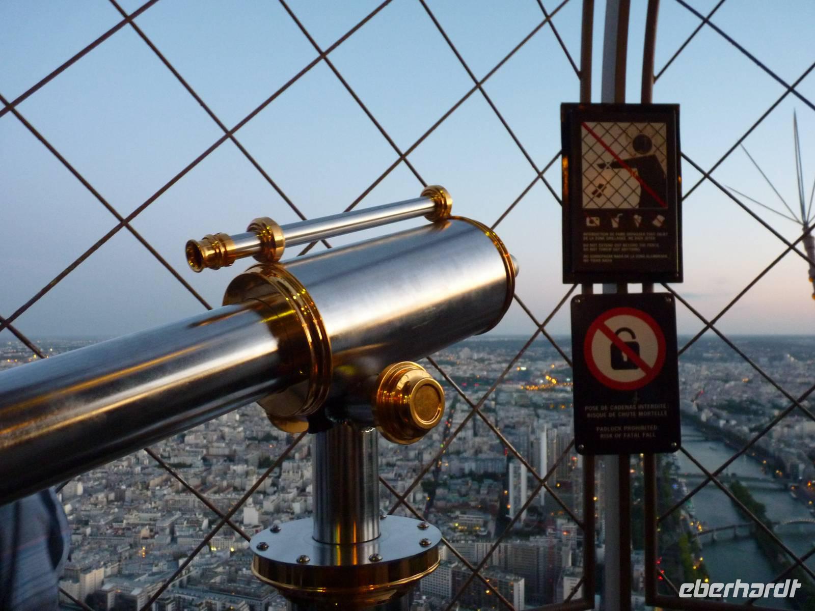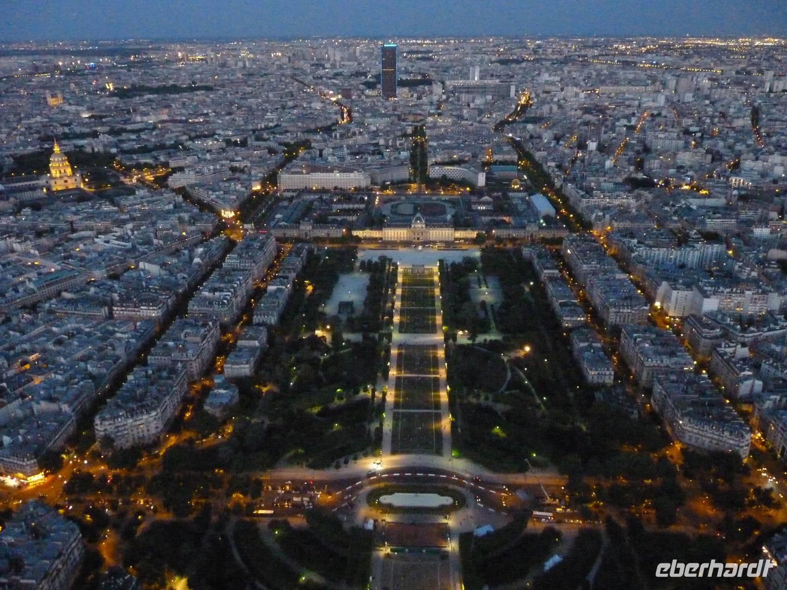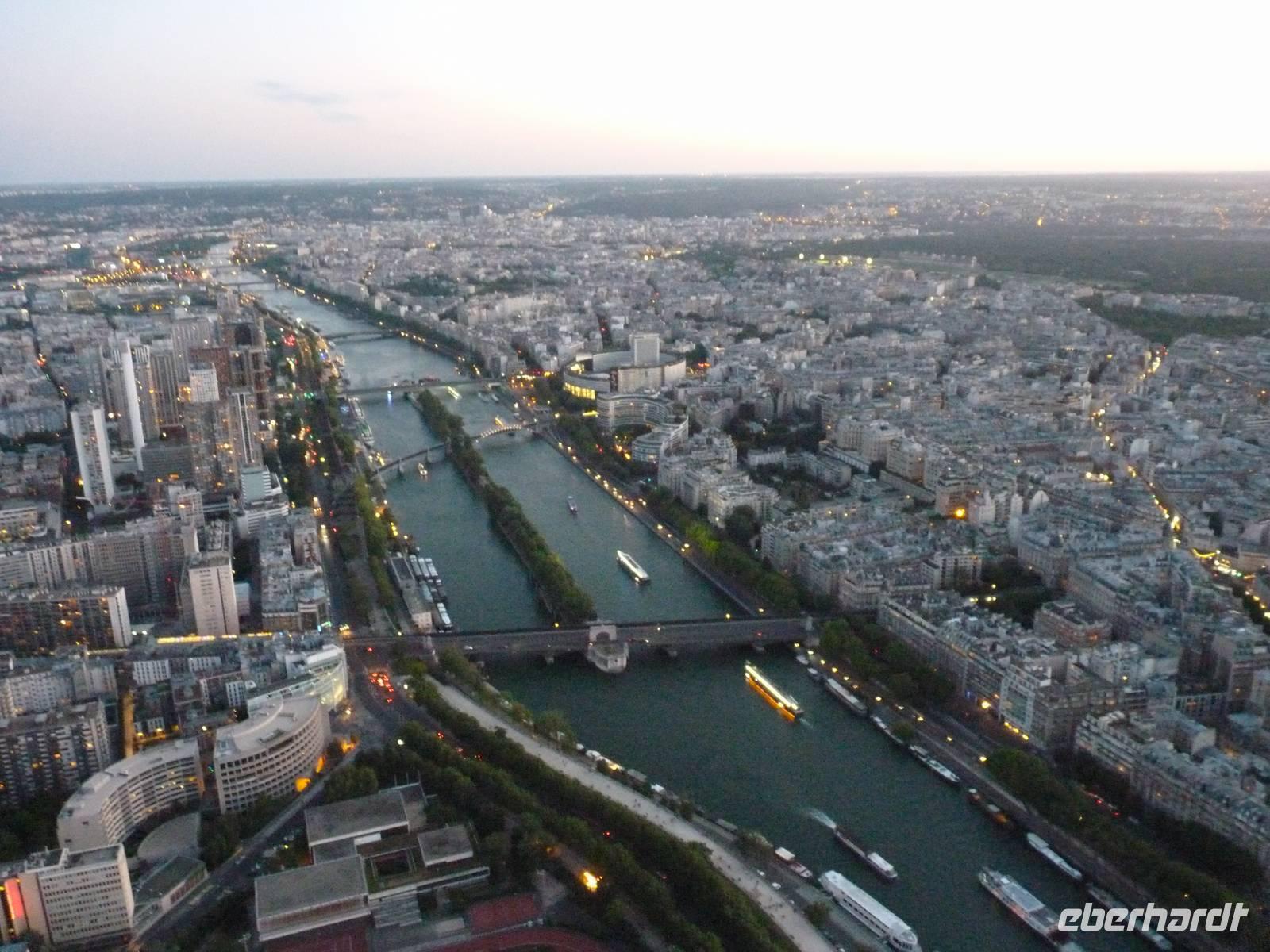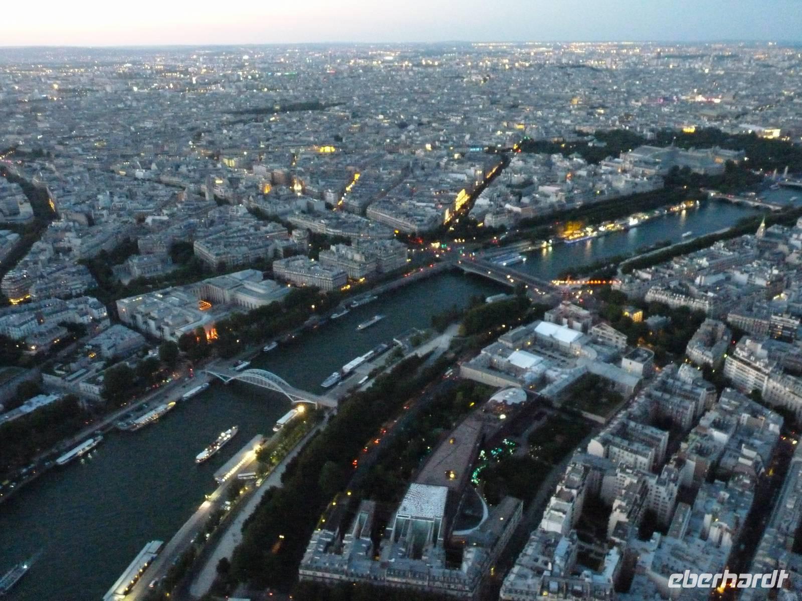 21.30 hatten wir freie Fahrt auf das Highlight von Paris. Die erste Plattform auf dem Eiffelturm befindet sich in 57 Metern Höhe. Von hier aus sieht man bereits bis über die Stadtgrenzen hinaus - denn in Paris durfte lange nicht höher als ca. 40 Meter hoch gebaut werden.