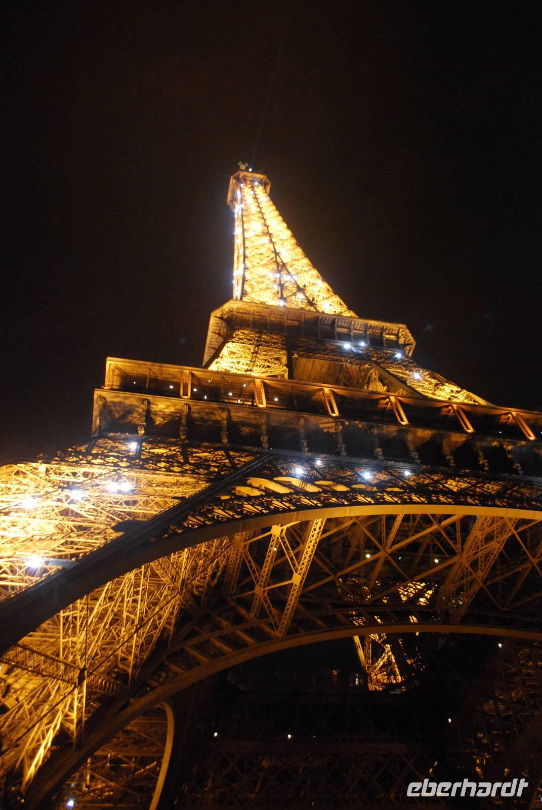 Durch Schleichwege und dann direkt am beleuchteten Eiffelturm entlang, werden wir dann zurück in unser Hotel gebracht.
