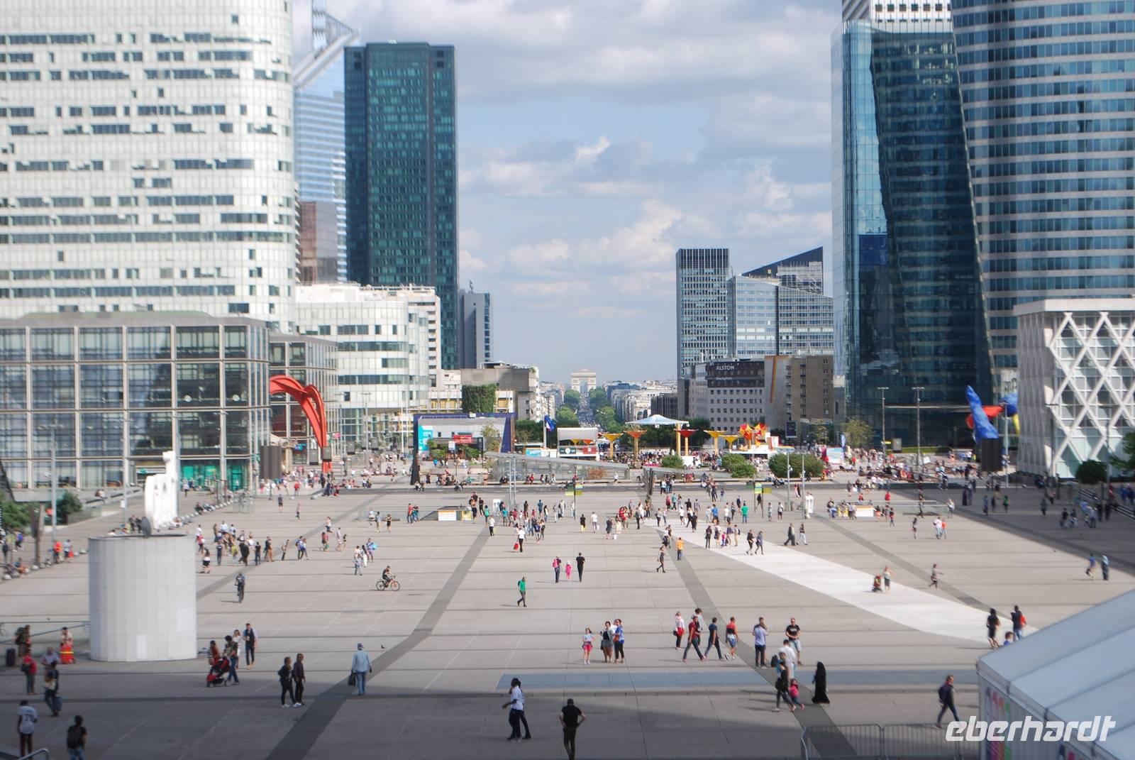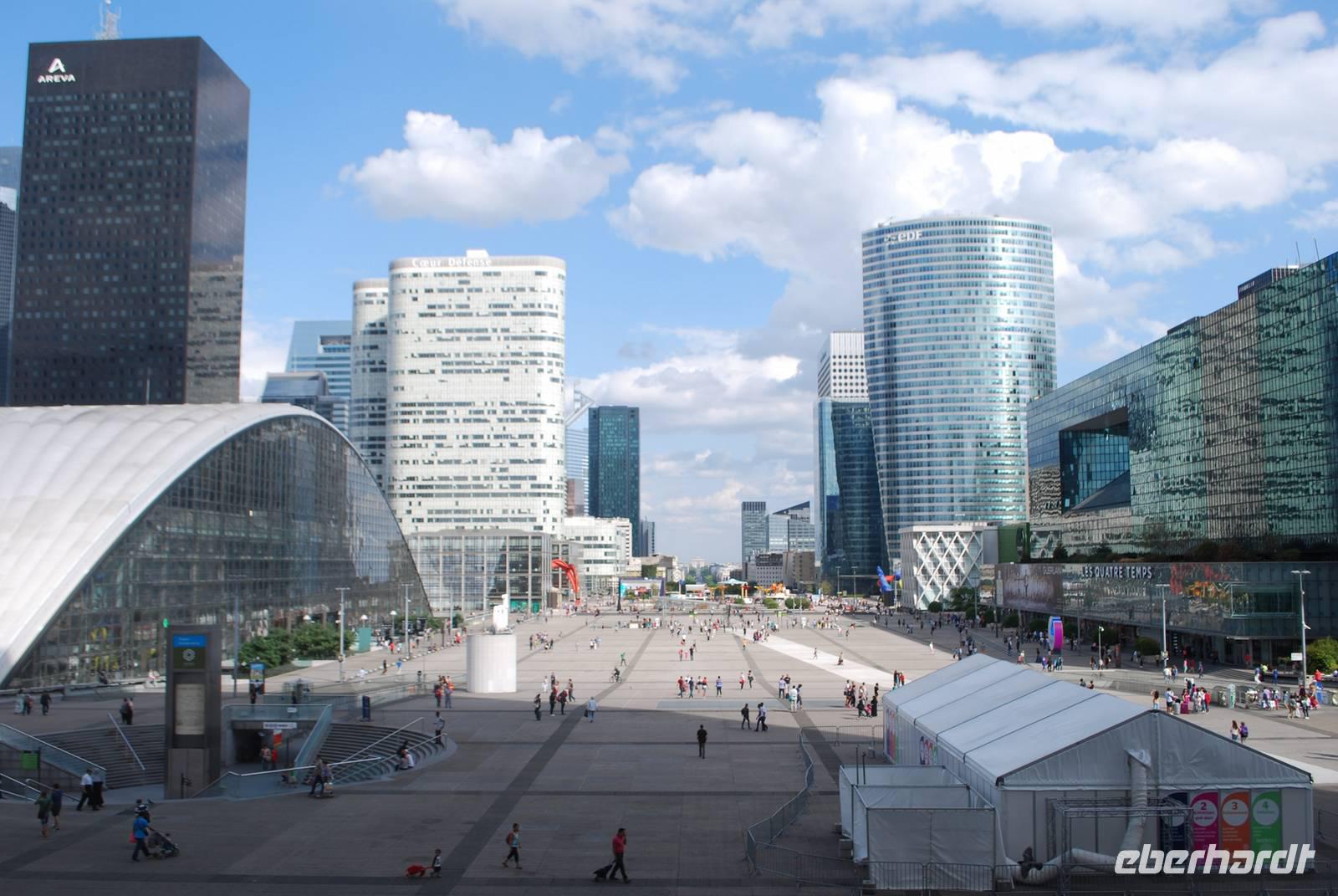 Sehr zeitig fahren wir nach Versailles, dem Prunkschloss par excellence. Aber unser zeitiges Aufstehen wurde belohnt: die Warteschlange vor dem Schloss ist kurz, es ist nur eine Gruppe vor uns. Kurz nach 9 Uhr haben wir es geschafft: wir sind bei Ludwig XIV. und die schnellsten von uns können sogar noch einen leeren Spiegelsaal fotografieren. Bei einem Spaziergang durch das Schloss und durch die Gärten machen wir uns mit dem Leben zu Hofe im 17. - 18. Jahrhundert vertraut und lernen Louis Le Vau, Charles Le Brun und André Le Nôtre durch ihre Werke kennen. Am Nachmittag findet unsere Bootsfahrt auf der Seine statt. So vermeiden wir den dichten Verkehr und haben Zeit, um die zahlreichen Sehenswürdigkeiten der Stadt vom Flusse aus zu bewundern: die Jena Brücke, die Insel Saint Louis, den Concorde-Platz, den Louvre und die Kathedrale... Die Bootsfahrt ist ein richtiges Muss, bei einem Besuch in Paris. Anschließend fahren wir mit Stefanie nach La Défense, in das große Business-Viertel von Paris und Umgebung. Hier verlassen wir das Paris von Haussmann und tauchen ab, in eine postmoderne Epoche mit Wolkenkratzern und Glas- und Stahlarchitektur. Von weitem, sieht der Triumphbogen von Napeleon auf einmal ganz klein aus!