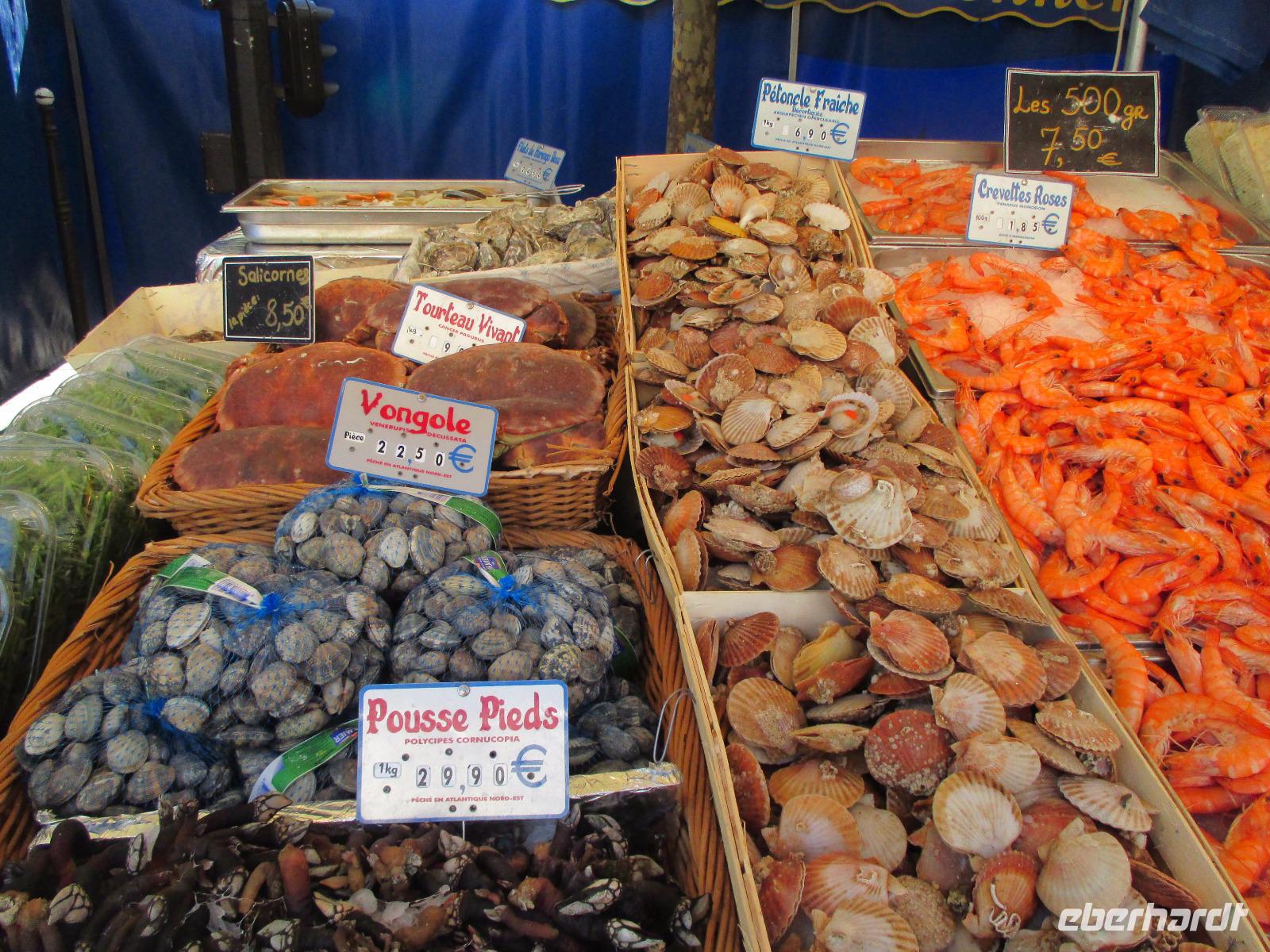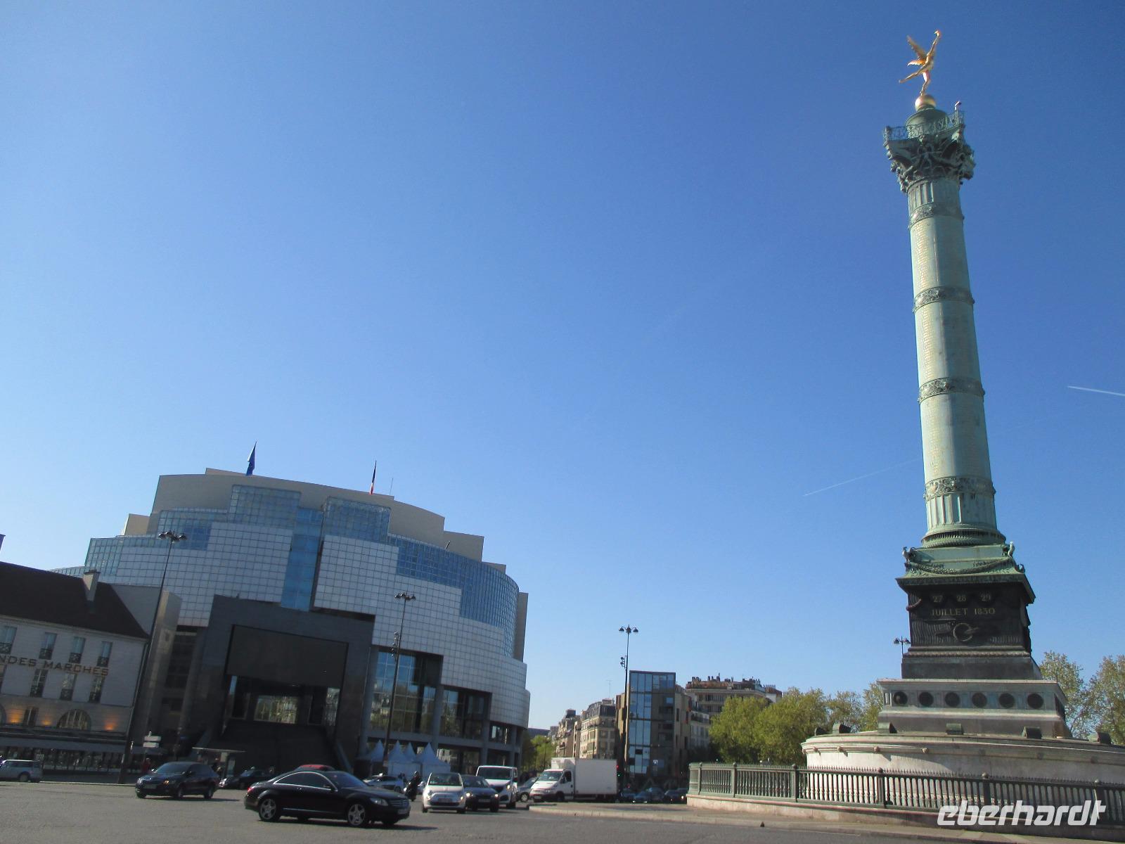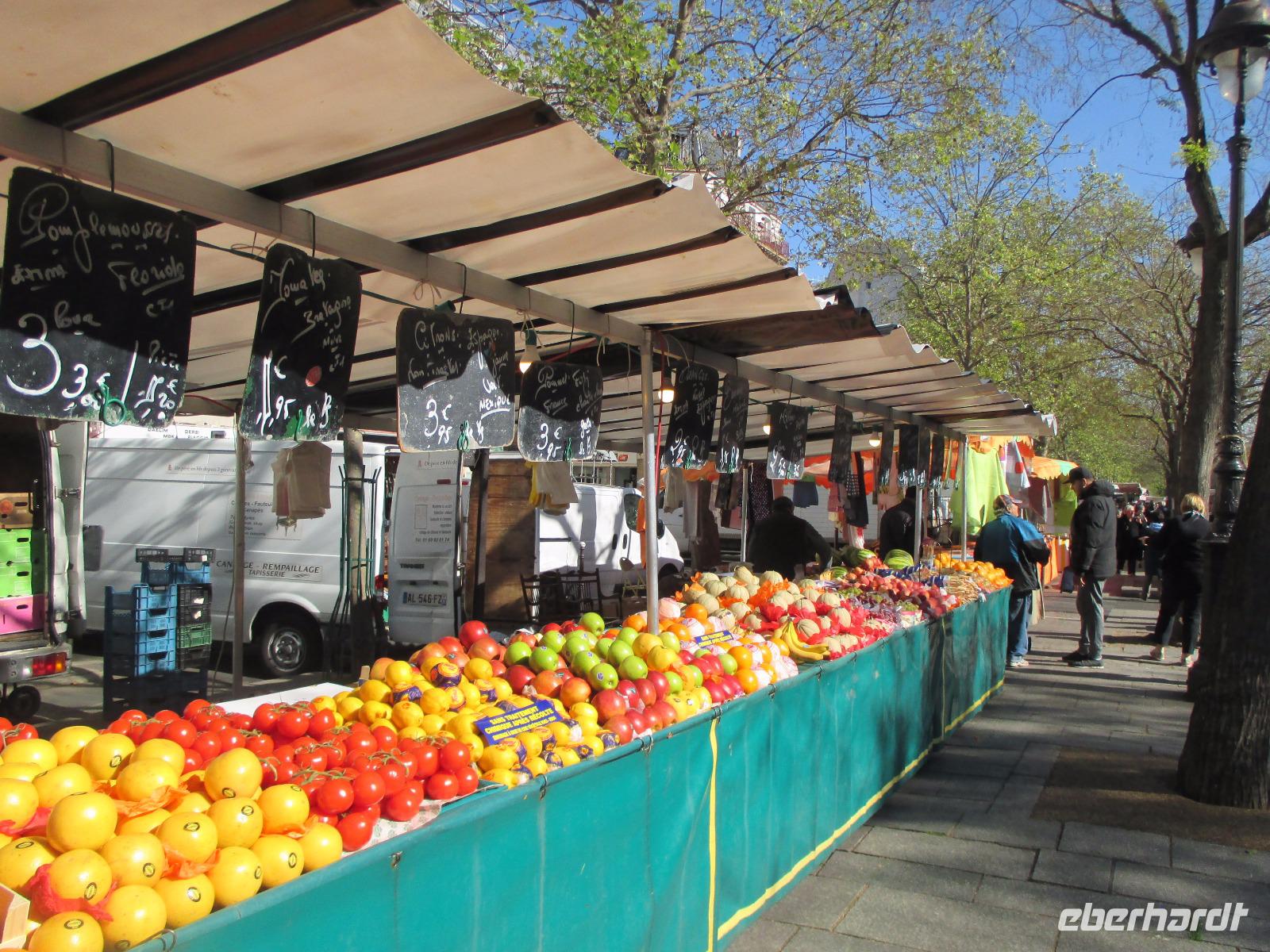 Mit Paul fahren wir in unserem Bus zur Place de la Bastille. Heute ist dort ein kleiner Markt und wir staunen über das Angebot. Alles was der Magen begehrt...Gemüse, Früchte, Wein, Käse. ..