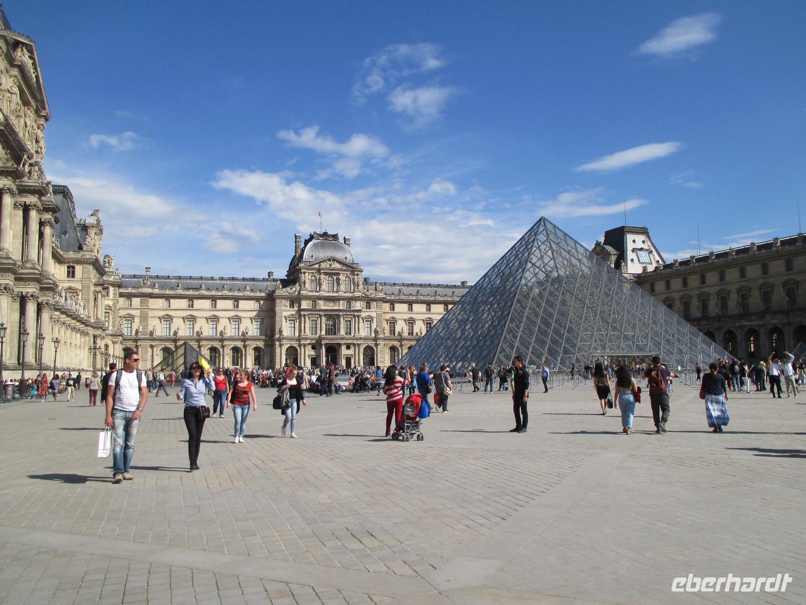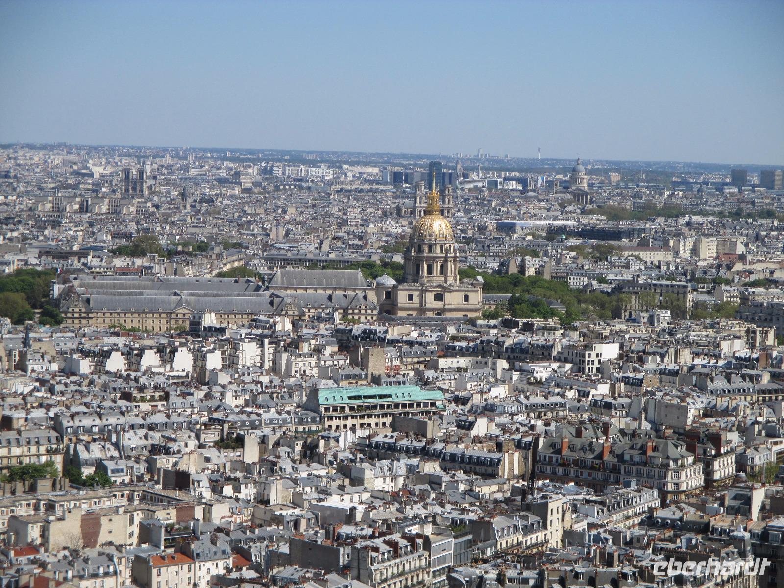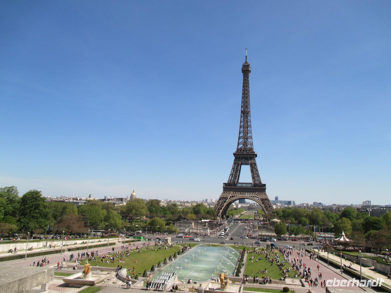 Paul bringt uns auf einen der schönsten und ältesten Plätze von Paris, den Place des Vosges. Marais war einst eine bevorzugte Wohngegend des Adels, so bewundern wir herrliche Paläste. Wir spazieren durch die Rue des Rosiers, das Zentrum des jüdischen Lebens in Paris. Am Centre Georges- Pompidou endet unser Rundgang und es bleibt Zeit für eine kleine Mittagspause. Frank bringt uns mit dem Bus zum Eiffelturm, das bekannteste Bauwerk von Paris. Wir sind glücklich, denn wir haben schon Karten für die Auffahrt. Es ist gar nicht so viel los und so sind wir schnell auf der obersten Plattform. Wir haben viel Zeit, die heute ausgezeichnete Fernsicht zu genießen. Wer möchte fährt mit dem Bus ins Hotel zurück, denn einige Gäste haben einen Besuch im Paradis Latin gebucht, dem ältesten traditionellen französischen Cabaret der Welt. Der Saal entstand nach Plänen von Gustave Eiffel. Wir erleben eine glitzernde Revue mit Tänzerinnen und Tänzern in raffinierten Kostümen. Sie zeigen natürlich auch den berühmten Pariser Cancan. Alle sind begeistert, auch vom leckerem Abendessen und Champagner und Wein! Taxen bringen uns zurück zum Hotel.