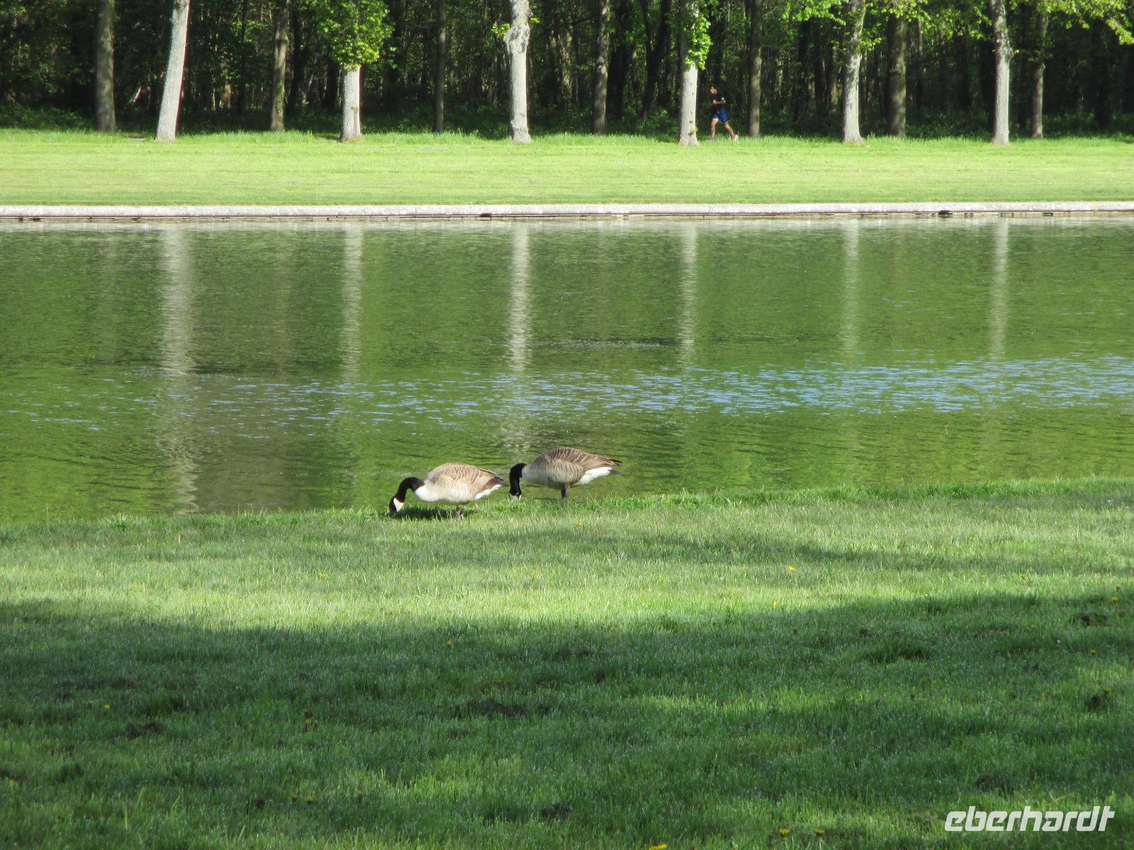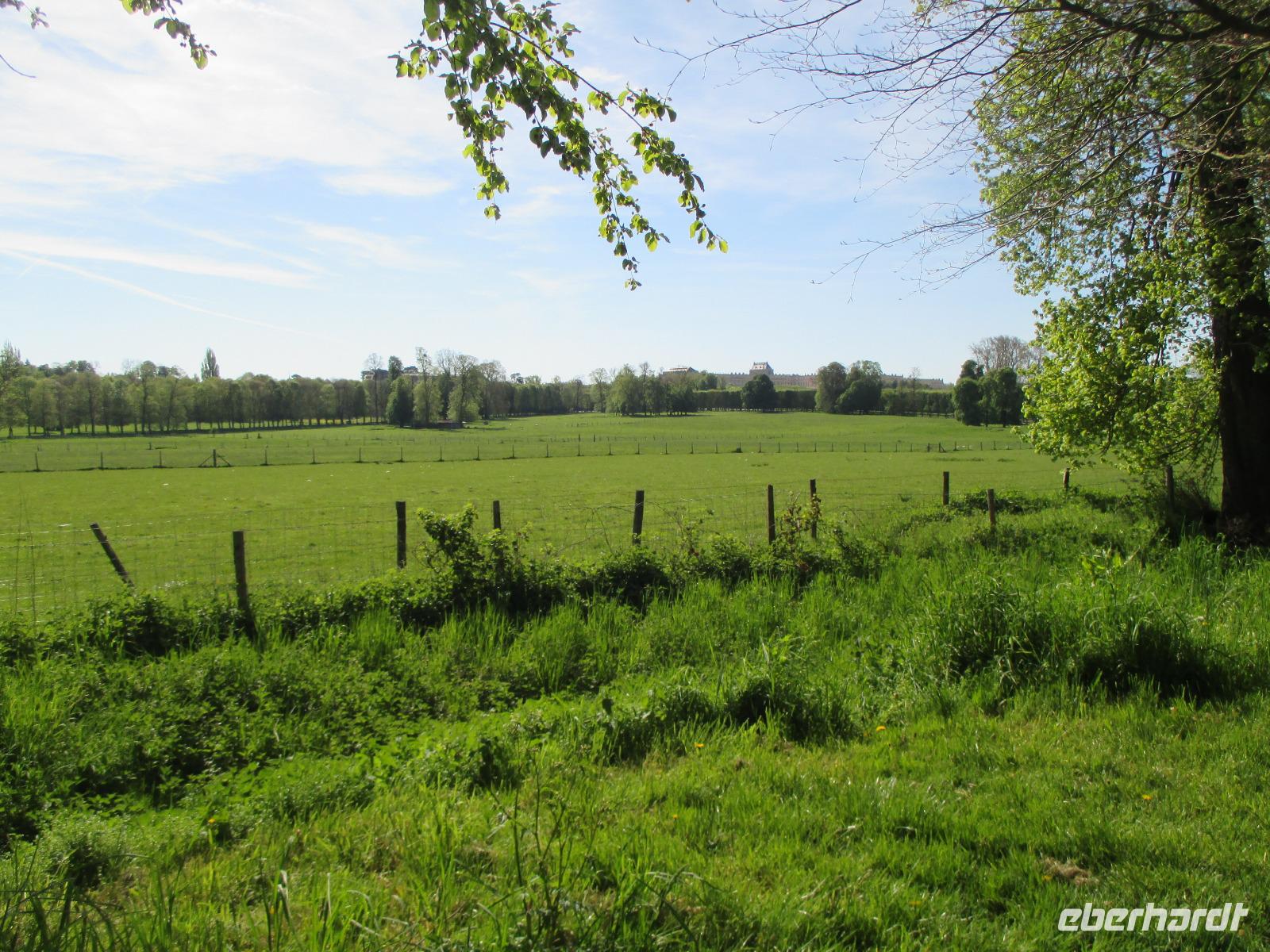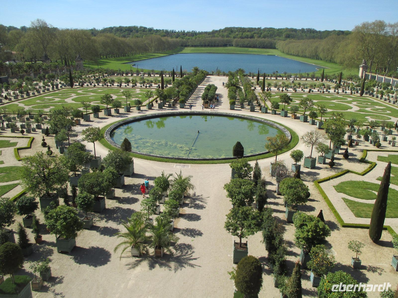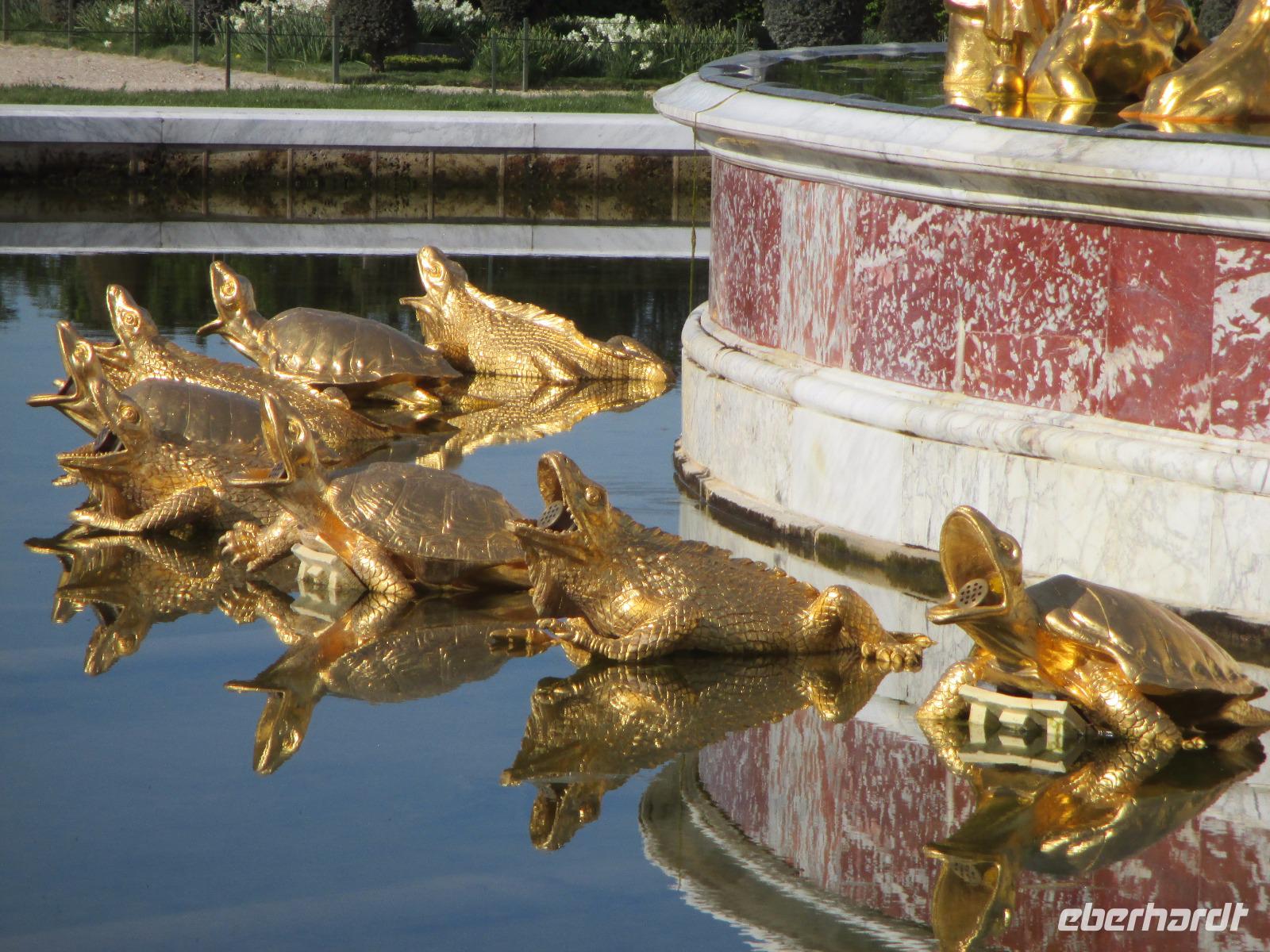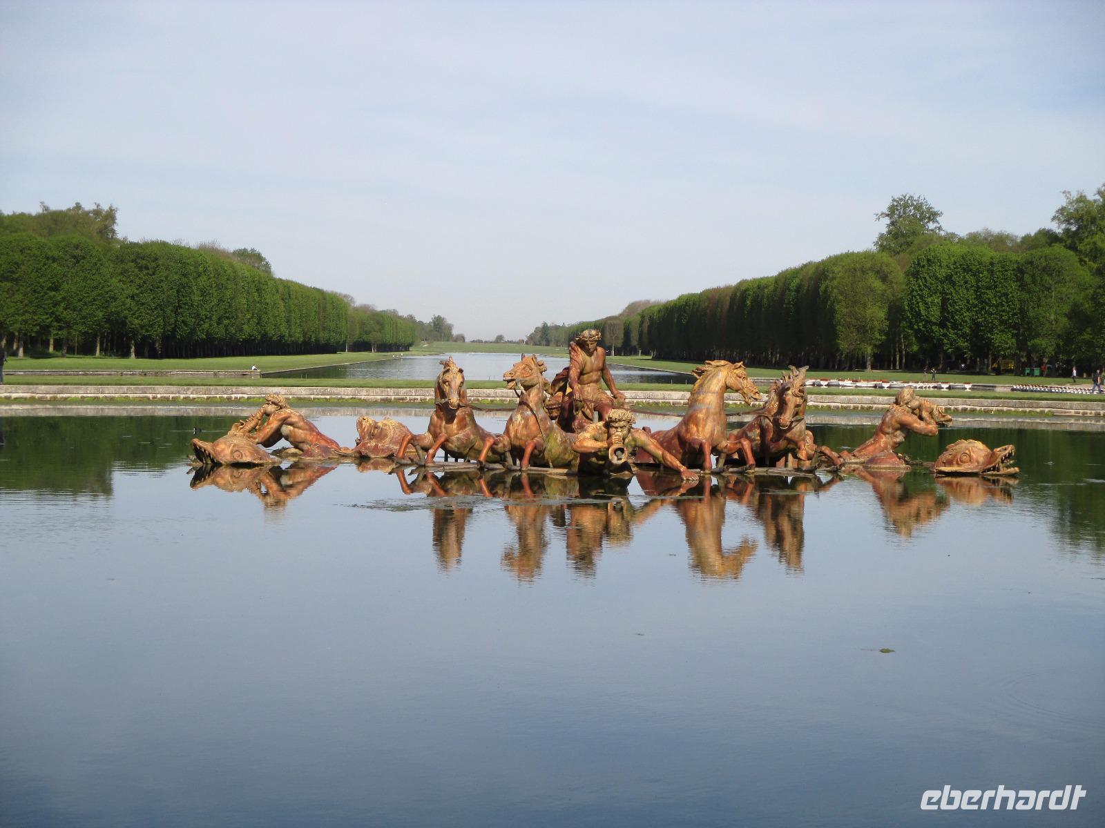 Wir sind vor neun Uhr an Schloss und die Schlange der Wartenden ist heute noch recht kurz. Tickets haben wir schon! Da wir mit die ersten Gäste sind, können wir mit unseren Audioguides die ganze Anlage noch recht entspannt bewundern. noch nicht bepflanzt und in den schönen Brunnen sprudelt das Wasser nur an den Wochenenden für eine Stunde.