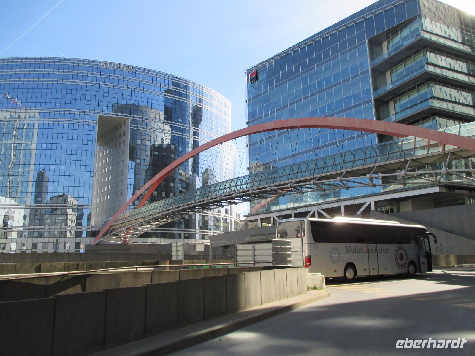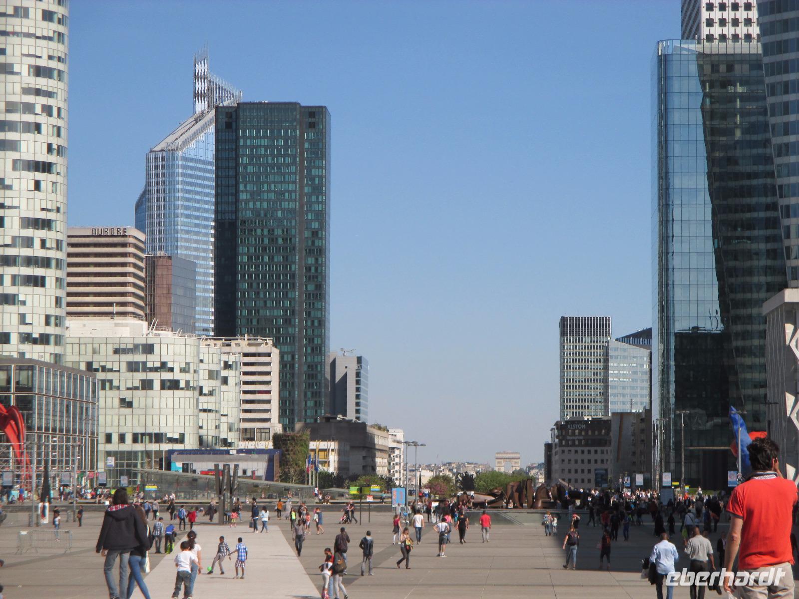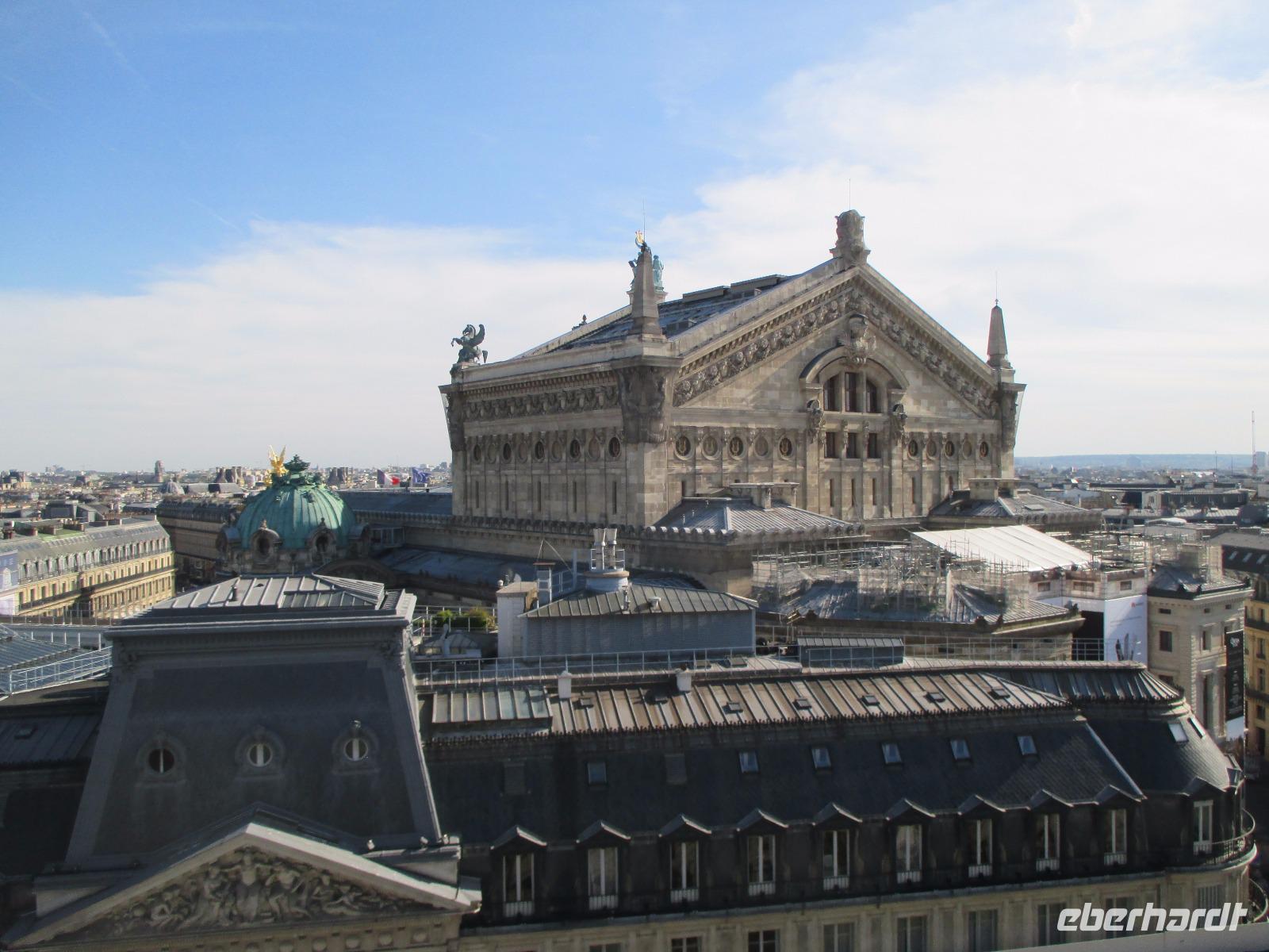 Paul erwartet uns schon und gemeinsam starten wir zu einer zweiten Stadtrundfahrt in den Westen der Stadt und in das moderne Hochhausviertel La Defense, Europas größte Bürostadt. Sie ist nahtlos mit Paris verbunden, liegt aber einige Kilometer außerhalb der Stadtgrenze. Uns überrascht eine ganz andere beeindruckende futuristisch wirkende Welt mit Wolkenkratzern. Petra bringt uns noch mit der Rolltreppe auf die Terrasse des Kaufhauses La Fayette. Hier werfen wir einen Blick über das Häusermeer um die Opera Garnier und blicken in die wunderschöne Jugendstilkuppel des Kaufhauses. Zum Einkaufen reicht leider die Zeit nicht.