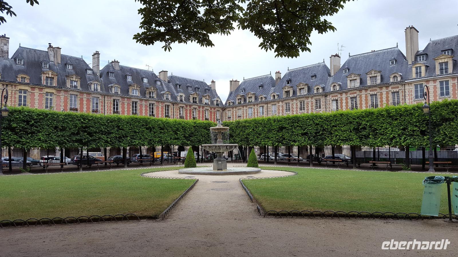 Unter den fünf „Königlichen Plätzen" ist der Place des Vosges der älteste und gilt als einer der schönsten Plätze von Paris. Der quadratische Platz hat die Abmessungen von ca. 140×140 Metern. Auf ausdrückliche Anordnung des französischen Königs Heinrich IV. als Place Royalle (sic) in den Jahren 1605 bis 1612 gebaut.