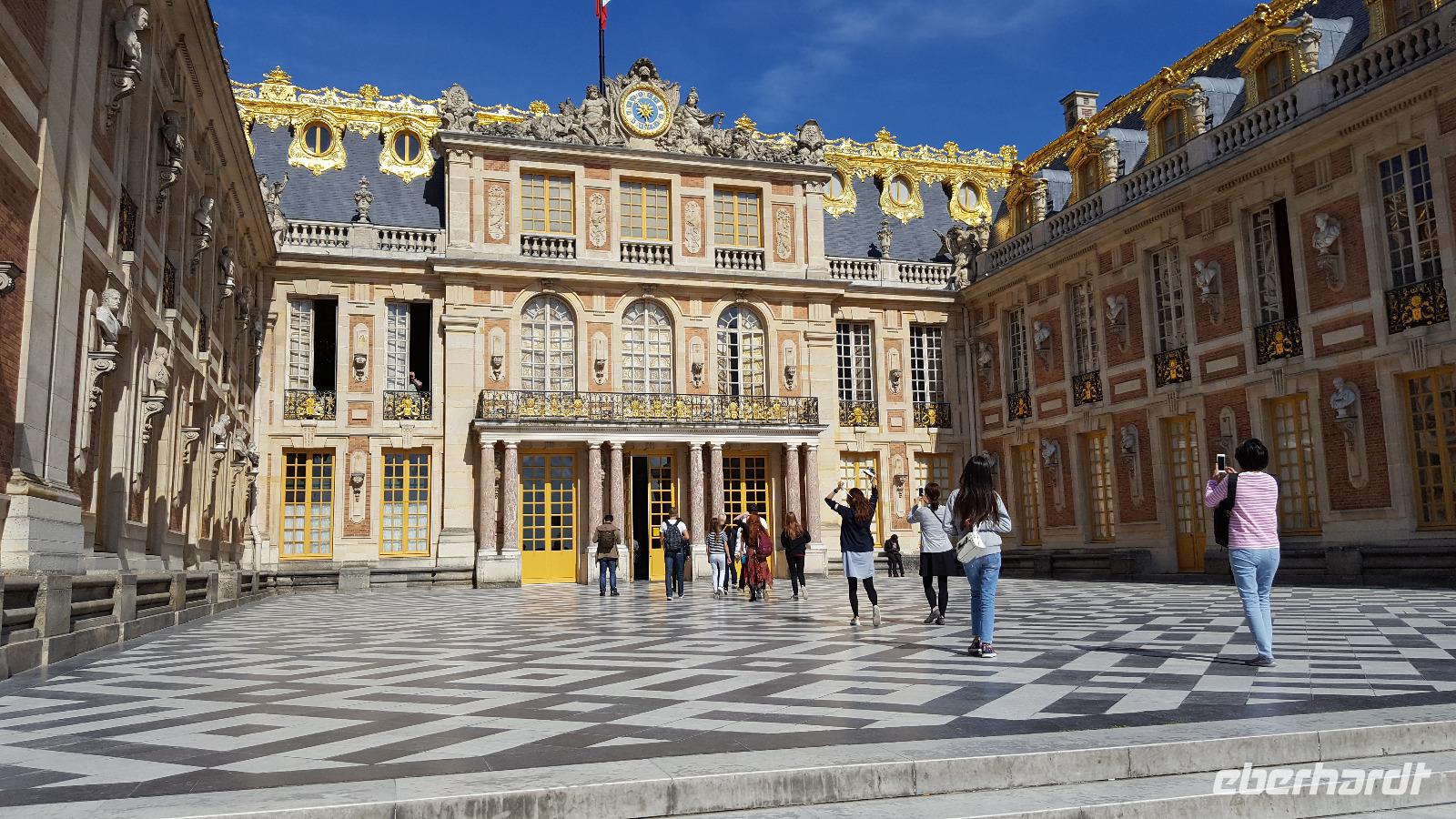 Am frühen Morgen tun wir es dem Sonnenkönig gleich und verlassen Paris: Versailles steht heute auf dem Programm. Obwohl wir vor der offiziellen Öffnungszeit da sind, ist es wie so oft in Paris wie bei dem Hasen und dem Igel: Hunderte von „Igeln" aus aller Welt sind bereits da und wir müssen uns ans Ende der Schlange stellen.