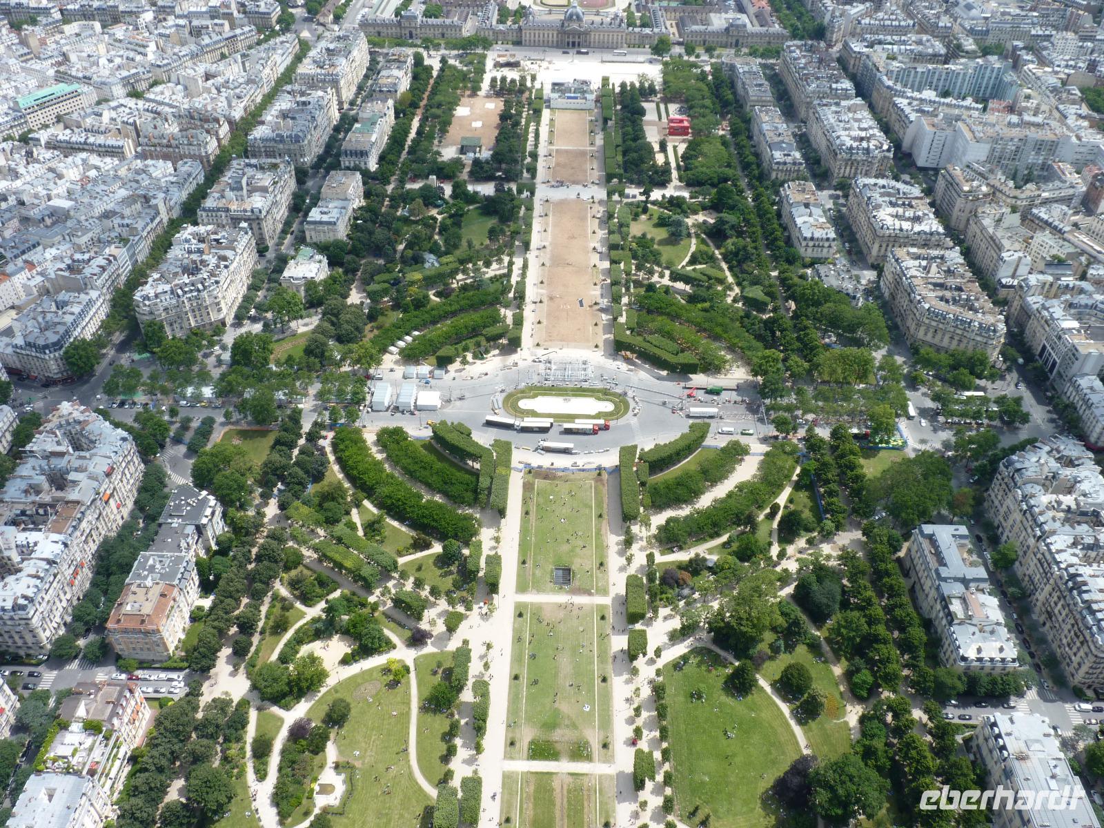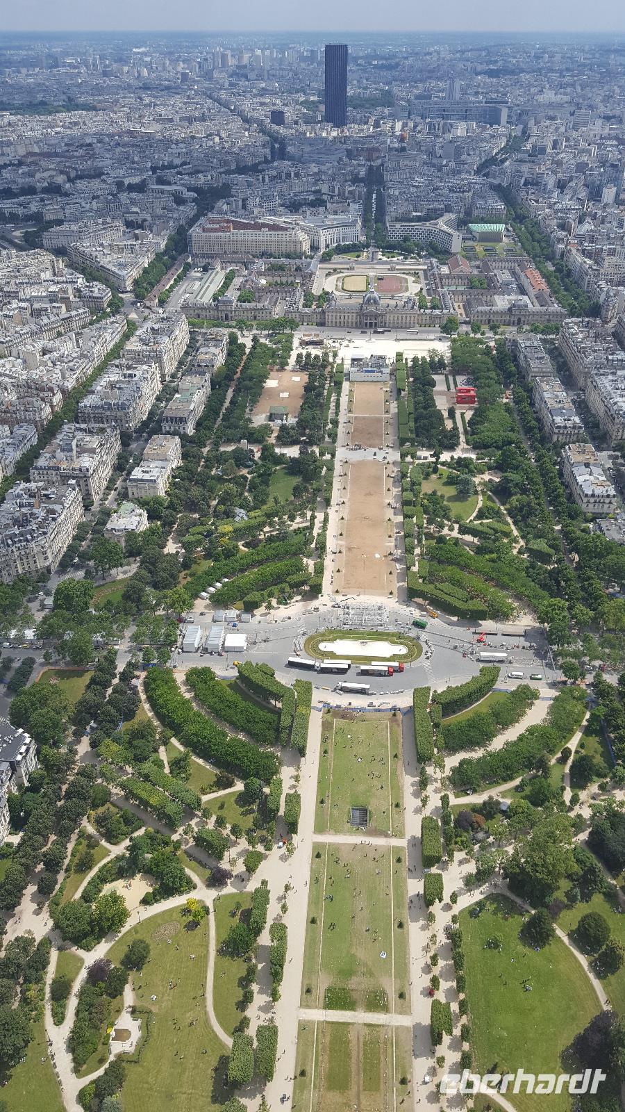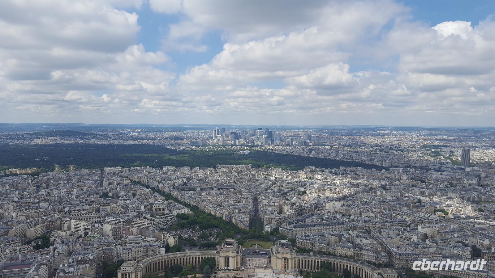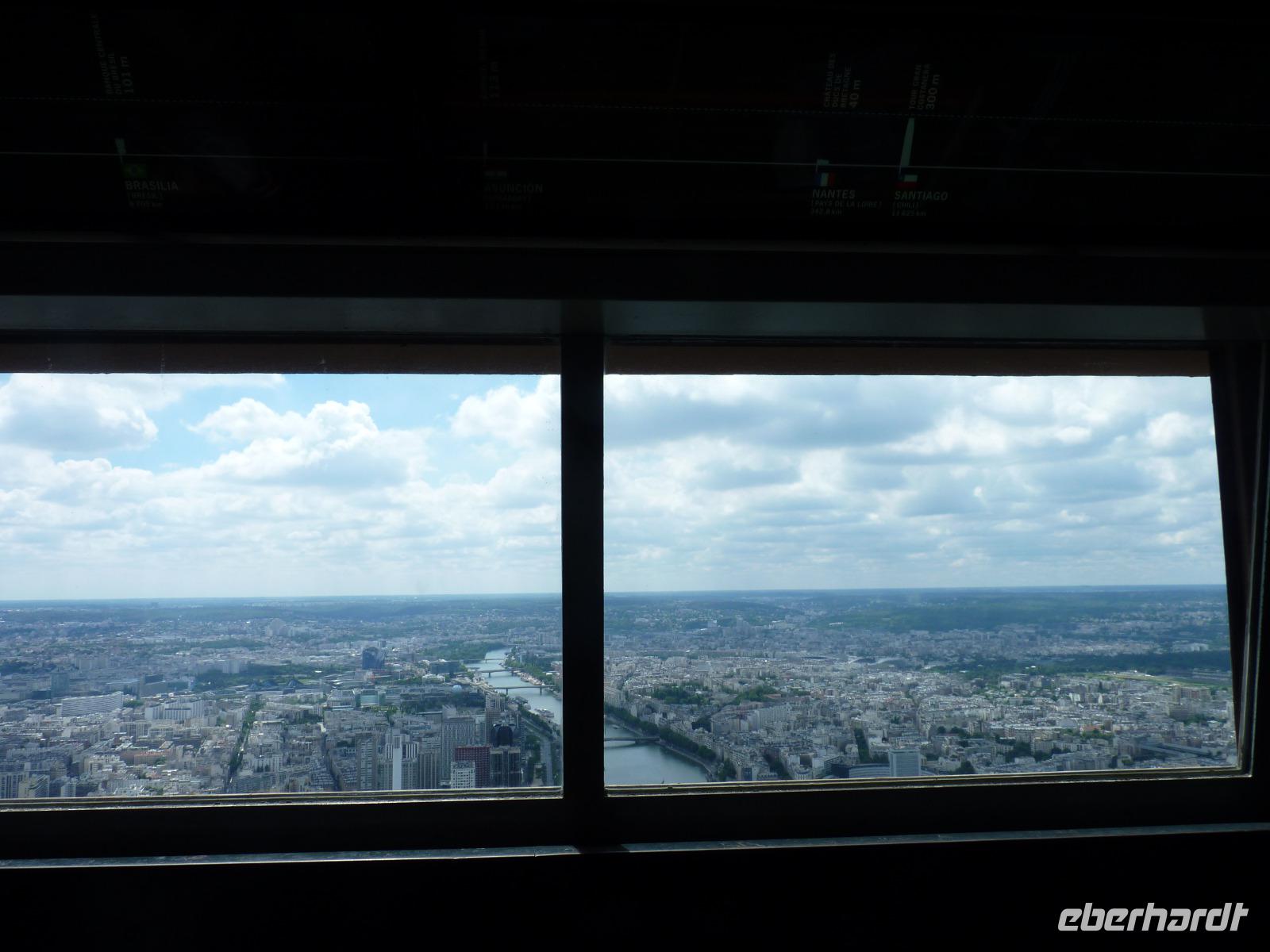 14 Uhr hatten wir freie Fahrt auf das Highlight von Paris. Die erste Plattform auf dem Eiffelturm befindet sich in 57 Metern Höhe. Von hier aus sieht man bereits bis über die Stadtgrenzen hinaus - denn in Paris durfte lange nicht höher als ca. 40 Meter hoch gebaut werden.