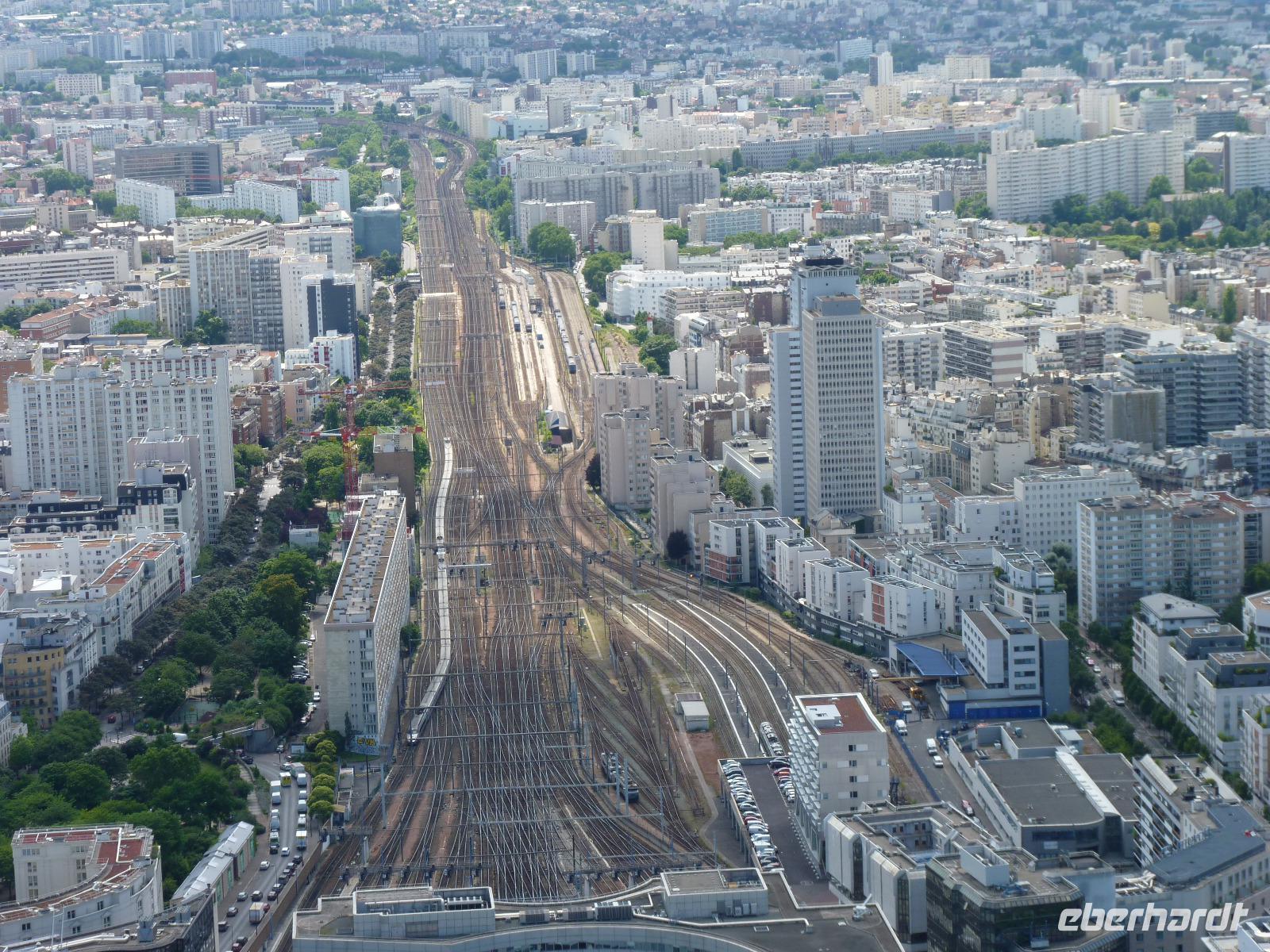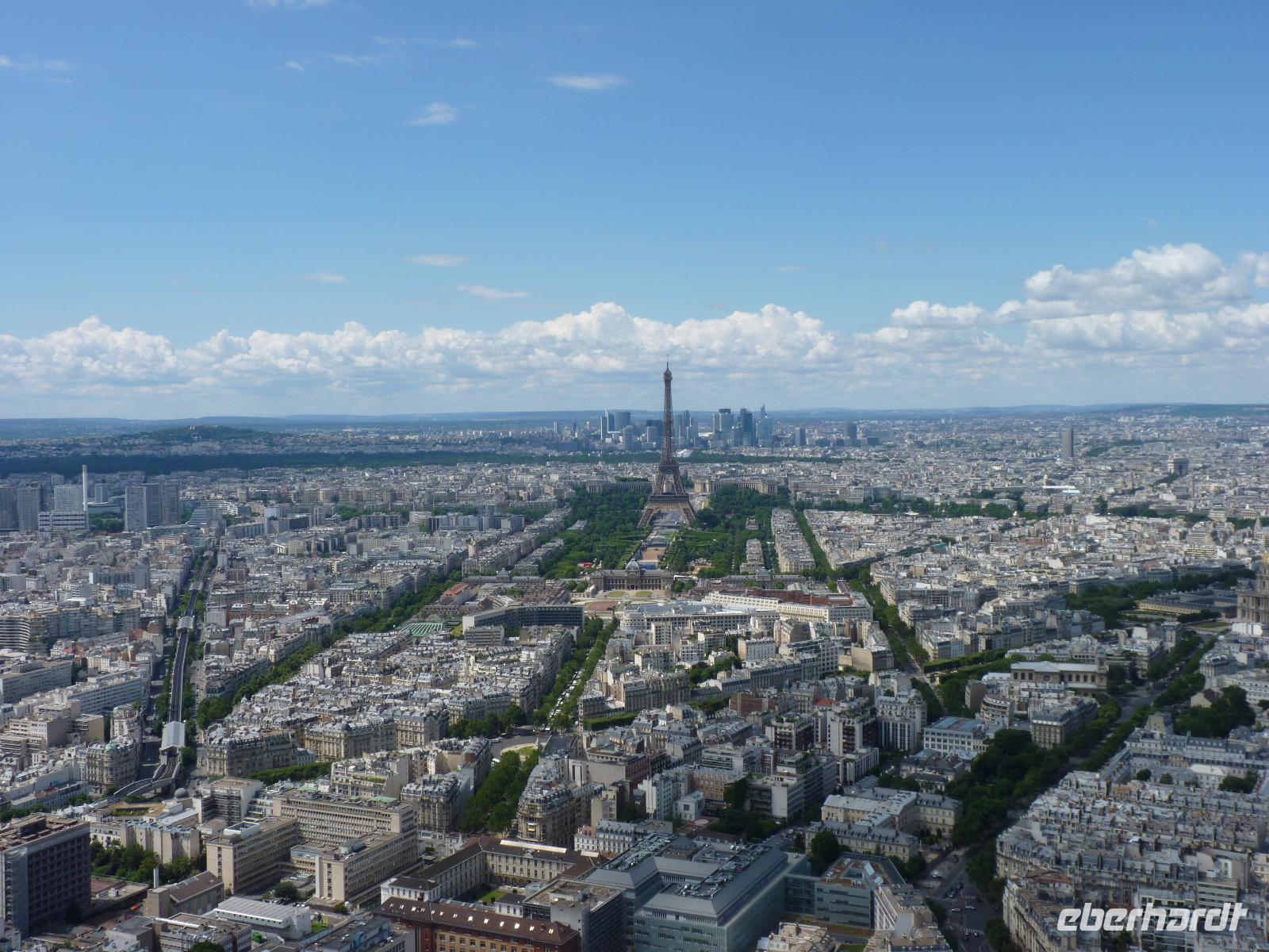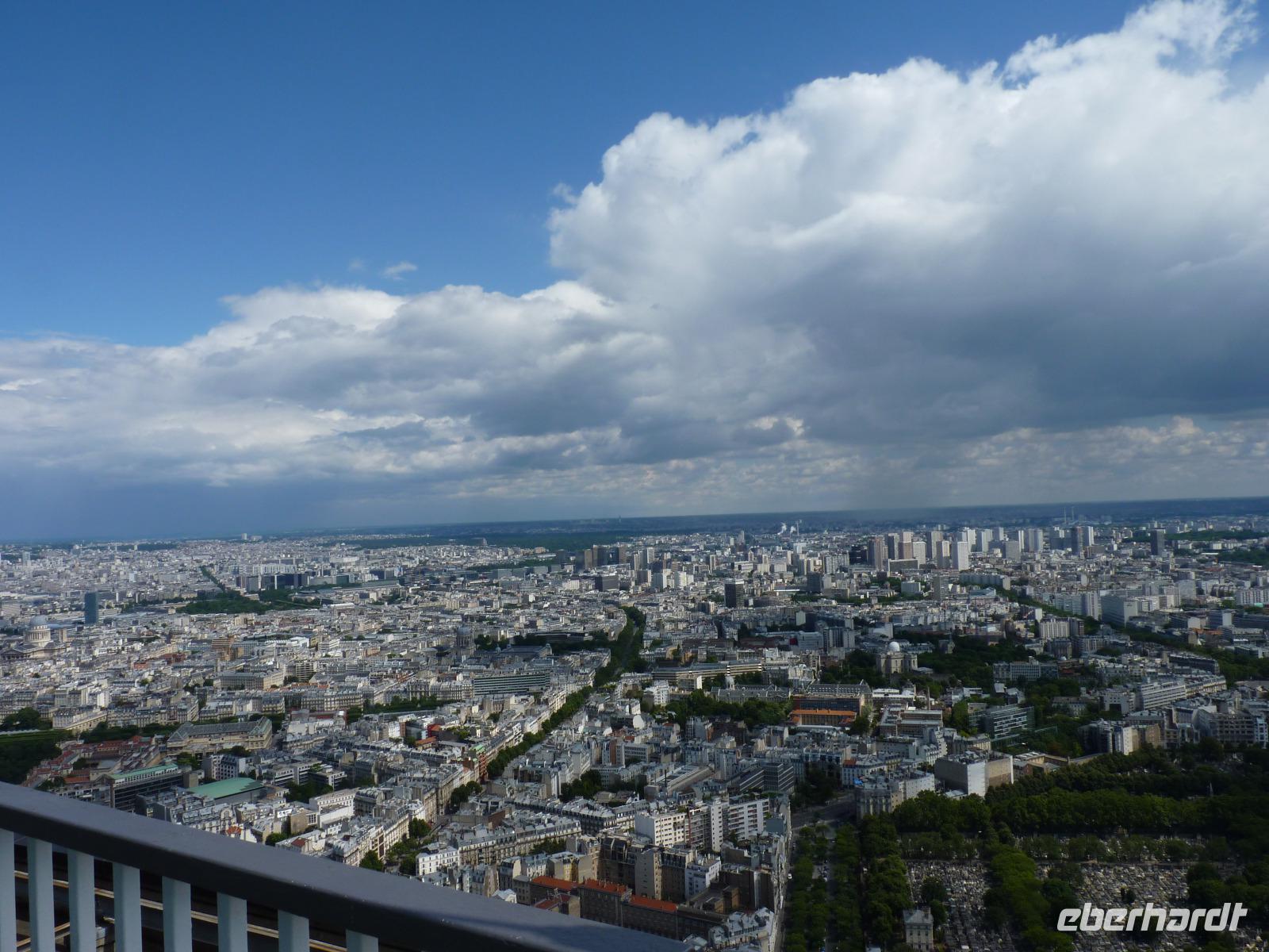 Nachmittags bewältigen wir frohen Mutes die nächste Warteschlange, am Montparnasse, dem zweithöchsten Bauwerk von Paris. In wenigen Sekunden haben wir die 56 Etagen mit dem Lift geschafft. Die letzten Meter bewältigen wir zu Fuß.