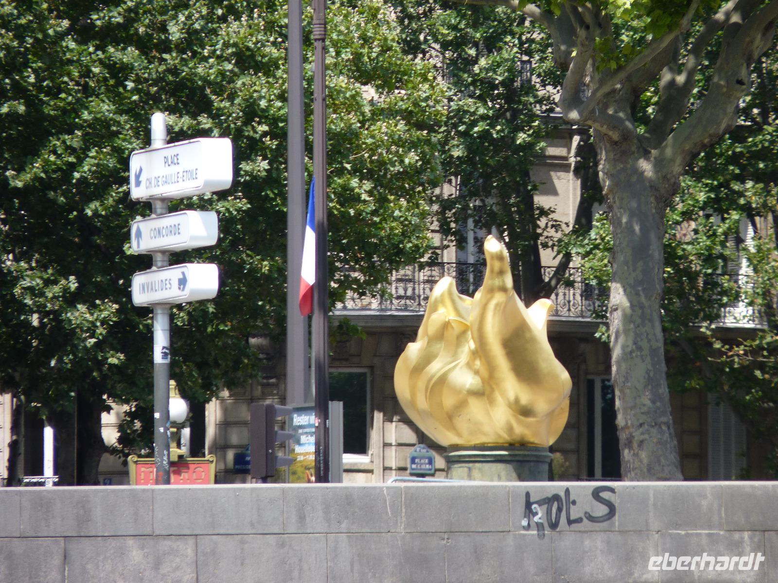 Unterwegs machten wir Bekanntschaft mit dem Marais Viertel (Sumpfviertel), dem Place de la Bastille mit Julisäule + Le Génie de la Liberté und Bastille-Oper, dem Centre Pompidou (Kulturzentrum), dem Arc de Triomphe in der Mitte der Place Charles-de-Gaulle - ein 1806 bis 1836 errichtetes Denkmal am Place Charles-de-Gaulle. Unter dem Bogen liegt das Grabmal des unbekannten Soldaten aus dem Ersten Weltkrieg mit der täglich gewarteten Ewigen Flamme = Flamme du Souvenir (dt. Flamme der Erinnerung) genannt, im Gedenken an die Toten, die nie identifiziert wurden,