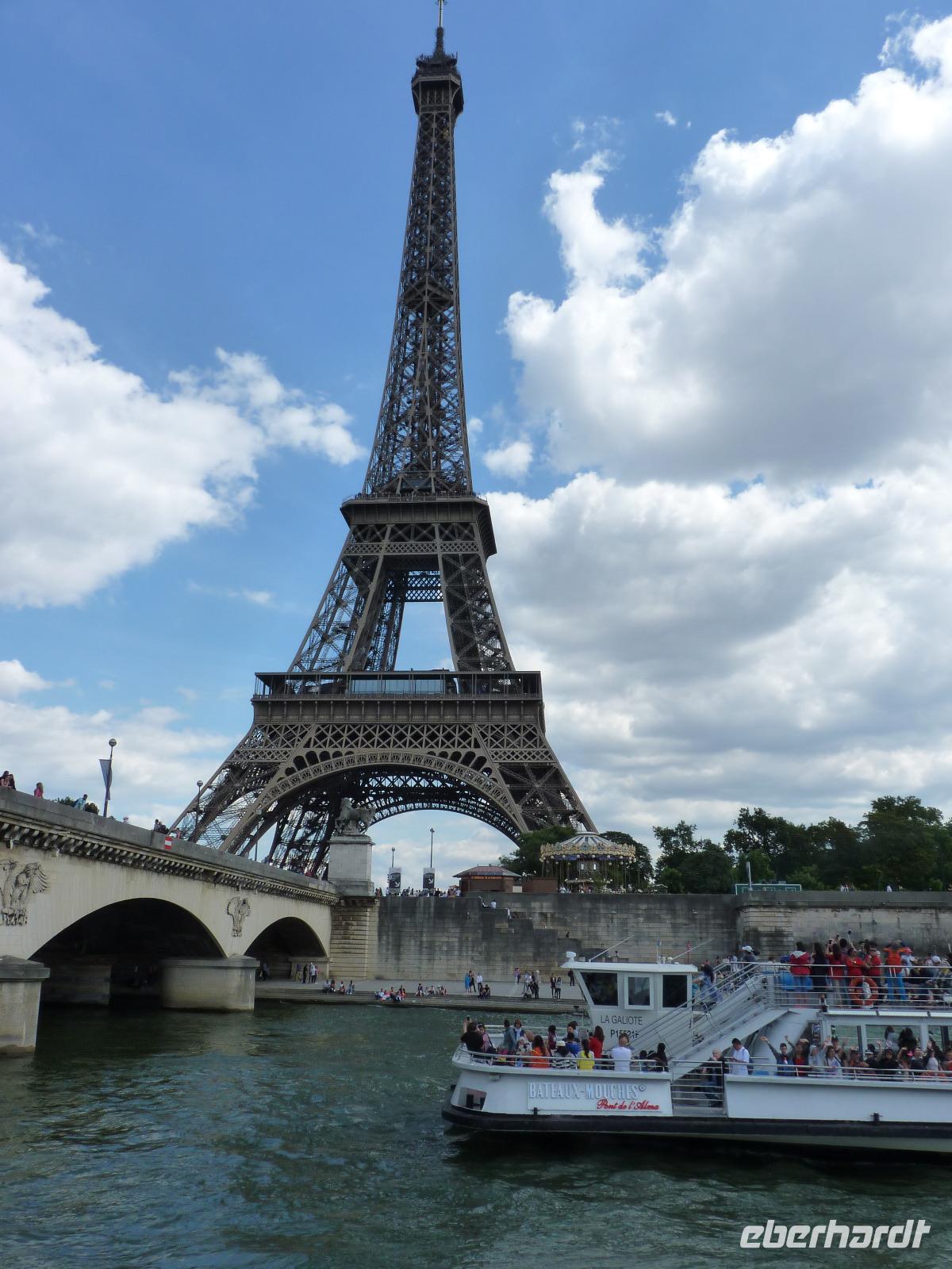 Mit dem Bus ging es zurück auf die andere Seite der Seine zum Bootsanleger, direkt zu Füßen des Eiffelturms.