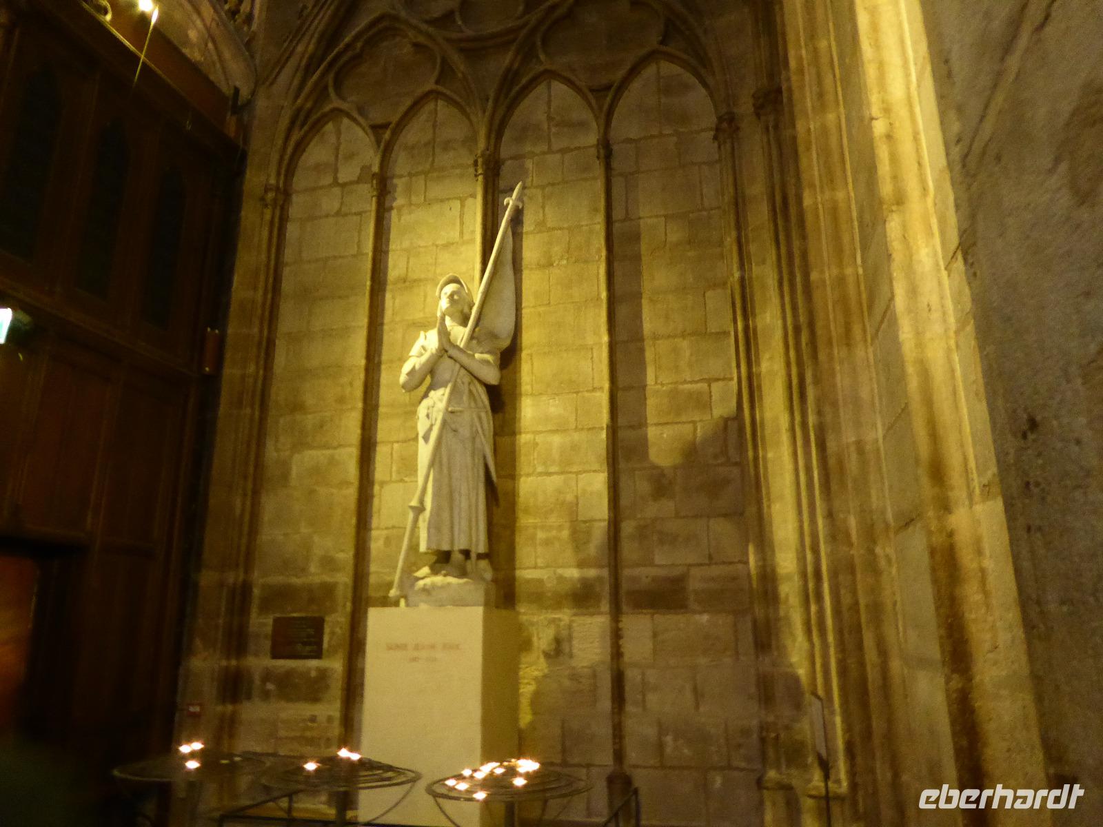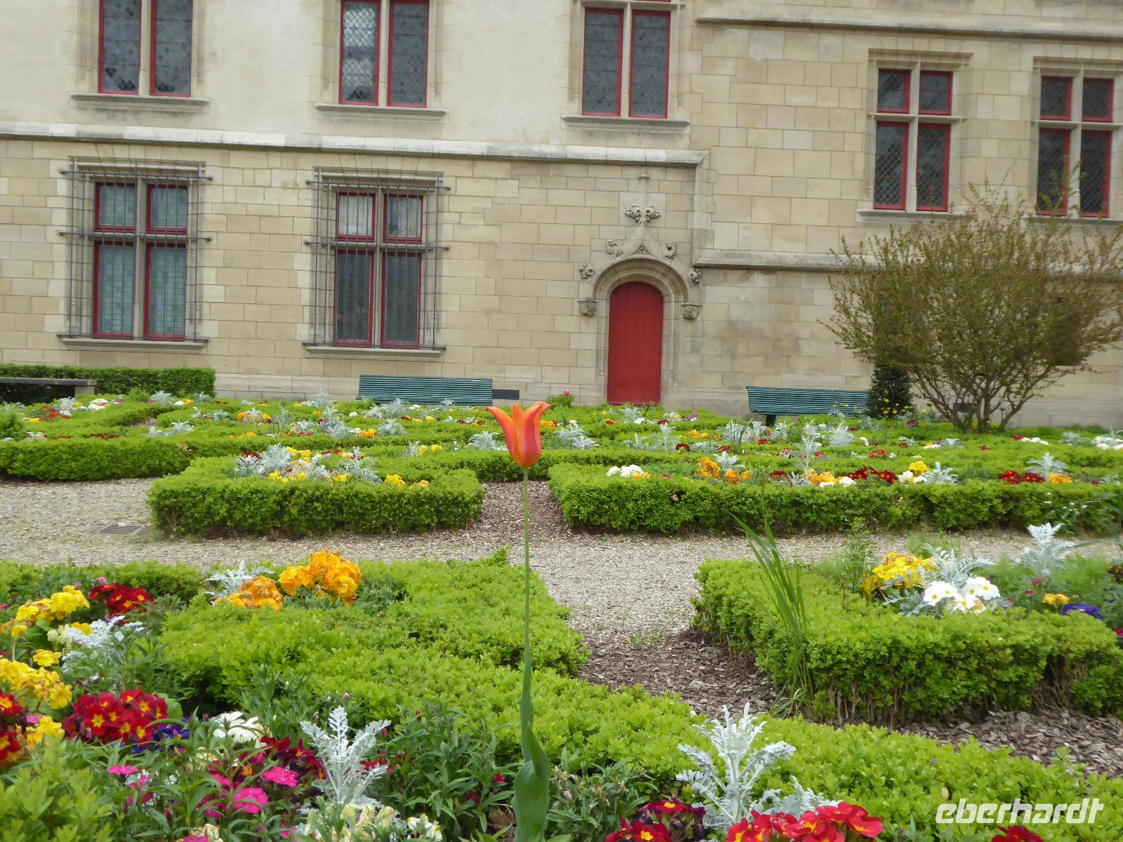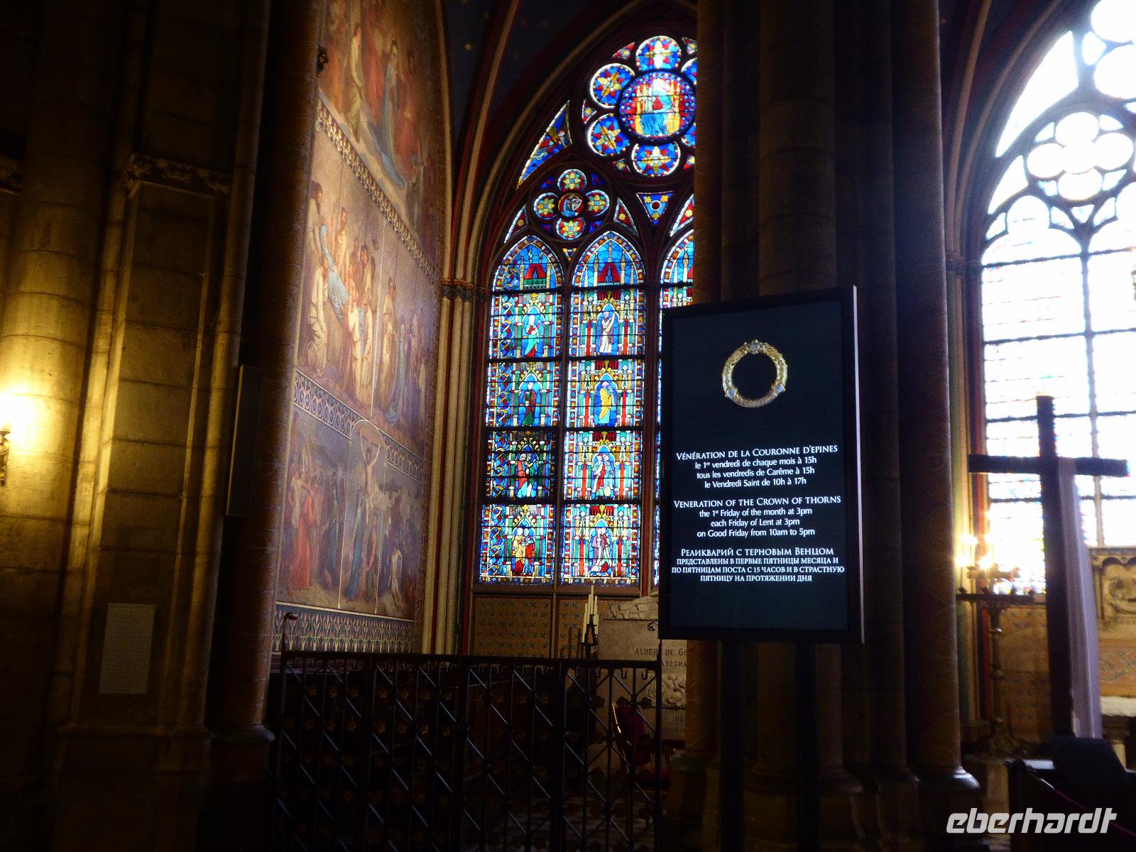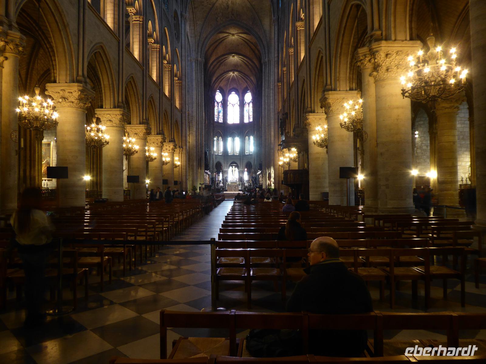 Wir wollen Hilde um neun am Hotel de Ville treffen und fahren halb Neun los. Aber oho! Die Osterferien in Paris sind zu Ende und ganz Paris sitzt im Auto und verstopft die Stadt. Eineinhalb Stunden benötigen wir für fünf Kilometer und kommen fast eine Stunde zu spät. Aber Hilde ist wie immer gut gelaunt und unternimmt mit uns einen ausführlichen Spaziergang über die Ile-de-la-Cité. Zuerst besuchen wir Notre Dame mit seinen wunderschönen bunten Glasfenstern. 1163 wurde von Papst Alexander III. der Grundstein gelegt. Einhundertsiebzig Jahre waren tausende Handwerker, Architekten und Steinmetze mit dem Bau der Kathedrale beschäftigt. Victor Hugos Roman Der Glöckner von Notre Dame erschien 1831. Im Mittelpunkt der Geschichte steht die aufwendig beschriebene Kathedrale. Die Sage erzählt, dass man in einer Gruft, in der die Überreste gehängter Personen lagen, das Skelett einer jungen Frau gefunden wurde. Diese wurde von einem anderen Skelett umarmt, das nachweislich einen Buckel und ein zu kurzes Bein hatte. Ebenso konnte man feststellen, dass der Bucklige nicht gehängt wurde, aber trotzdem in der Gruft gestorben war. Als man versuchte, dass Skelett des Buckligen von dem der Frau zu lösen, verfiel es zu staub.