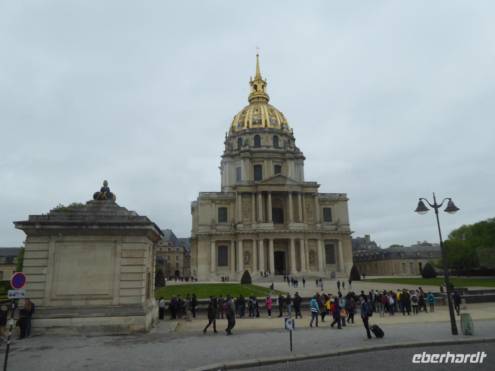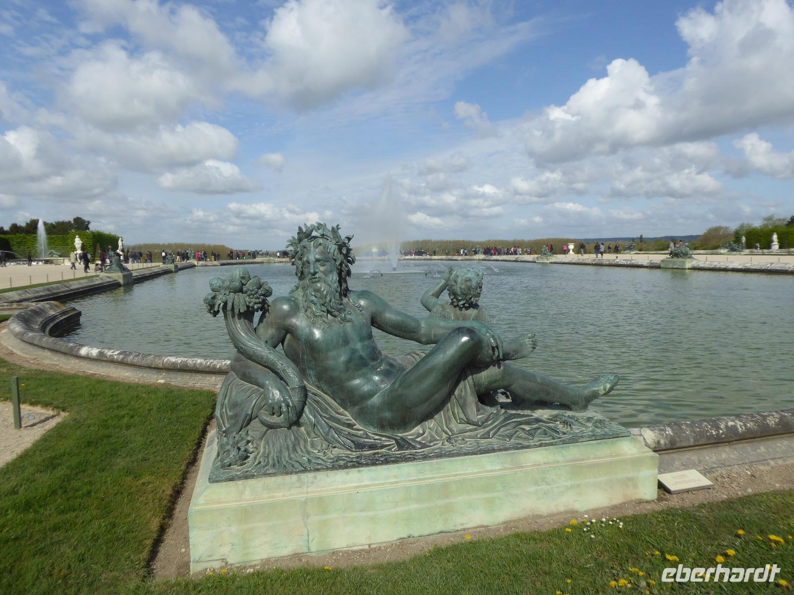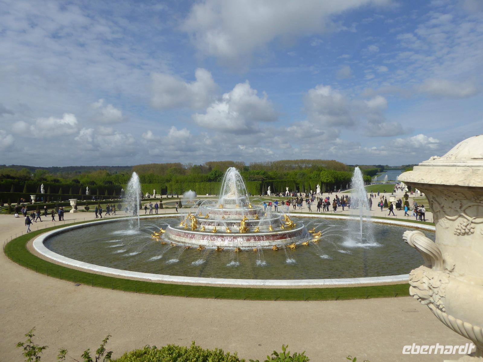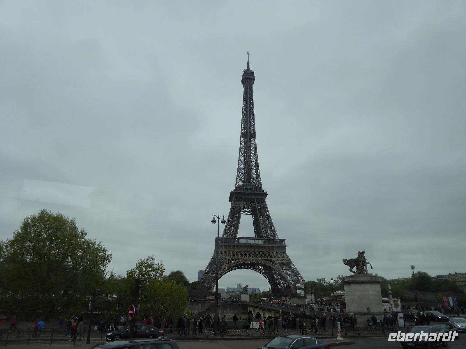 Wir starten bereits um Acht am Hotel. Bis nach Versaille sind es ca. eine halbe bis dreiviertel Stunde. Es ist Ostersonntag und nicht abzusehen, wie der Verkehr ist und wer außer uns noch nach Versaille möchte. Wir sind nicht die Ersten. Die Schlange geht entlang des goldenen Zauns und hat bereits einen Knick bis zur Hälfte des Vorplatzes. Aber! In Windeseile wird die Schlange immer länger und länger. Als wir später Versaille verlassen, ist der Vorplatz schwarz vor Menschen. Um neun öffnen die Gemächer und wir sind ruck zuck drin. (Achtung: es gibt Sicherheitskontrollen! Nagelscheren dürfen zum Beispiel nicht mitgenommen werden). Mit Audioguides ausgestattet, kann jeder nach eigenem Gutdünken das Schloss besichtigen. Aus einem bescheidenen Jagschloss wurde unter Louis XIV. das größte Schloss Europas. Wir schlängeln uns, gemeinsam mit hunderten Asiaten, durch die prachtvollen Gemächer. Was müssen das für Feste gewesen sein, die der König mit seinem Hofstaat in dem prachtvollen Spiegelsaal gefeiert haben. Für den Besuch der Gärten muss ein zusätzliches Ticket für 9,50 € erworben werden. In diesem Jahr findet ein Musikfestival statt und zu bestimmten Zeiten plätschern die Fontänen zu klassischer Musik. Als auch noch die Sonne herauskommt und die goldenen Figuren an den Springbrunnen leuchten lässt, ist das Erlebnis perfekt. Am späten Mittag treffen wir uns wieder und fahren zum Eiffelturm. Unsere Eintrittskarten sind personalisiert und die Auffahrt ist für 15.30 Uhr festgelegt. Obwohl wir unerwartet schnell wieder in der Stadt sind, gönnen wir uns keine Zeit zum Bummeln, denn am Eiffelturm scheint mal wieder die ganze Welt versammelt zu sein. Allerdings wird dann die Wartezeit noch durch ein technisches Problem verlängert und da wir abends noch etwas vorhaben, ist der Aufenthalt auf dem Eiffelturm nicht so lange wie er vielleicht sein könnte. Wir fahren zurück zum Hotel, denn einige Gäste wollen sich hübsch machen. Wir besuchen eines der berühmten Cabarets von Paris - das Paradis Latin. Bevor die Show beginnt, gibt es ein Drei-Gänge-Menü - Pastete, Geflügel im Brandteig und zum Nachtisch Sorbét. Die Show begeistert mit schwungvollen Tänzen, Gesang und Artistik. Erst kurz nach Mitternacht sind wir wieder am Hotel.