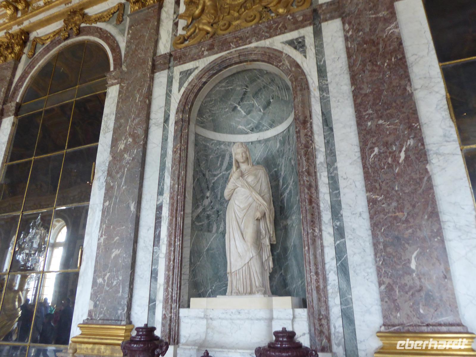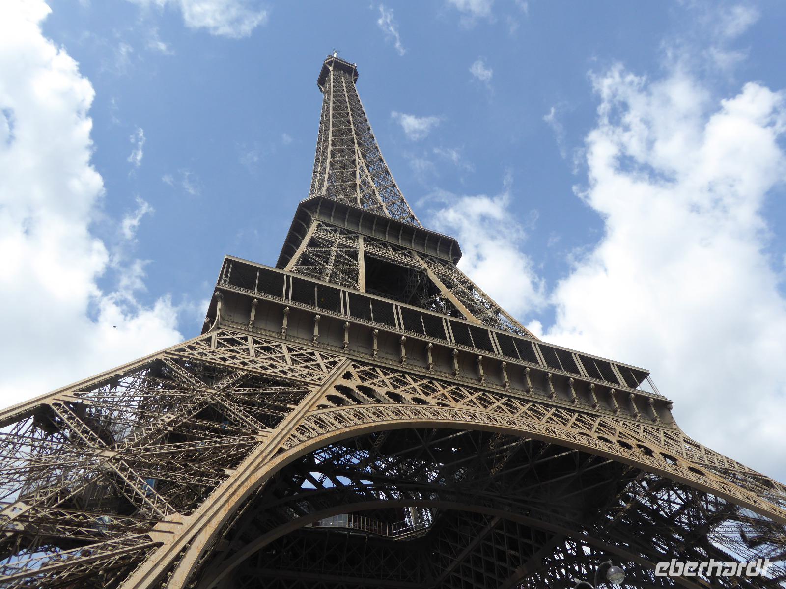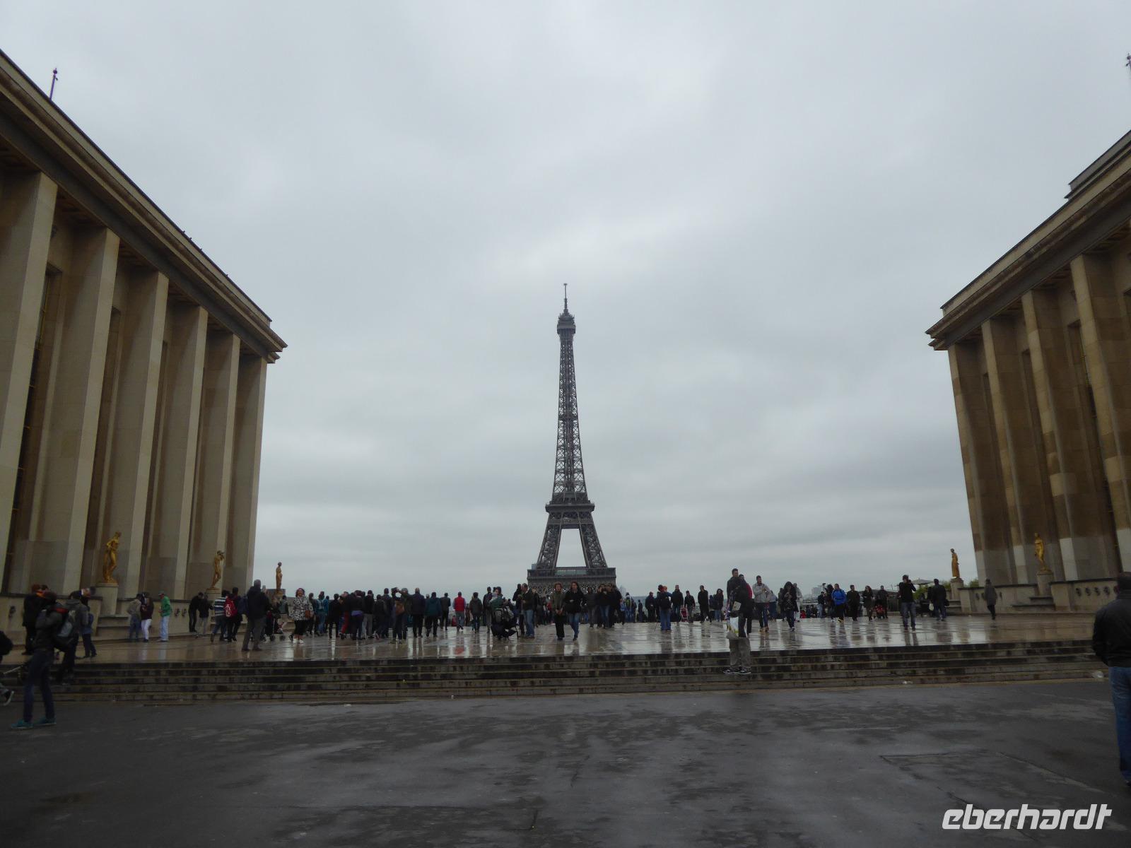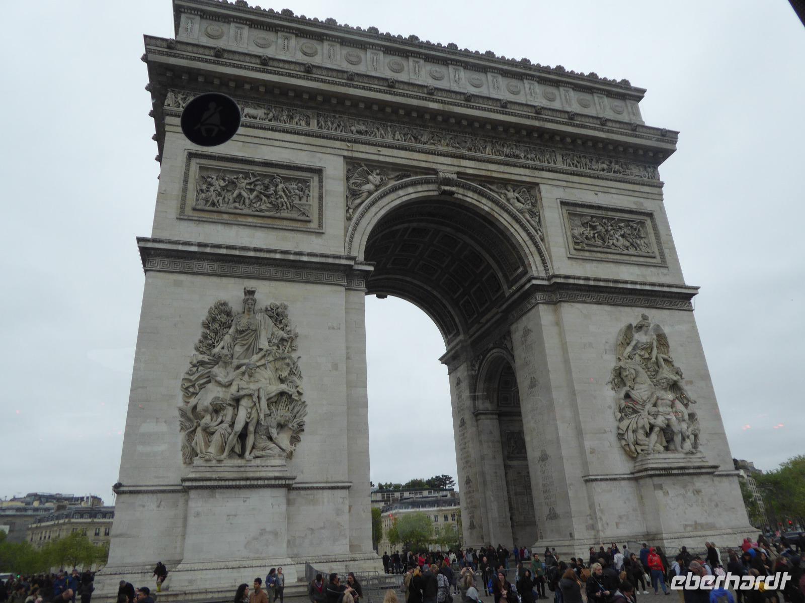 Wir starten bereits um Acht am Hotel. Bis nach Versaille sind es ca. eine halbe bis dreiviertel Stunde. Es ist Ostersonntag und nicht abzusehen, wie der Verkehr ist und wer außer uns noch nach Versaille möchte. Wir sind nicht die Ersten. Die Schlange geht entlang des goldenen Zauns und hat bereits einen Knick bis zur Hälfte des Vorplatzes. Aber! In Windeseile wird die Schlange immer länger und länger. Als wir später Versaille verlassen, ist der Vorplatz schwarz vor Menschen. Um neun öffnen die Gemächer und wir sind ruck zuck drin. (Achtung: es gibt Sicherheitskontrollen! Nagelscheren dürfen zum Beispiel nicht mitgenommen werden). Mit Audioguides ausgestattet, kann jeder nach eigenem Gutdünken das Schloss besichtigen. Aus einem bescheidenen Jagschloss wurde unter Louis XIV. das größte Schloss Europas. Wir schlängeln uns, gemeinsam mit hunderten Asiaten, durch die prachtvollen Gemächer. Was müssen das für Feste gewesen sein, die der König mit seinem Hofstaat in dem prachtvollen Spiegelsaal gefeiert haben. Für den Besuch der Gärten muss ein zusätzliches Ticket für 9,50 € erworben werden. In diesem Jahr findet ein Musikfestival statt und zu bestimmten Zeiten plätschern die Fontänen zu klassischer Musik. Als auch noch die Sonne herauskommt und die goldenen Figuren an den Springbrunnen leuchten lässt, ist das Erlebnis perfekt. Am späten Mittag treffen wir uns wieder und fahren zum Eiffelturm. Unsere Eintrittskarten sind personalisiert und die Auffahrt ist für 15.30 Uhr festgelegt. Obwohl wir unerwartet schnell wieder in der Stadt sind, gönnen wir uns keine Zeit zum Bummeln, denn am Eiffelturm scheint mal wieder die ganze Welt versammelt zu sein. Allerdings wird dann die Wartezeit noch durch ein technisches Problem verlängert und da wir abends noch etwas vorhaben, ist der Aufenthalt auf dem Eiffelturm nicht so lange wie er vielleicht sein könnte. Wir fahren zurück zum Hotel, denn einige Gäste wollen sich hübsch machen. Wir besuchen eines der berühmten Cabarets von Paris - das Paradis Latin. Bevor die Show beginnt, gibt es ein Drei-Gänge-Menü - Pastete, Geflügel im Brandteig und zum Nachtisch Sorbét. Die Show begeistert mit schwungvollen Tänzen, Gesang und Artistik. Erst kurz nach Mitternacht sind wir wieder am Hotel.