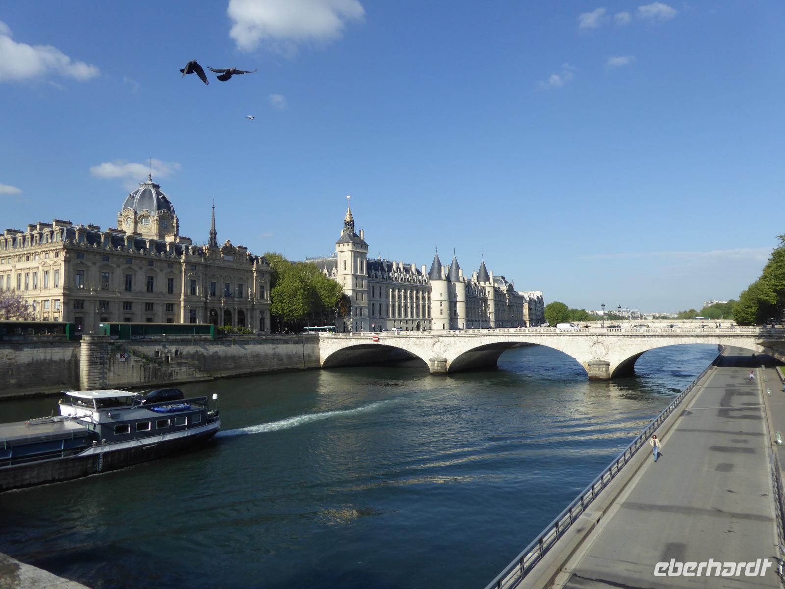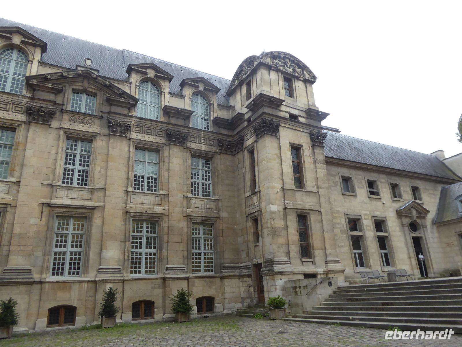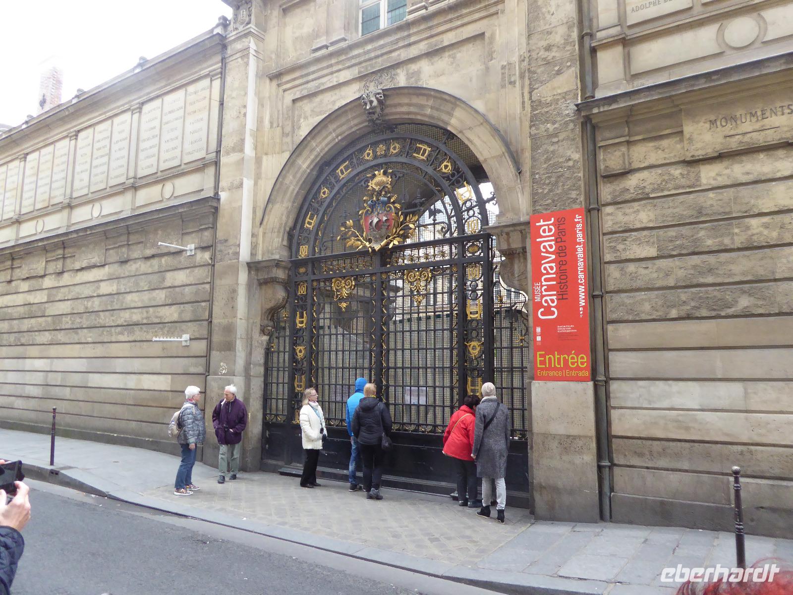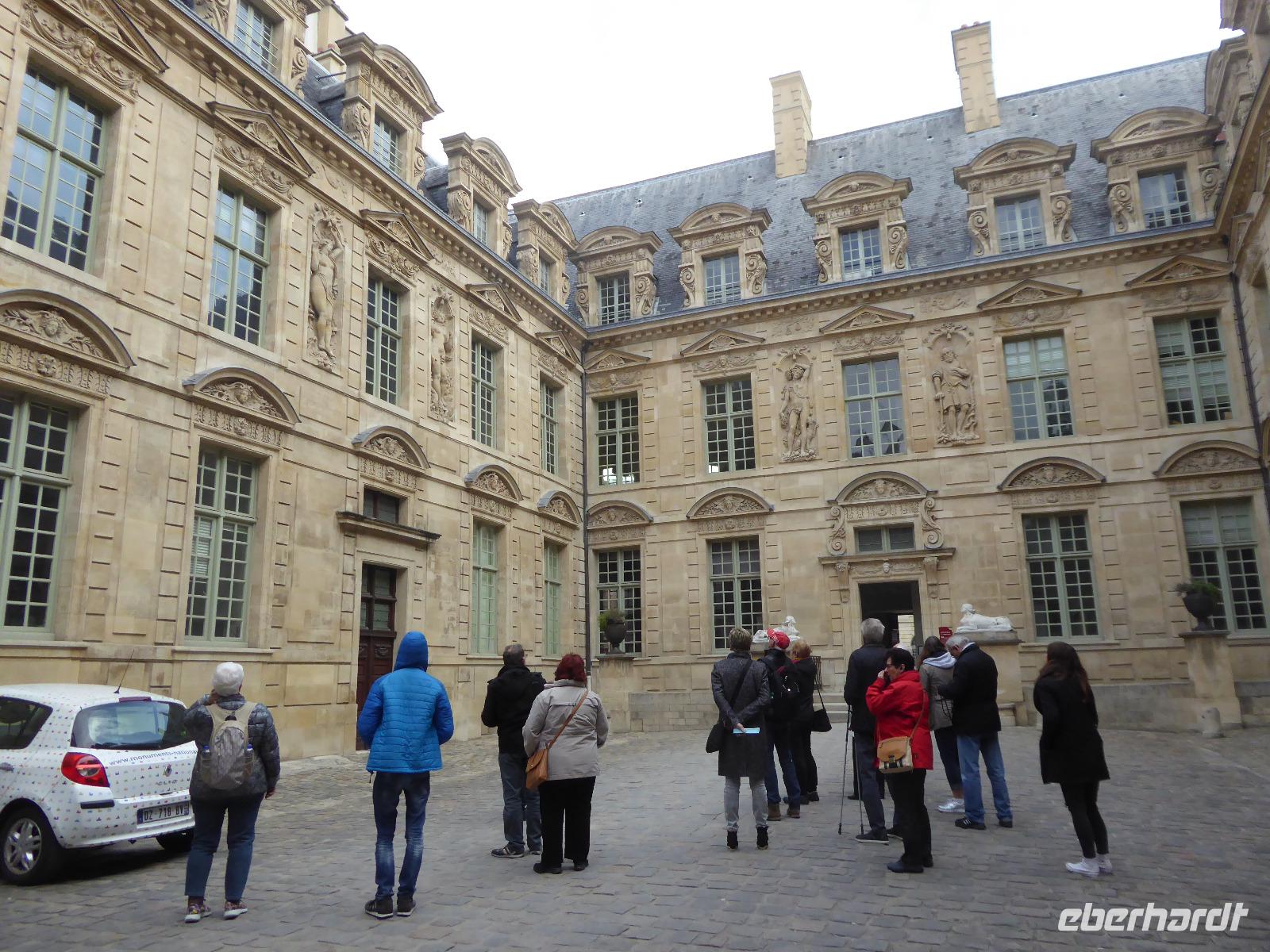 Das Marais-Viertel gilt als eines der schönsten der Stadt, deshalb haben sich die meisten Gäste entschieden, an dem geführten Rundgang teilzunehmen. Hilde holt uns um Neun am Hotel ab. Marais bedeutet übersetzt Sumpf, denn das Gebiet des heutigen Stadtviertels befand sich lange Zeit außerhalb der Stadtgrenzen und war vor dem 13. Jahrhundert eine Sumpflandschaft. Die Templer waren diejenigen, die das Gebiet trockenlegten und sich hier ansiedelten. Im 14. Jahrhundert wurde die Stadtmauer von Paris erweitert und Marais ein Teil der Stadt. Im 17. Jahrhundert entdeckte der Adel das Viertel für sich und errichtete hier prachtvolle Stadtpaläste, die zum Teil noch heute zu bewundern sind. Am Centre Georges Pompidou fahren wir noch mit dem Bus vorbei, doch dann erobern wir Marais zu Fuß. Wir steigen am Hotel de Sully aus. Dieses Gebäude ist im Stil Louis XIII. errichtet und wurde zwischen 1625 und 1630 erbaut. Der erste Herzog von Sully kaufte das Haus 1634 und verbrachte hier seine letzten Lebensjahre. Sein Enkel, der zweite Herzog von Sully, ließe das Gebäude erweitern. Die Familie Sully besaß das Anwesen bis ins 18. Jahrhundert. Später wurde es in Eigentumswohnungen aufgeteilt, Handwerker und Geschäfte waren hier untergebracht. Seit 1862 steht es unter Denkmalsschutz. Wir spazieren weiter zum Place de Vosges. Es ist einer der schönsten und ältesten Plätze in Paris. Hier wohnten Victor Hugo und Kardinal Richelieu. Mitten auf dem Platz steht ein Denkmal für Louis XIII. Errichtete wurde der Platz von 1605 bis 1612 auf Anordnung des französischen Königs Heinrich IV. Eingeweiht wurde er aus Anlass der Doppelhochzeit von König Ludwig XIII. mit Anna von Österreich und der Schwester des Königs, Elisabeth, mit dem zukünftigen König Philipp IV. von Spanien. Nun kommen wir zum Musee Carnavalet, welches sich im Stadtpalais befindet. Errichtet wurde dieser Stadtpalast 1548 bis 1560 im Auftrag des einflussreichen Präsidenten des Pariser Gerichtshof. Es ist das einzige Gebäude, das aus der Mitte des 16. Jahrhunderts noch heute erhalten ist. Marais ist heute das historische Zentrum des jüdischen Lebens in Paris. Vierhunderttausend Menschen gehören zur jüdischen Gemeinde in Frankreich, fast die Hälfte davon lebt in Paris und von denen die meisten in Marais. Unser Weg führt uns vorbei an der Synagoge, an einer jüdischen Schule und an Läden mit koscheren Angeboten. Nach der Besichtigung des Marais-Viertels ist wieder Zeit für eigene Unternehmungen und Mittagessen. Am Nachmittag betrachten wir Paris von der Wasserseite aus. Wir unternehmen eine Bootsfahrt auf der Seine. Erklärungen gibt es per Audioguide im Inneren des Schiffes. Das Abendessen nehmen wir heute im traditionellen Lokal Les Noces de Jeanette ein.