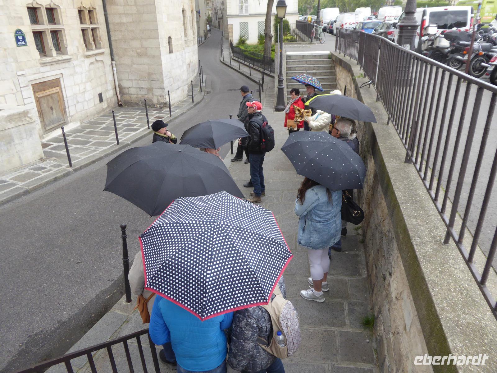 Ab sieben Uhr gibt es Frühstück am leckeren Buffet des Novotels in Paris. Unsere örtliche Reiseleiterin Hilde, die uns in den nächsten Tagen begleitet, treffen wir an der Rezeption. Steffen holt den Bus und wir beginnen unsere Stadtrundfahrt. Es regnet, aber unser erster Ausstieg gilt der Galerie Lafayette, dem berühmten Einkaufszentrum. Wir schnuppern an Parfüm, bestaunen die teuren Klamotten und sind uns einig, dass alles hübsch anzusehen ist, aber...